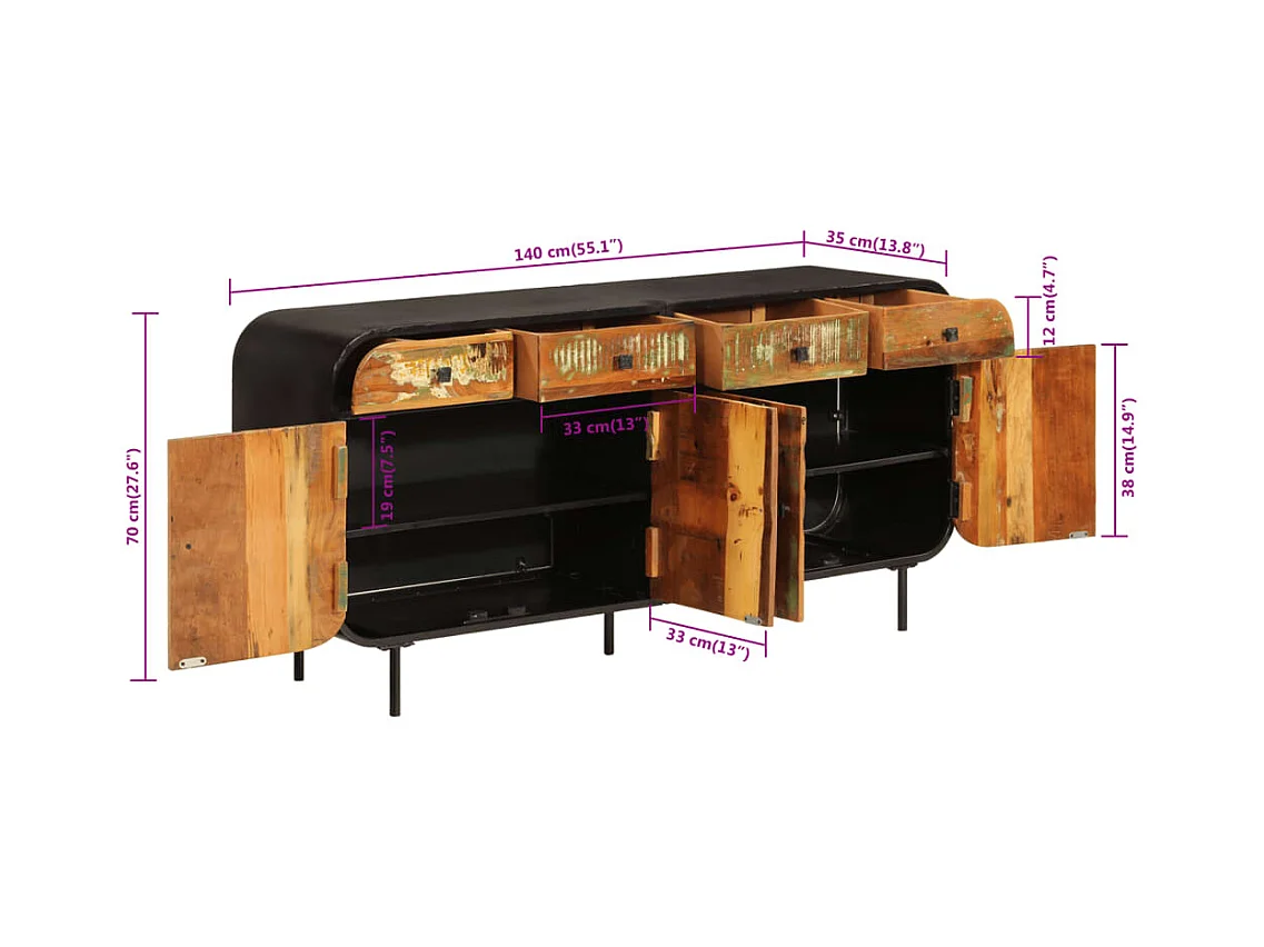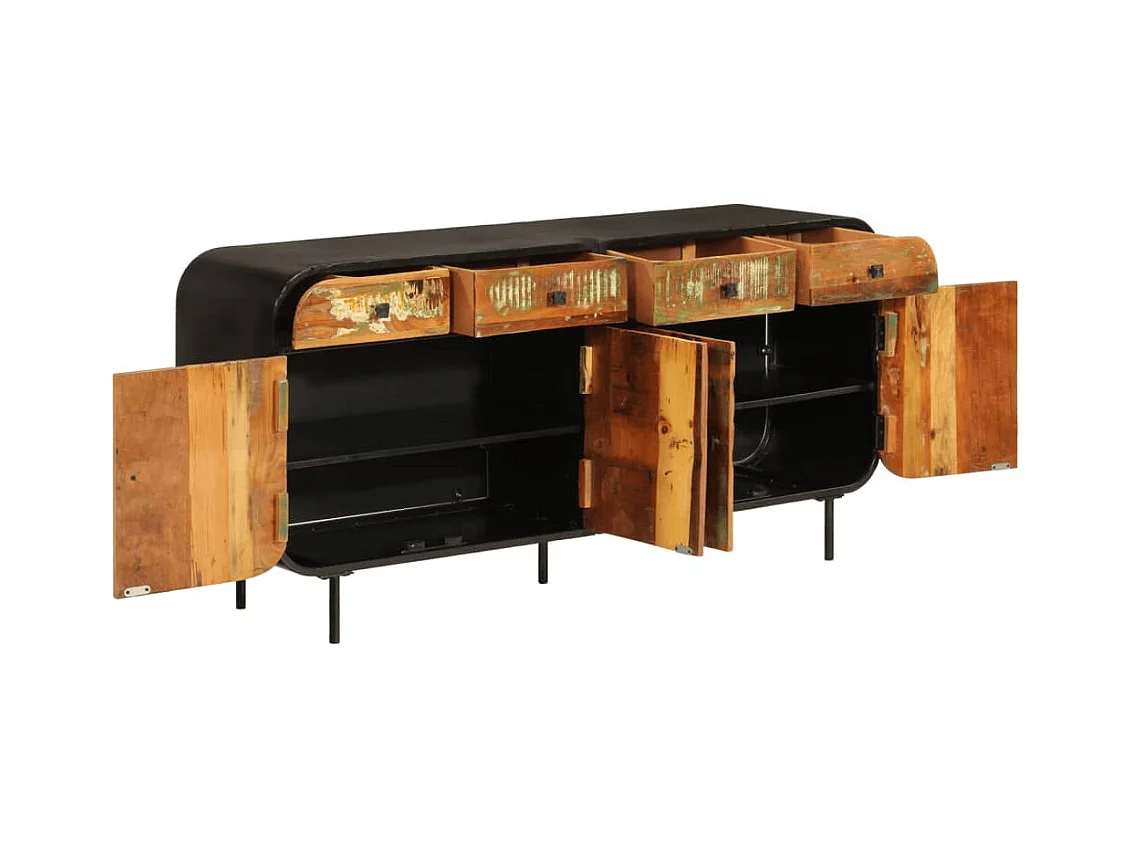 Aparador de madera maciza reciclada y metal 140x35x70 cm