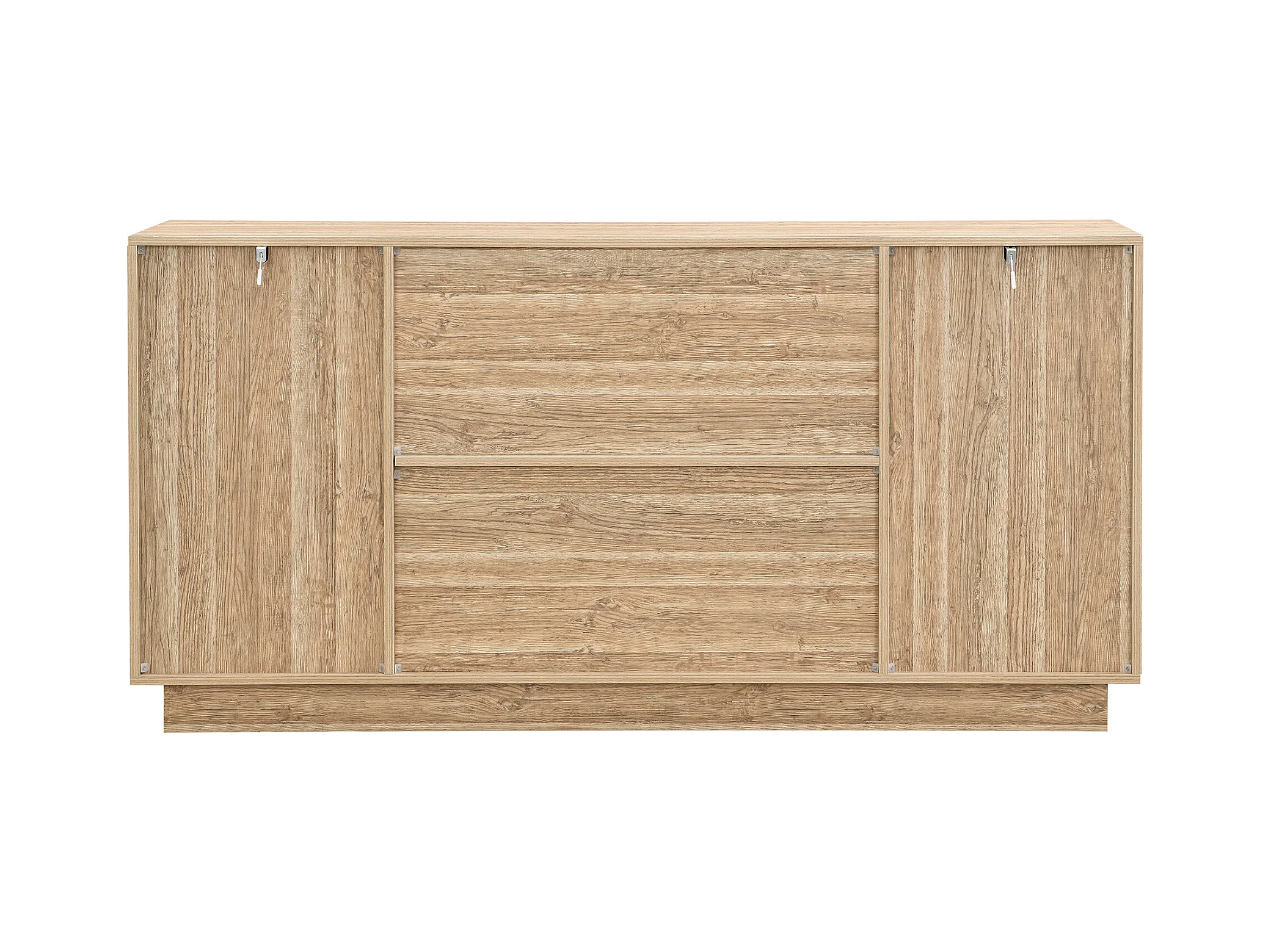 Aparador moderno con 7 cajones, diseño minimalista, color madera natural, MDF, (152x40x89 cm)