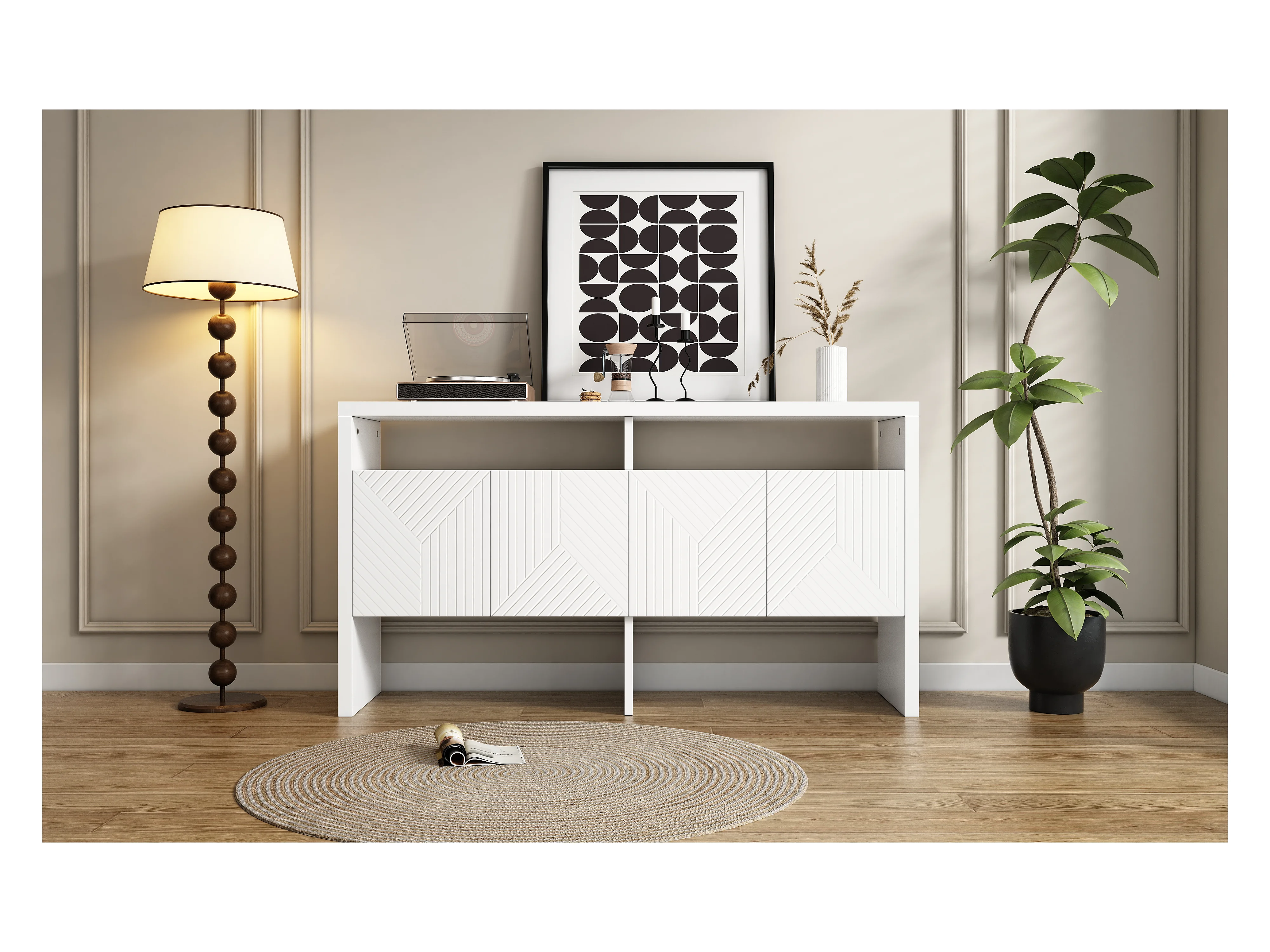 Aparador MDF 120x39,8x75cm Esquina Redondeada 4 Puertas Salón Cocina Blanco Magnético