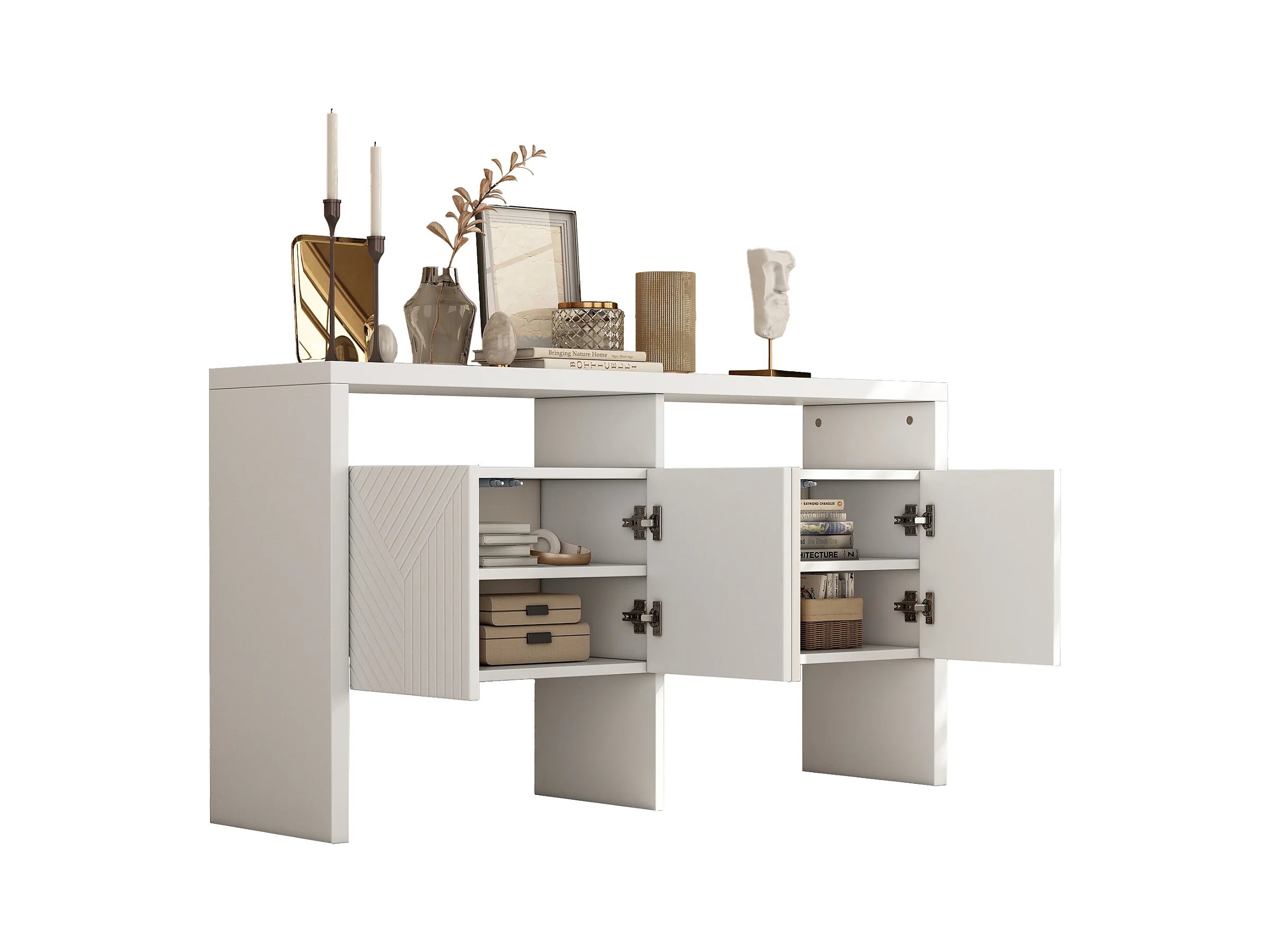 Aparador de MDF con 4 puertas y 2 nichos para salón, blanco, 140 x 75 cm, diseño moderno