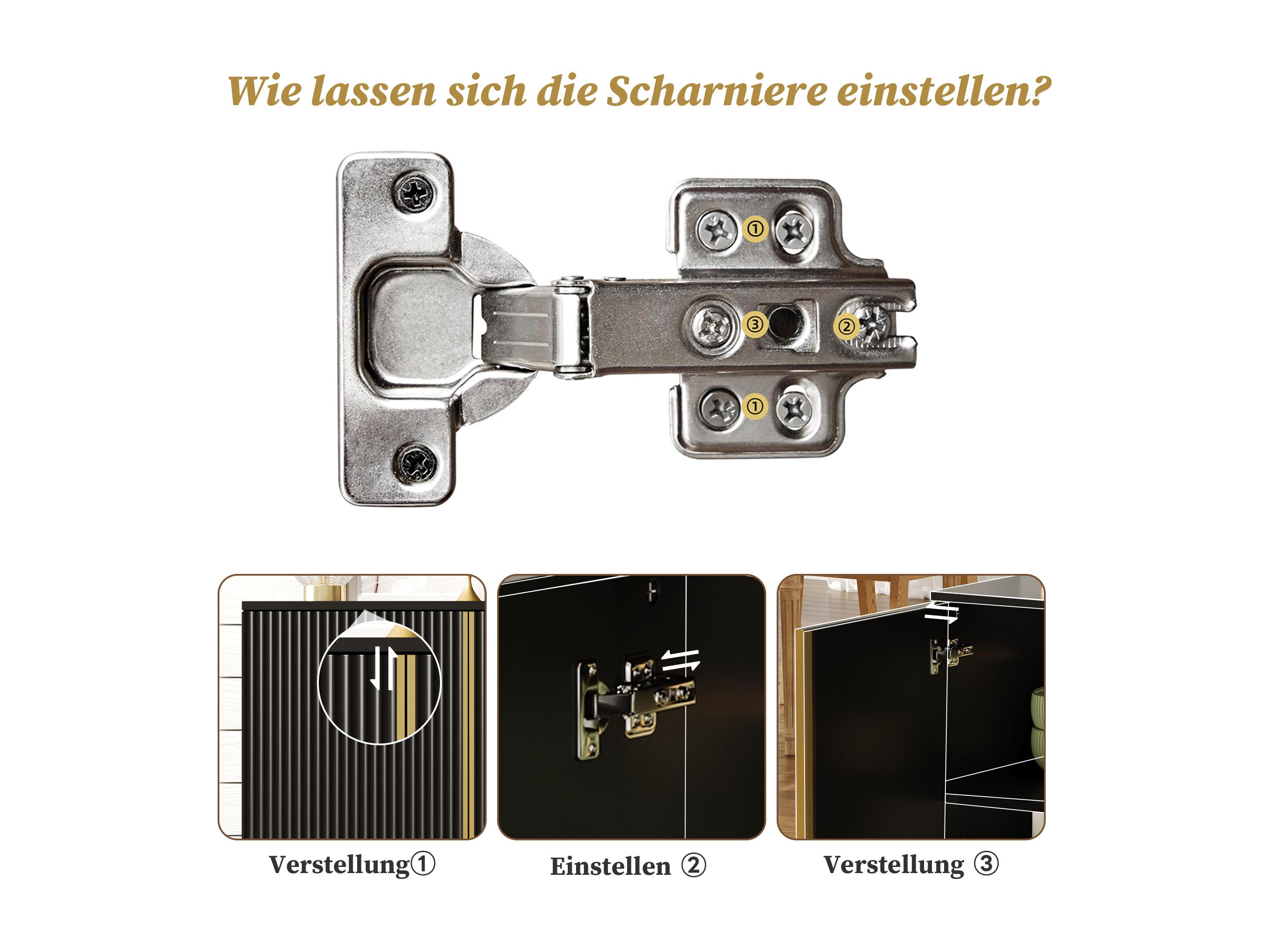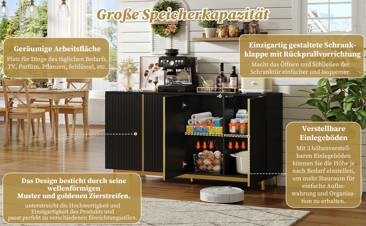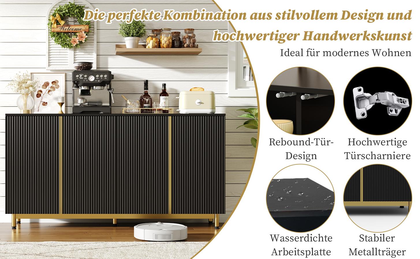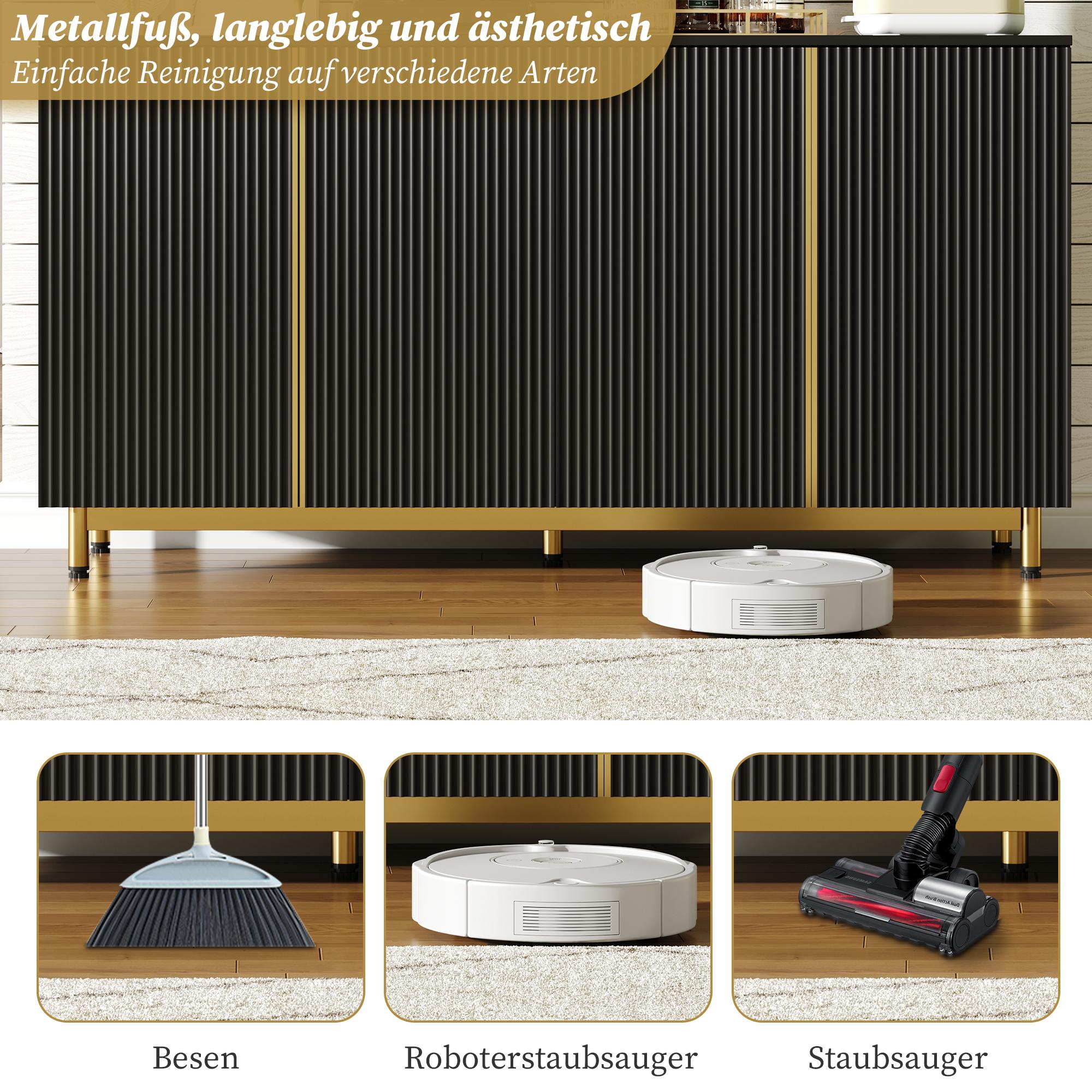 Aparador de MDF de 150 cm con puertas onduladas y patas metálicas regulables para salón cocina color negro