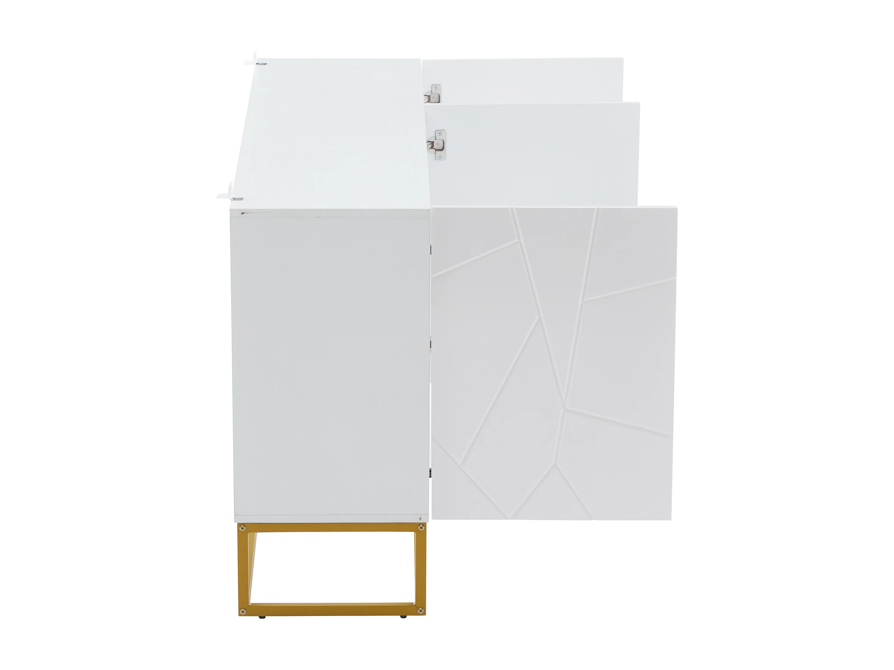 Aparador de MDF diseño ranurado almacenaje 3 puertas moderno salón comedor blanco 130x38x76cm