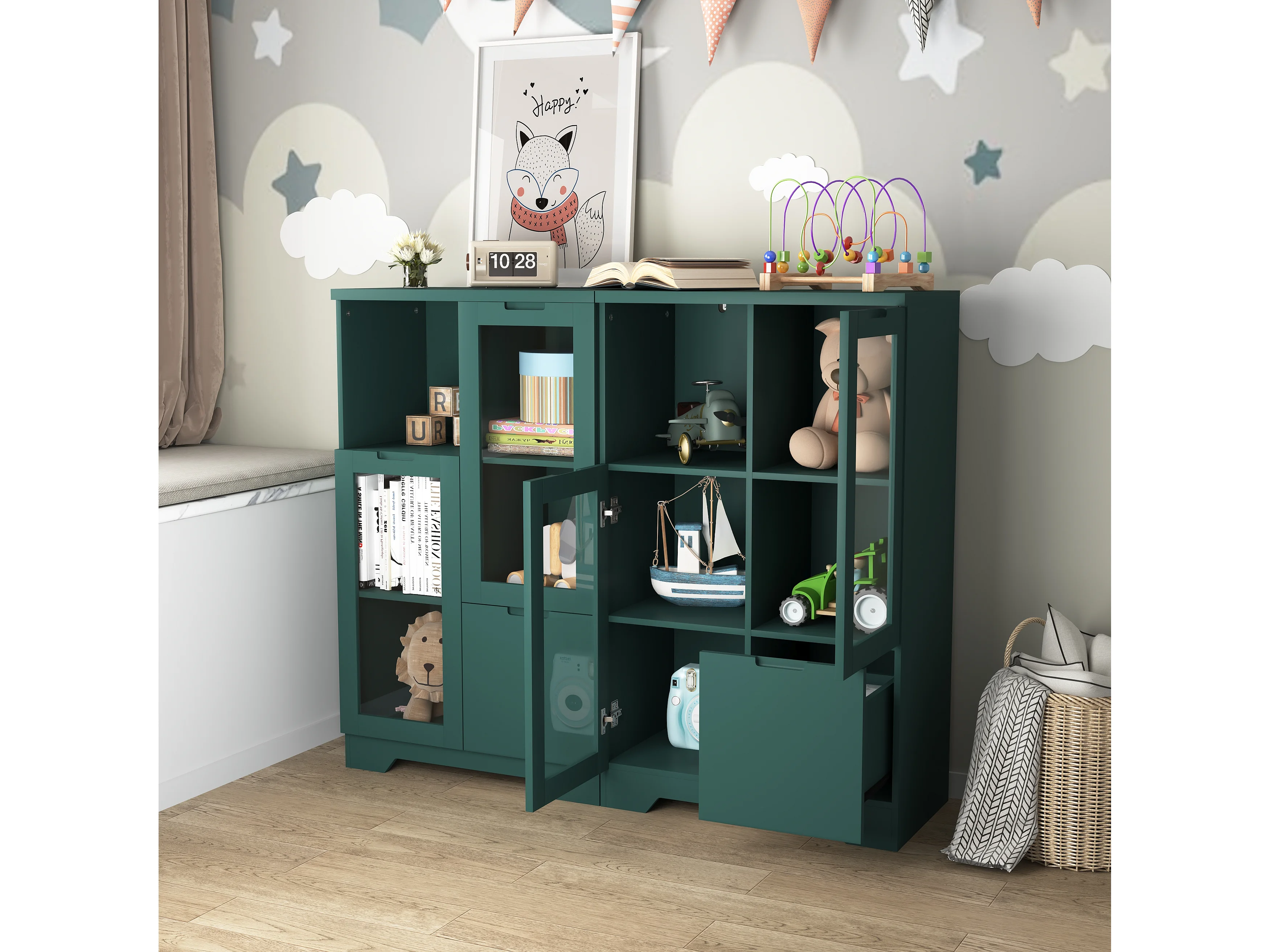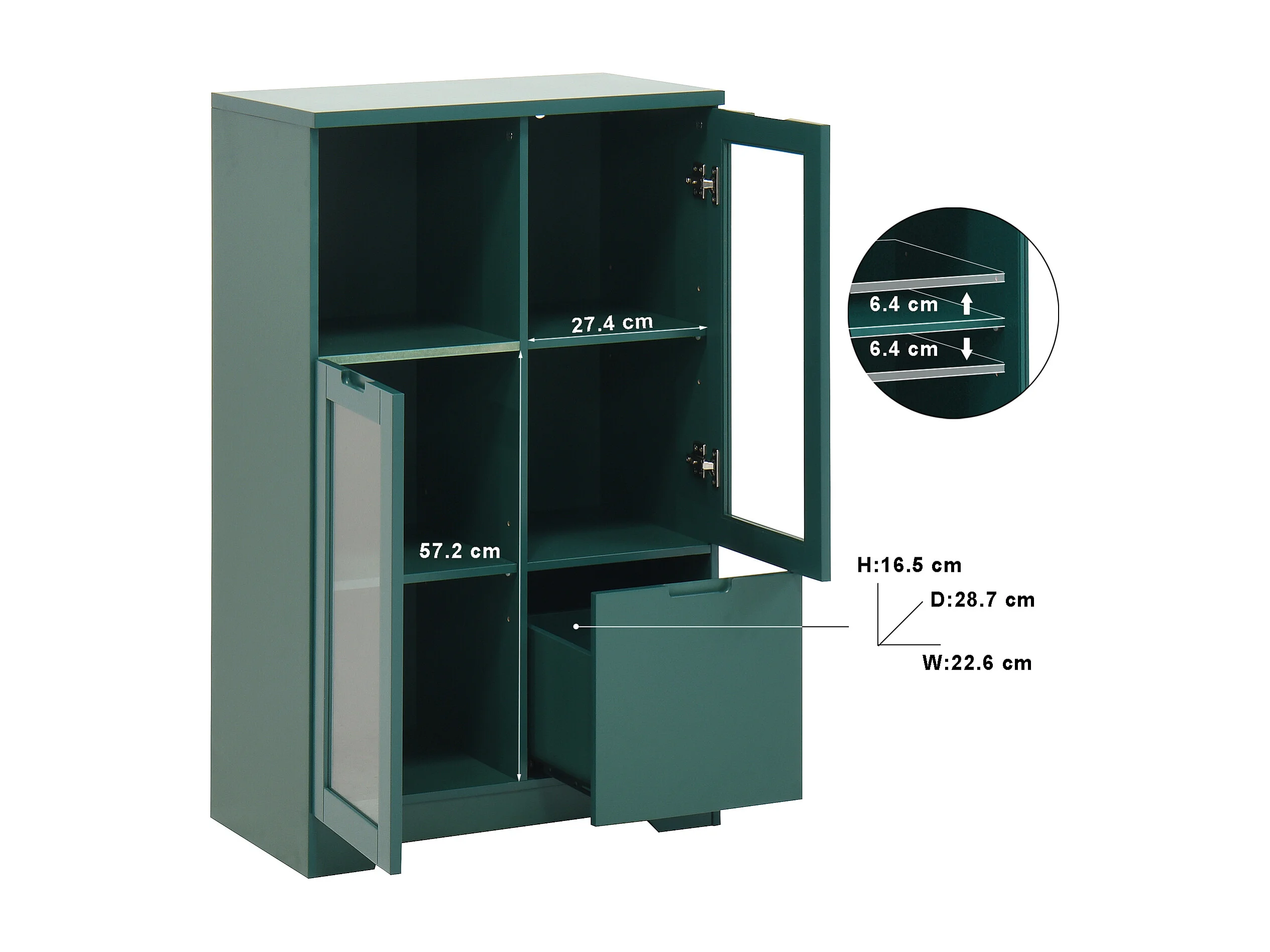 Aparador de MDF verde con puertas de cristal y cajón, mueble de almacenaje para salón dormitorio 90x40x120 cm