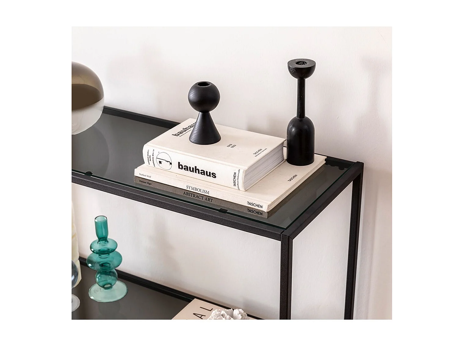 Aparador de metal y cristal – 80 cm x 85 cm x 30 cm – Negro y ahumado