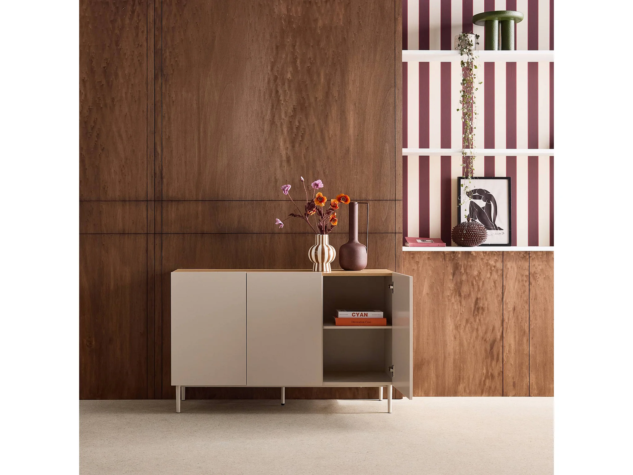 Aparador de metal y decoración de madera 3 puertas 120cm beige