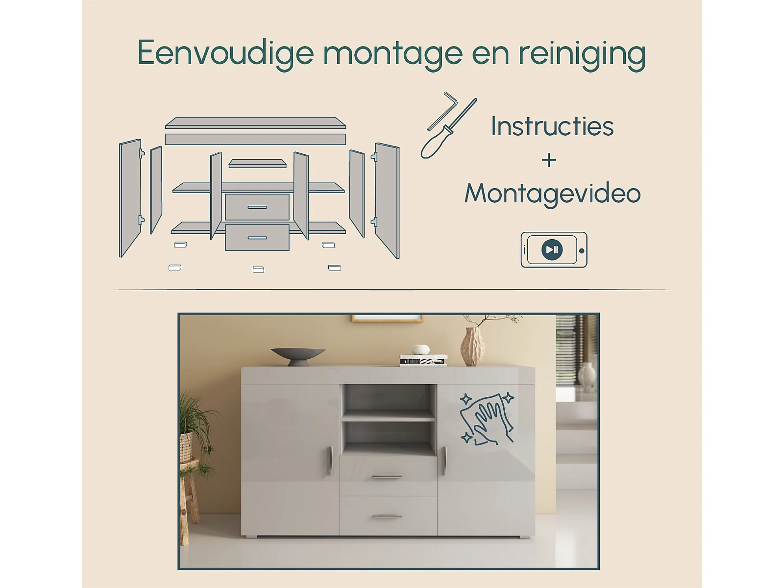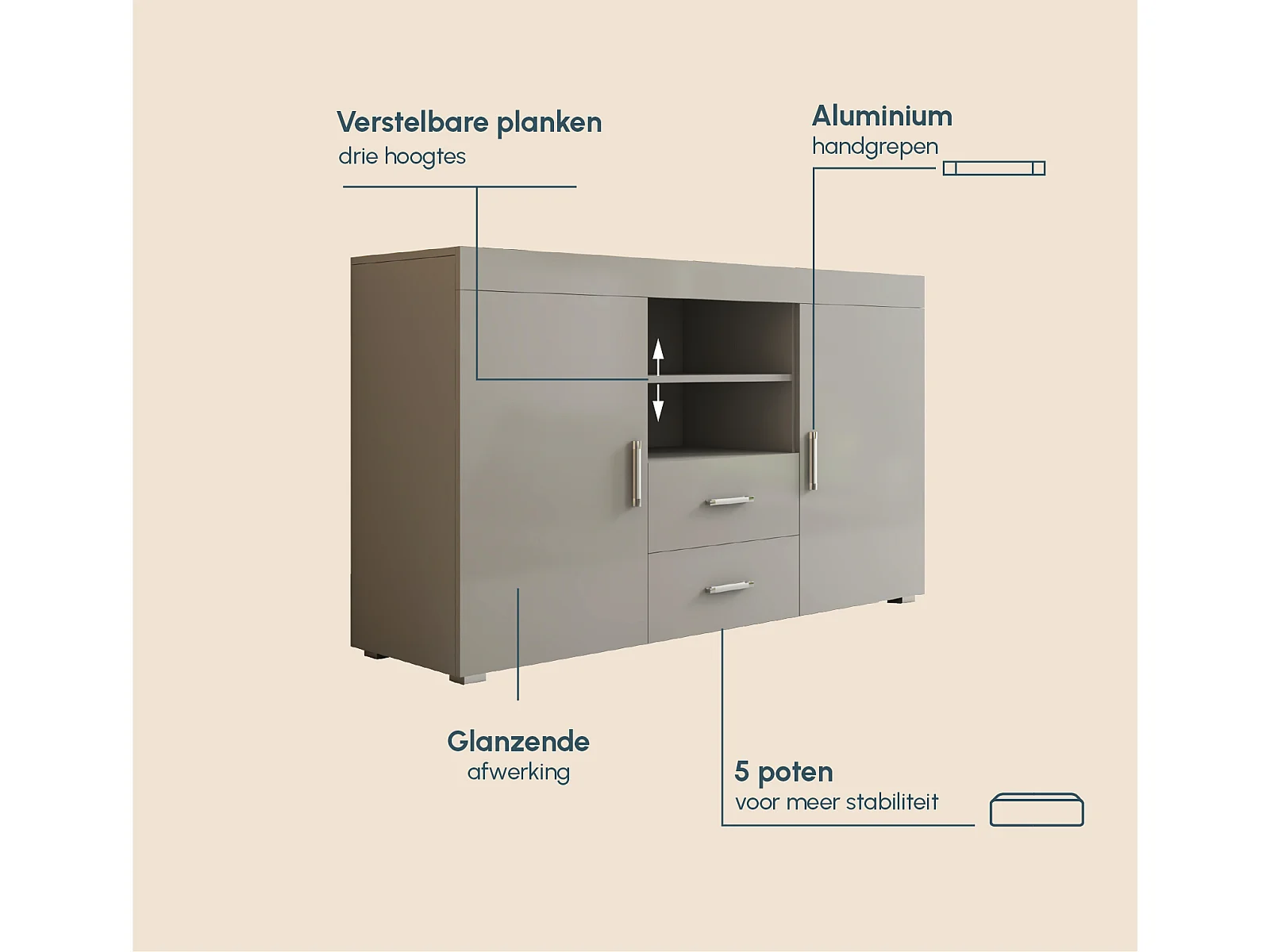 Aparador para Salón comedor en Gris 140x40x80cm Roque