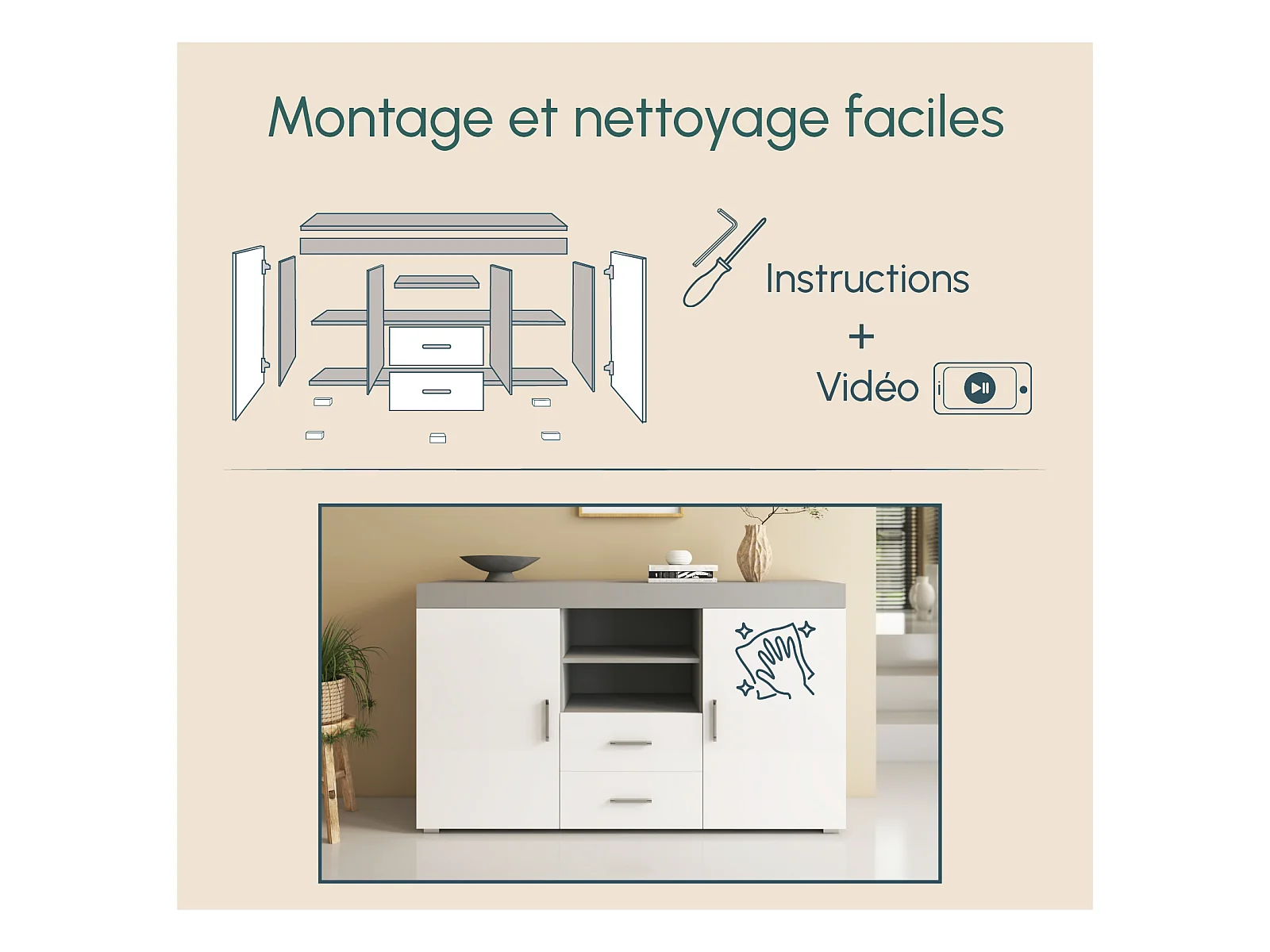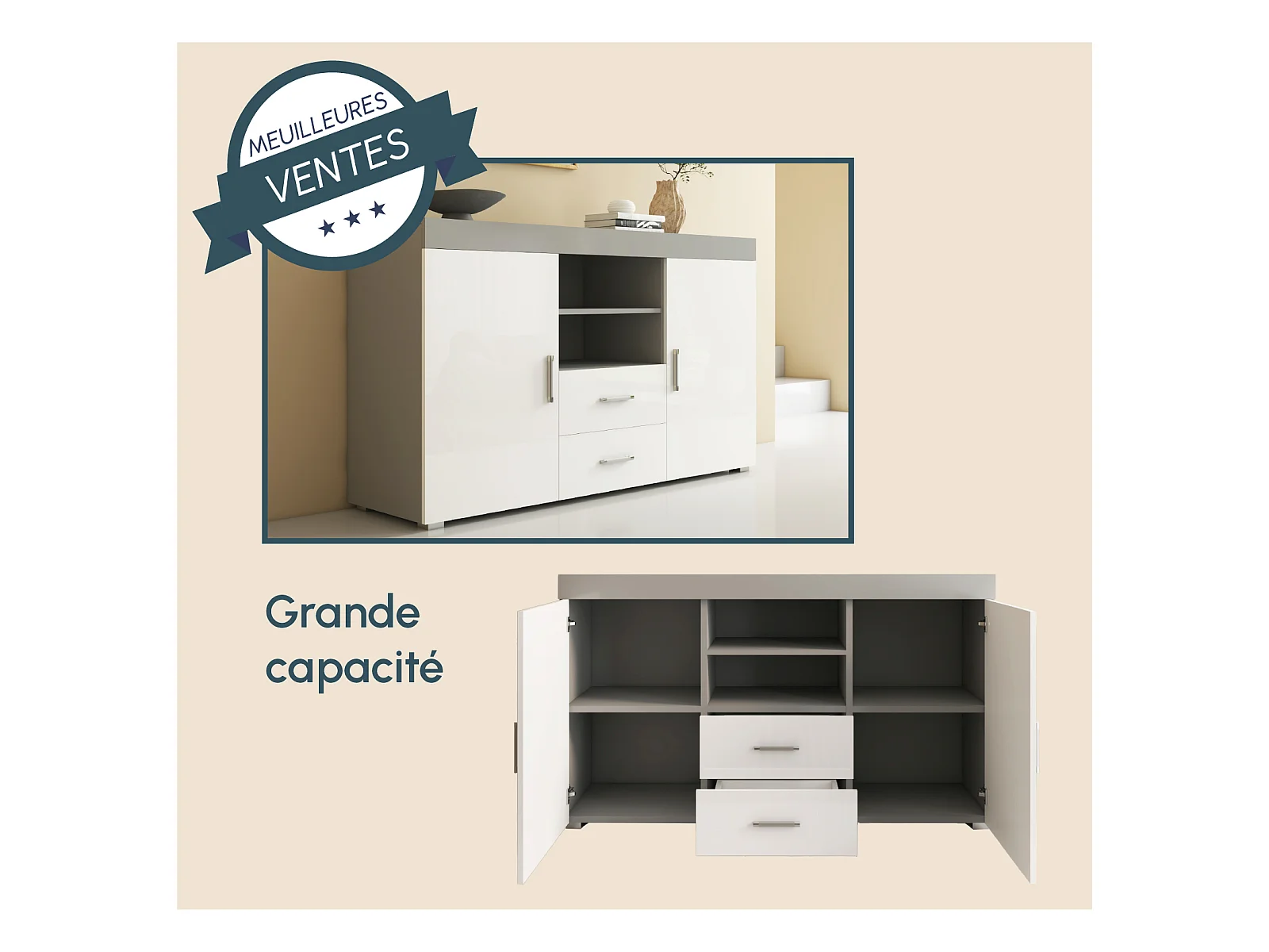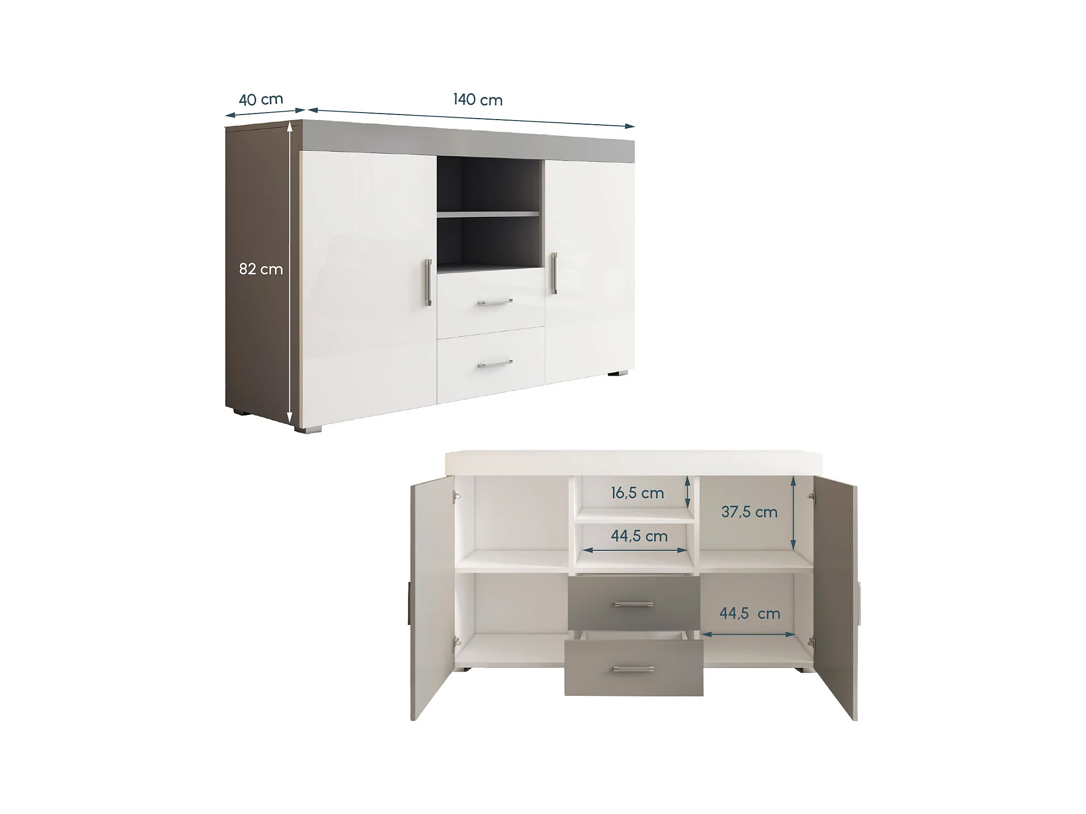 Aparador para Salón comedor en Gris y blanco 140x40x80cm Roque