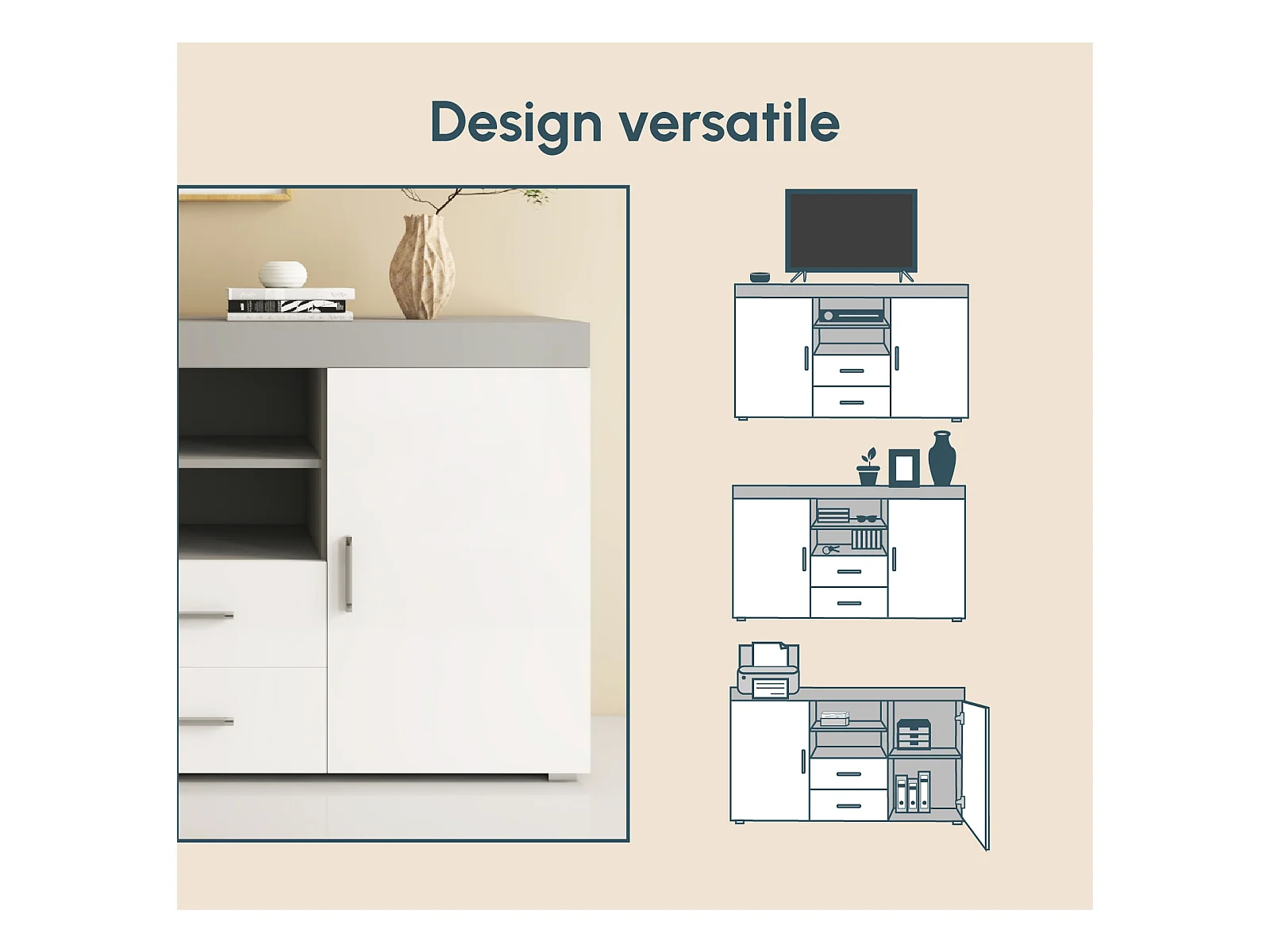 Aparador para Salón comedor en Blanco y Gris 144x42x80cm Nelia