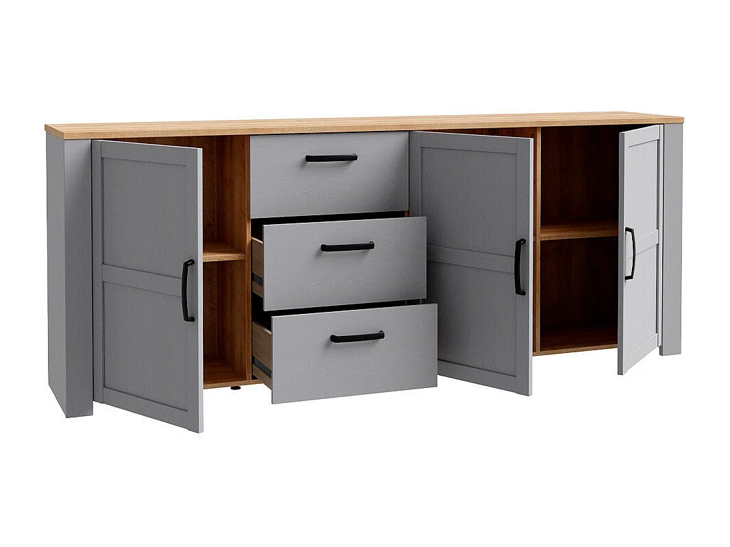 Aparador de salón-comedor de 87x220,8x42 cm con 3 puertas y 3 cajones en color gris Odin
