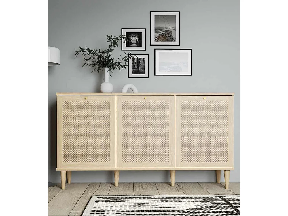 Aparador de salón-comedor de 89,8x149,8x41,4 cm con detalles en ratán en color beige Deka
