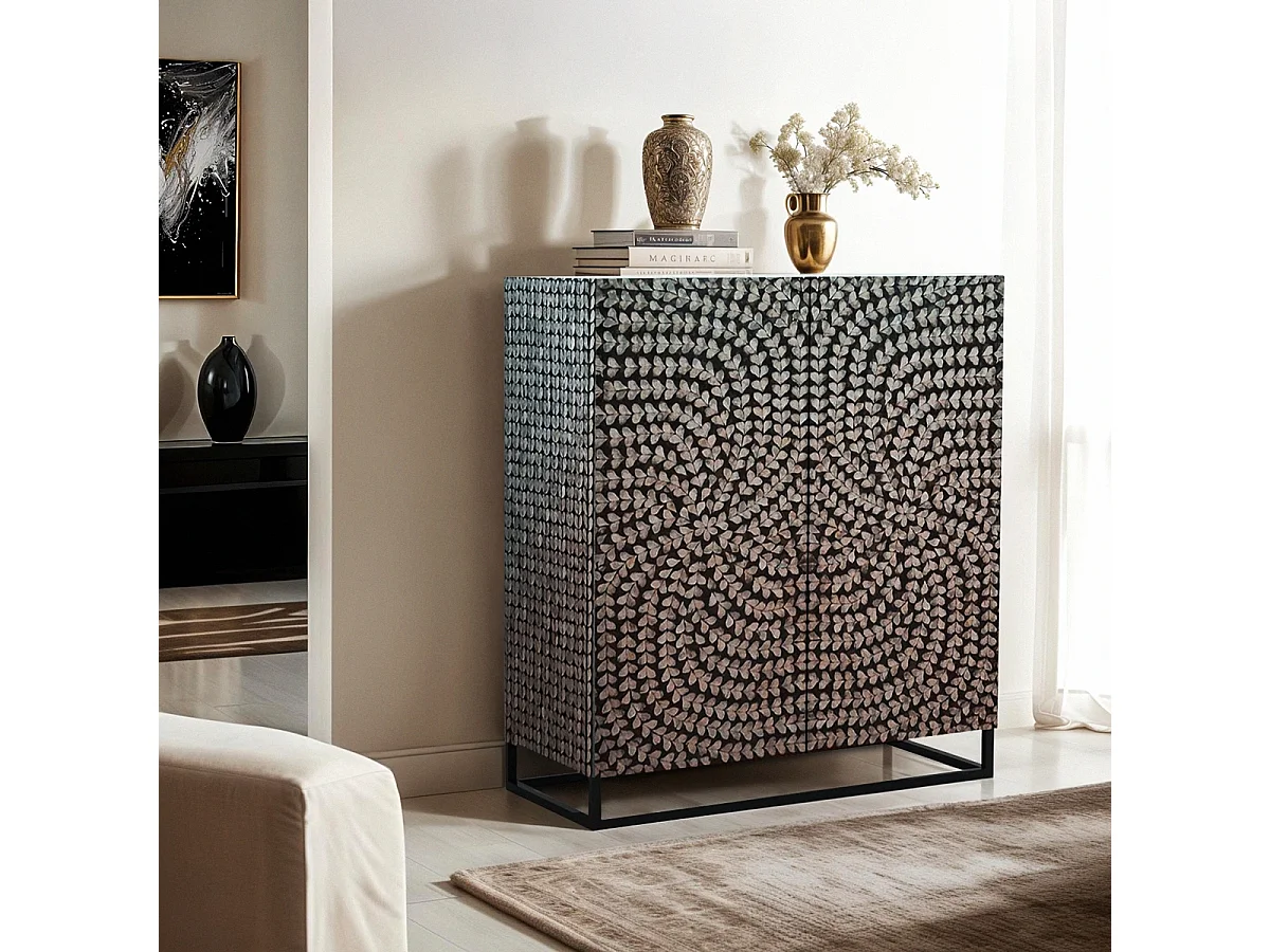 Aparador de salón con 2 puertas con incrustaciones de nácar Evan