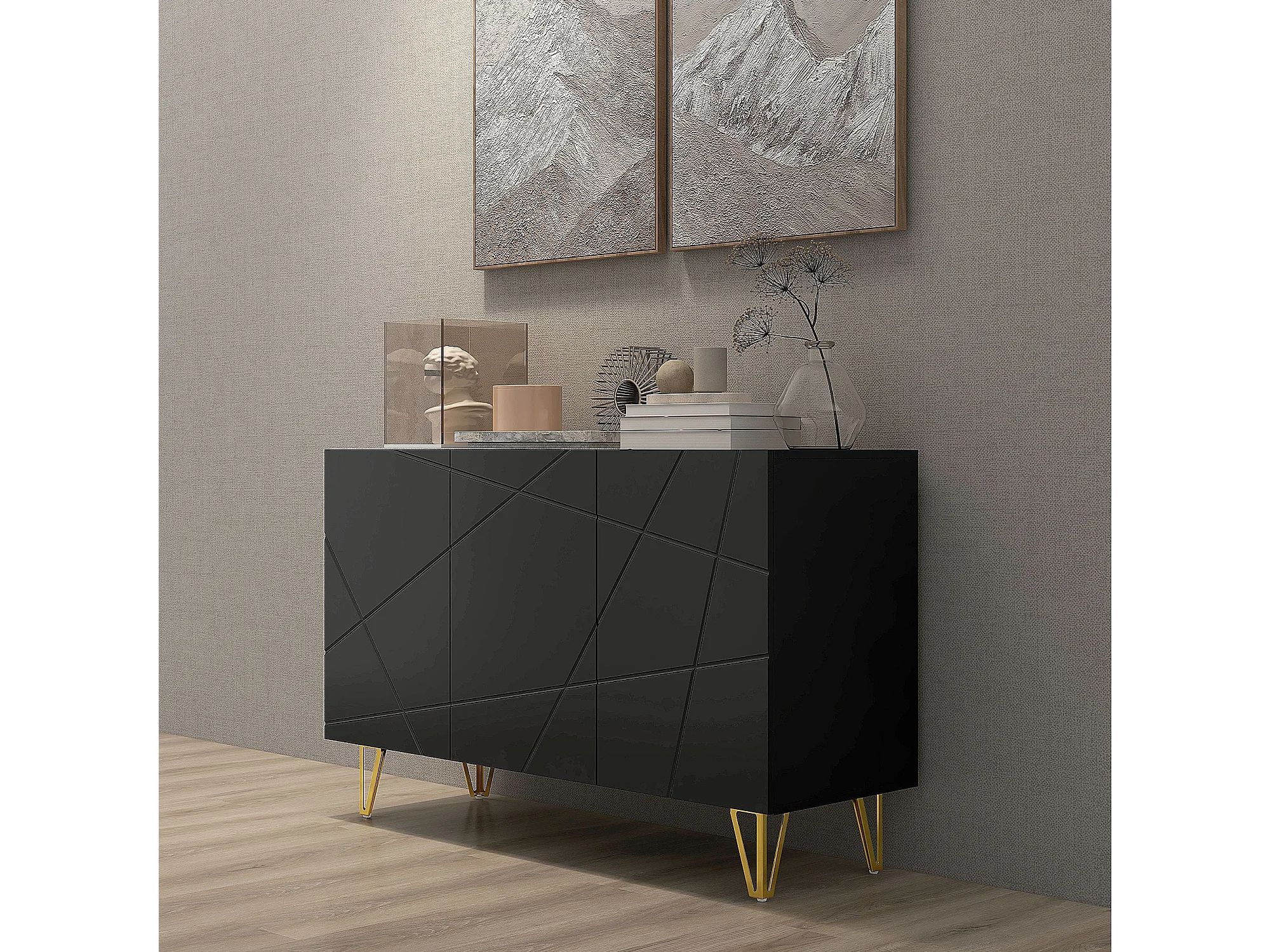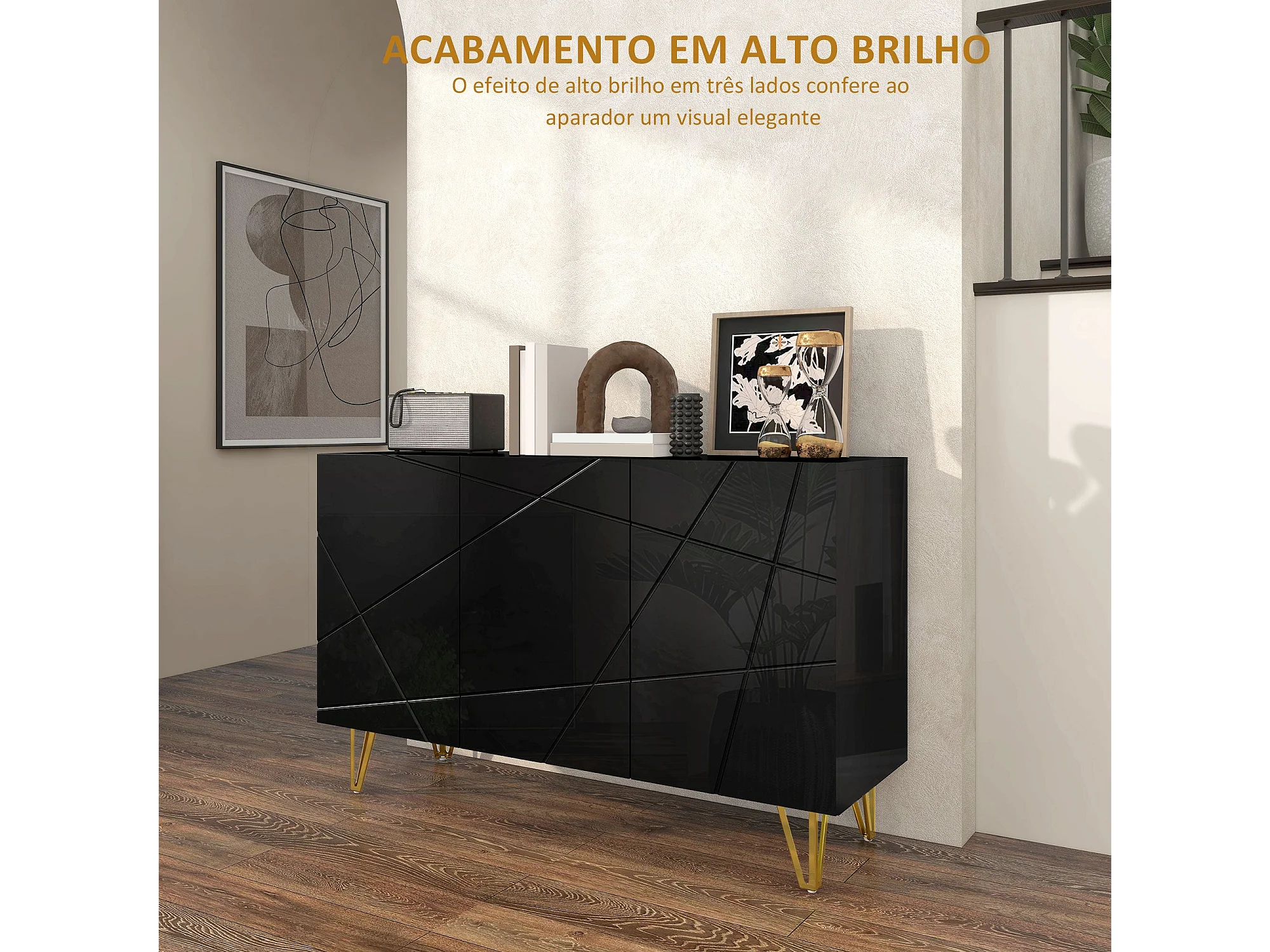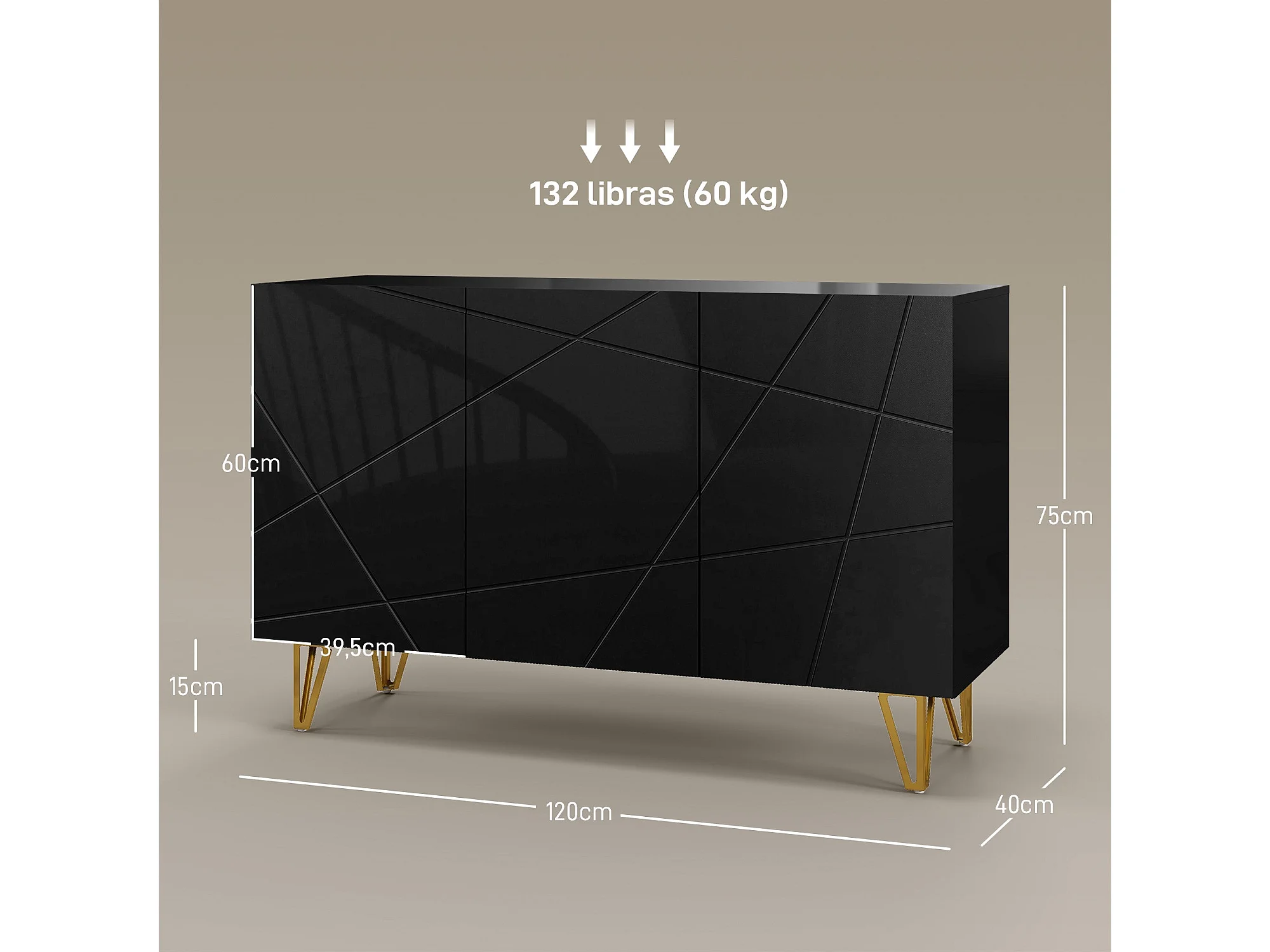 Aparador Desiré Homcom 3 puertas negro/dorado 75x120x40 cm