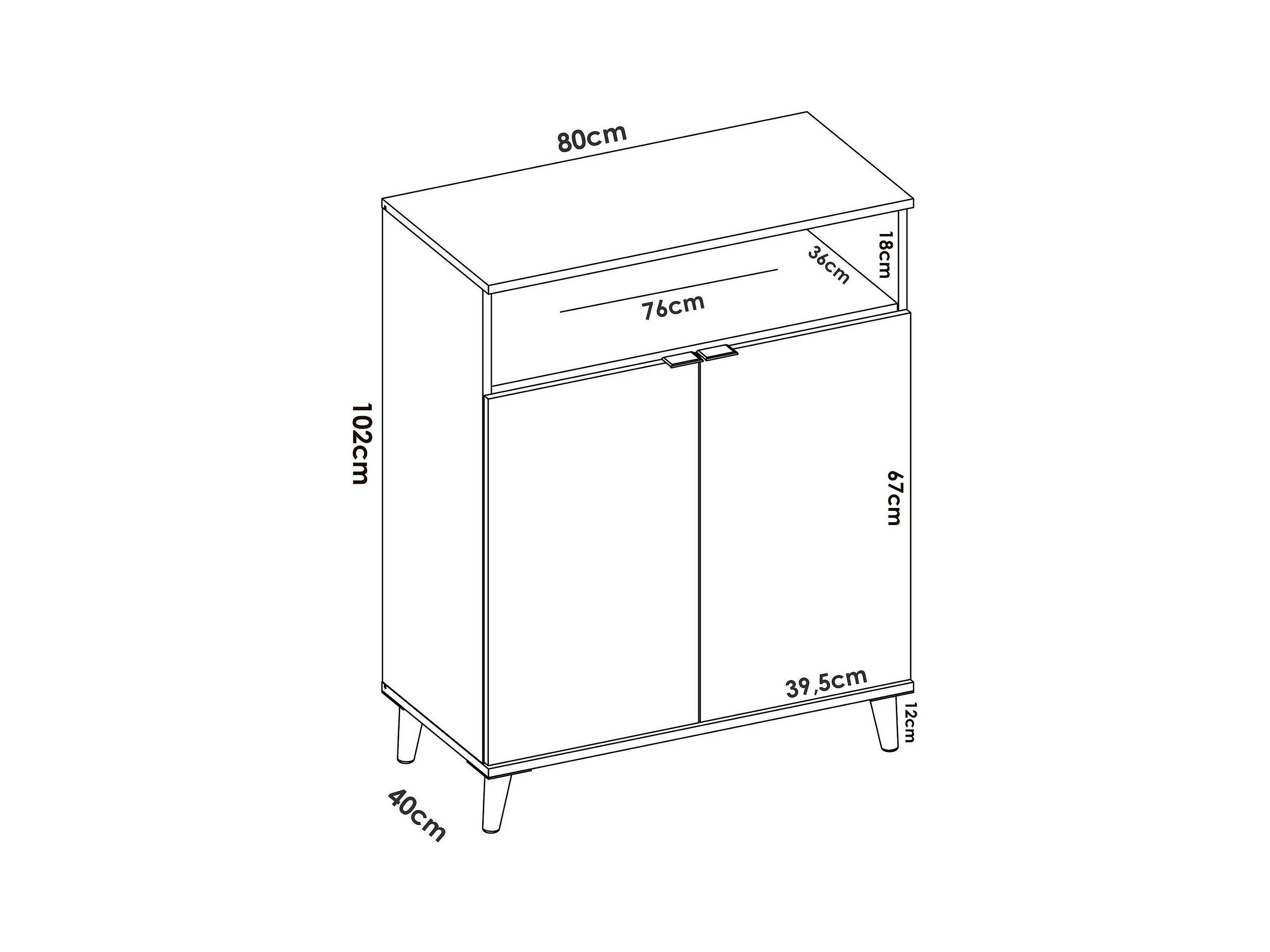 Aparador Dmossin, Despensa de salón, Aparador de salón moderno con 2 puertas, 80x40h102 cm, Blanco y Roble