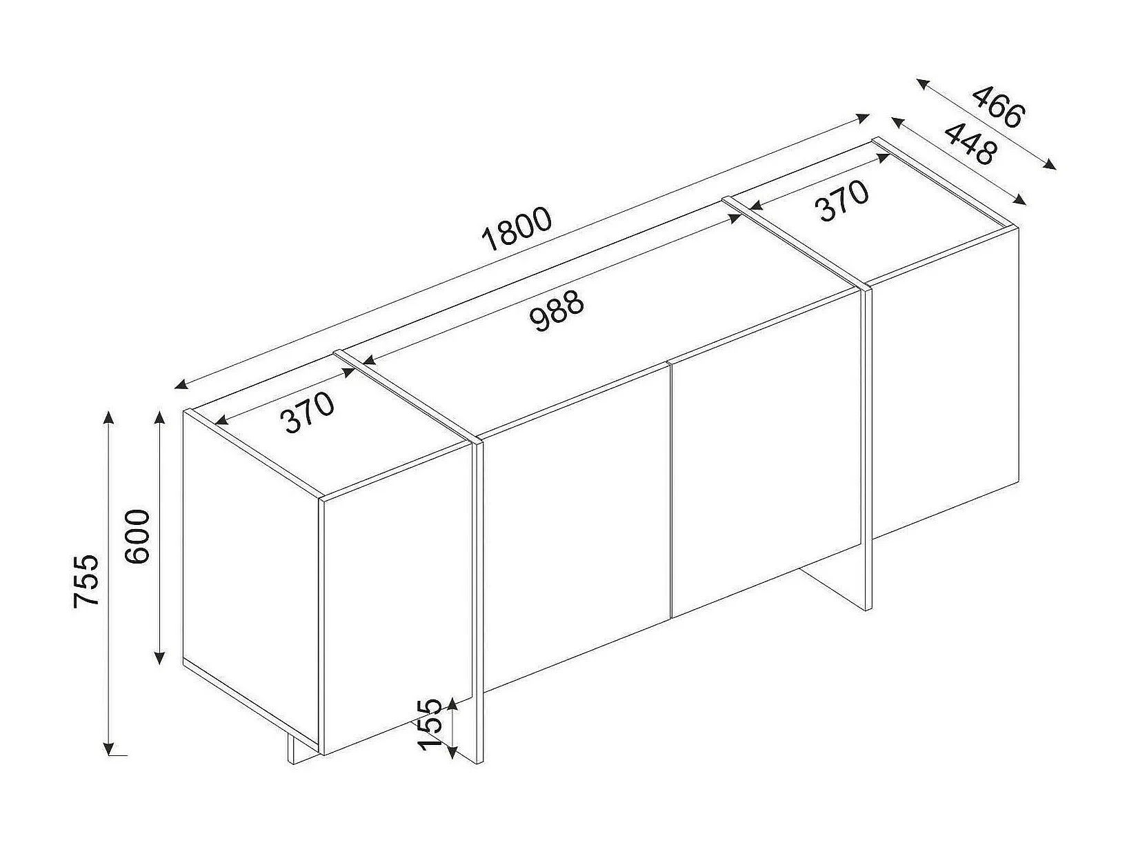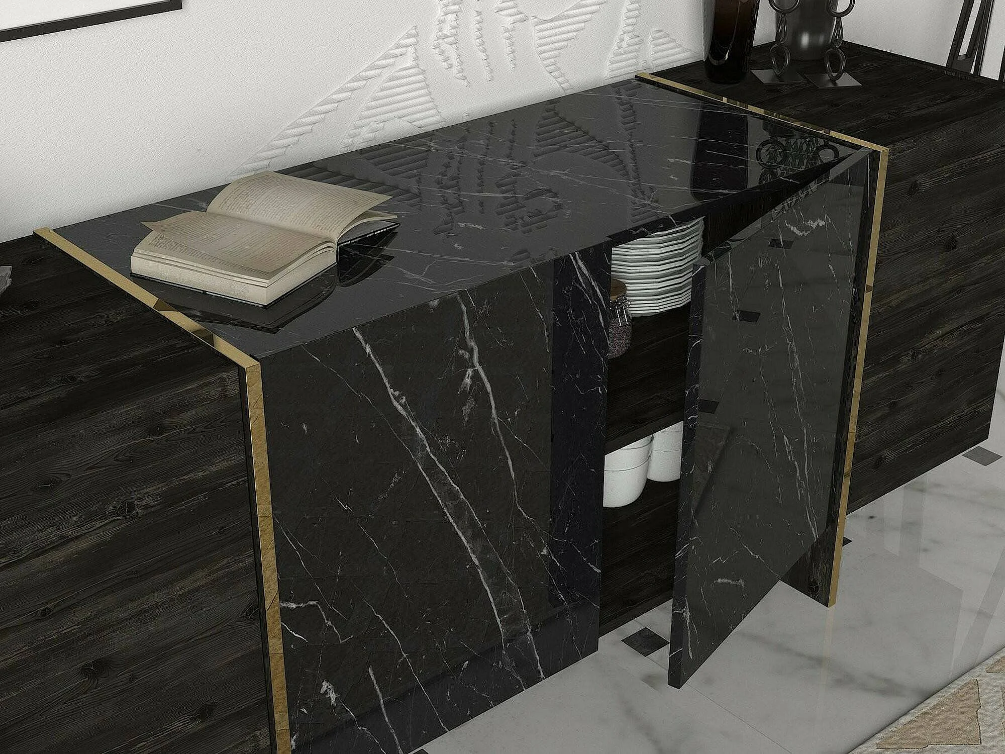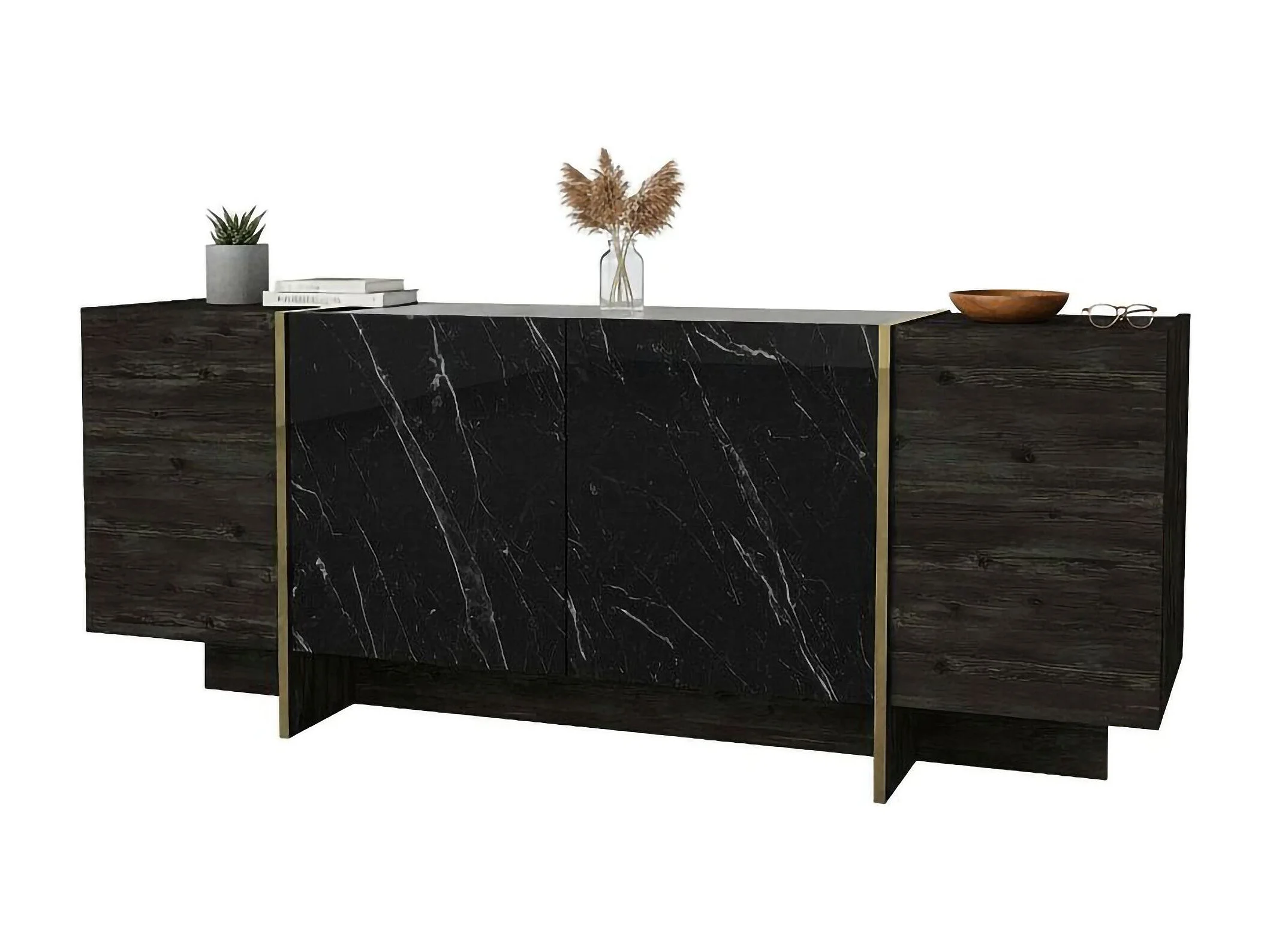 Aparador Dpazzagl, Bufé de salón, Aparador de salón, Despensa de cocina, 180x47h76 cm, Negro y Oro
