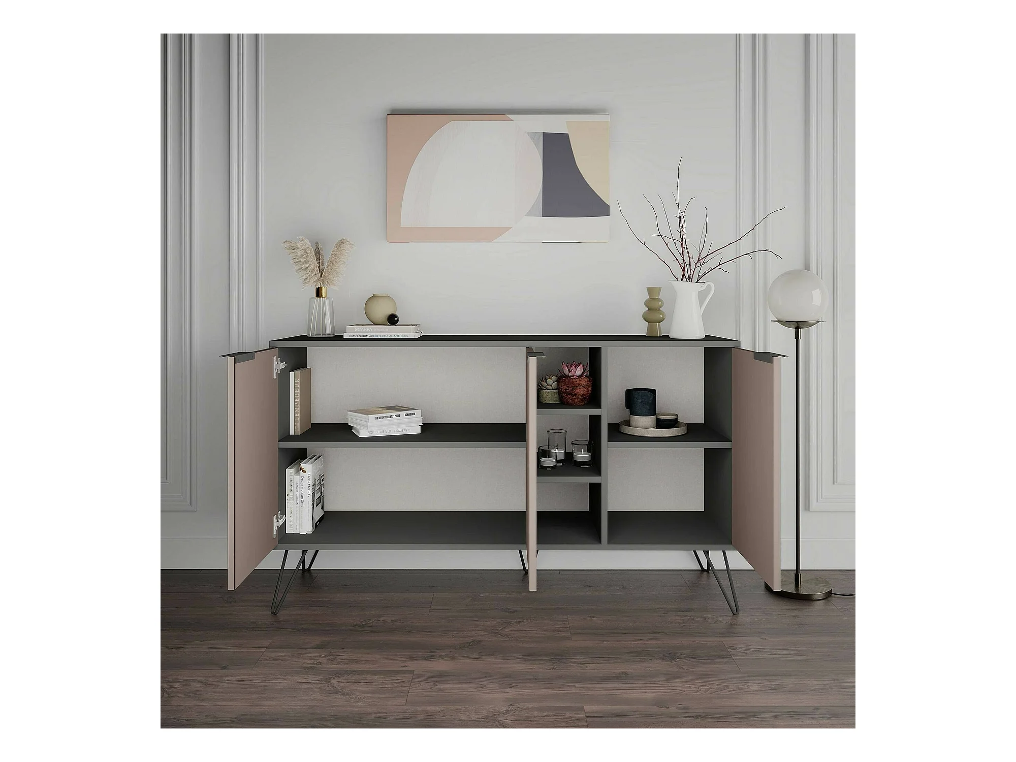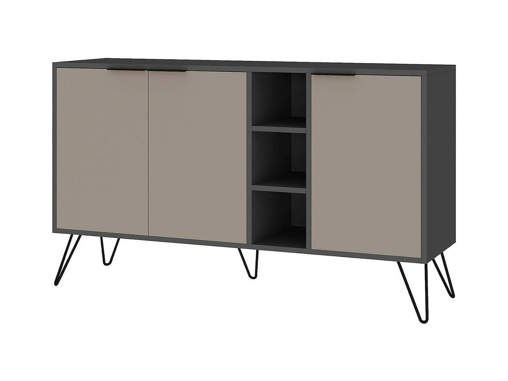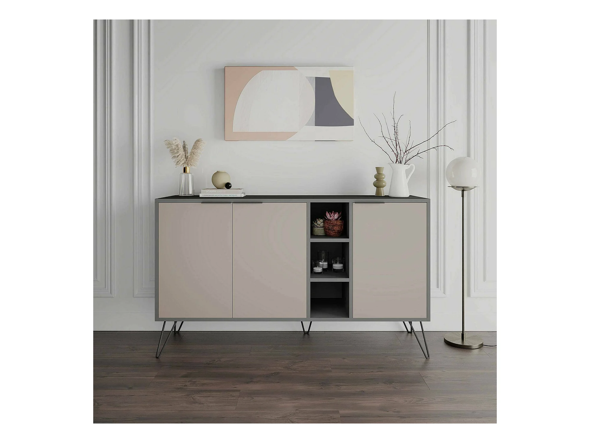 Aparador Dpenz, Bufé de salón, Aparador de salón, Despensa de cocina, 142x36h83 cm, Antracita y Beige