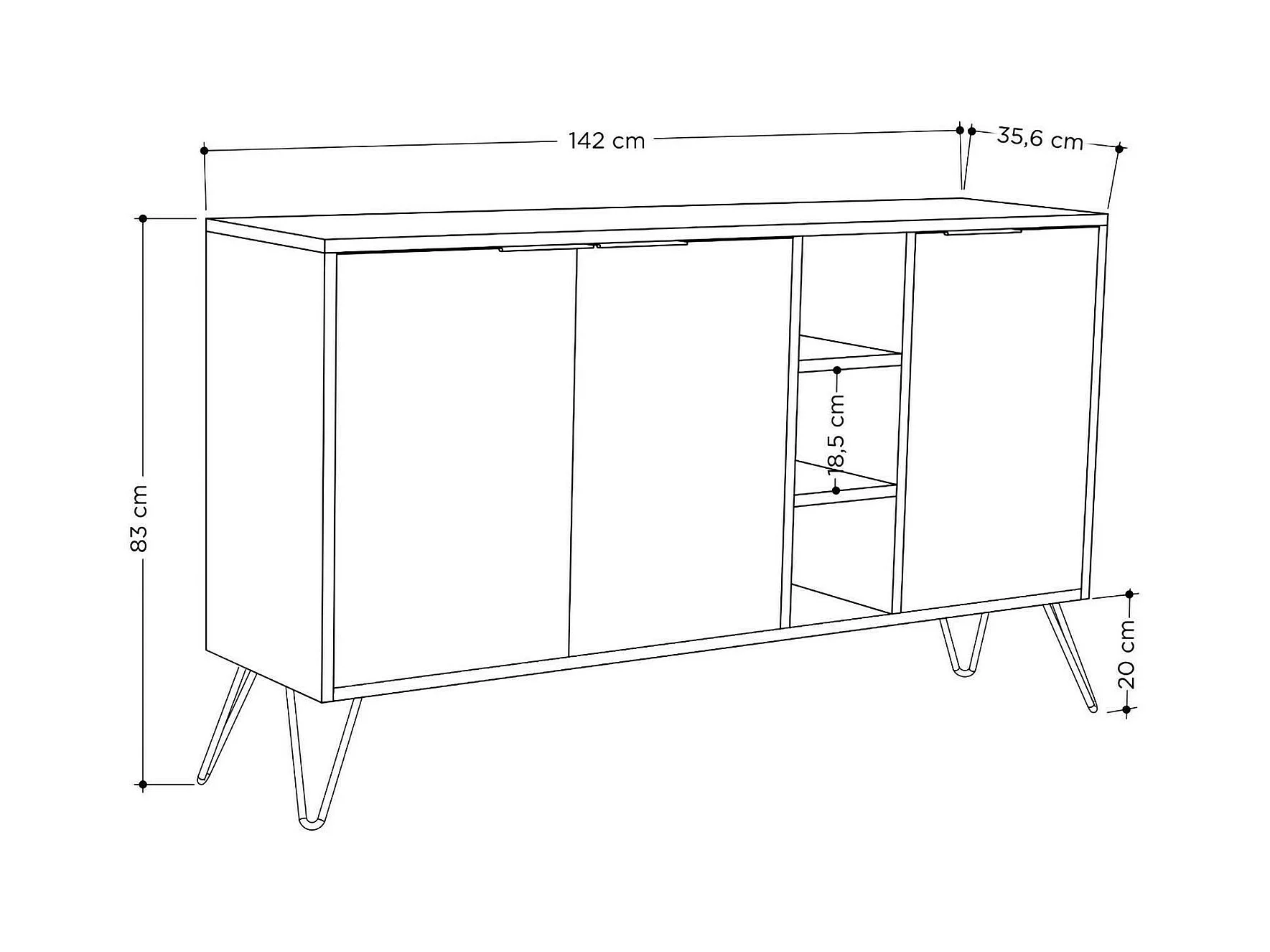Aparador Luvio Con 4 Puertas - Patas De Metal 160 Cm Negro