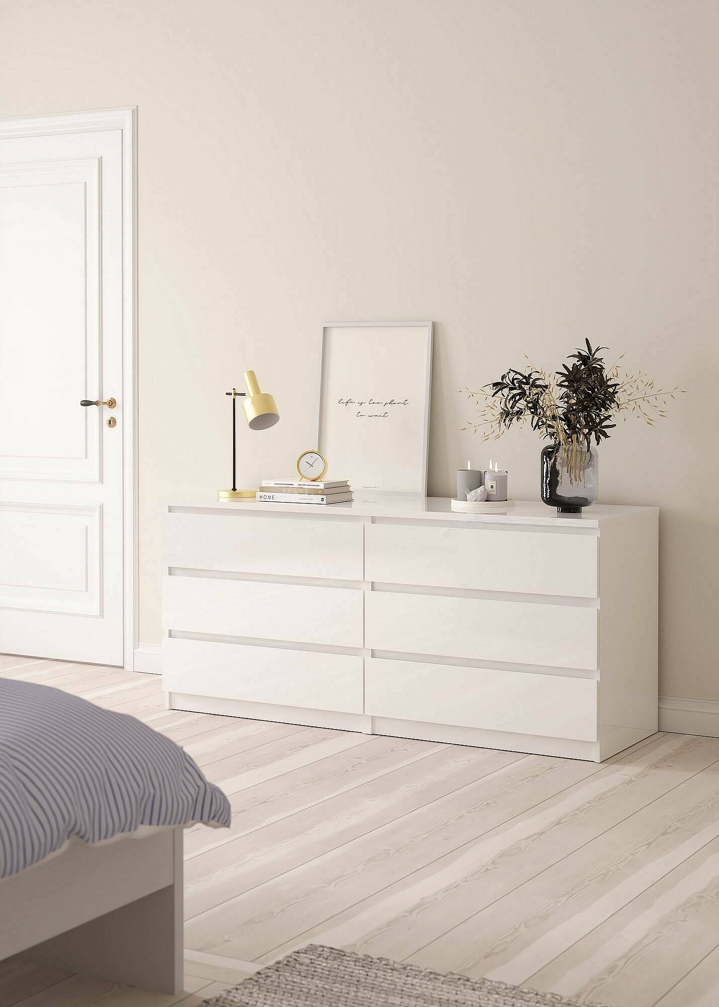 Cómoda Nada estrecha 3 cajones blanco alto brillo.