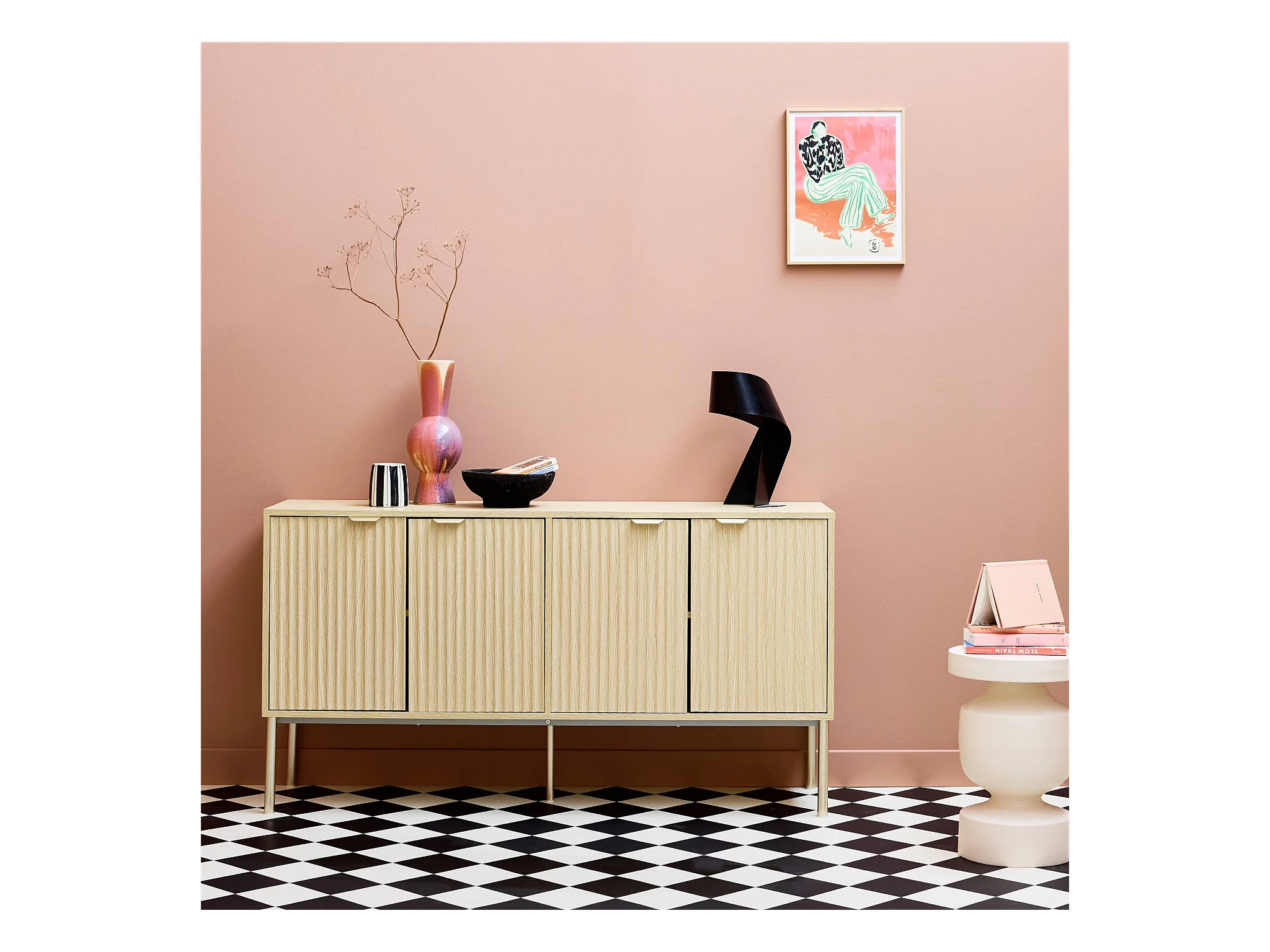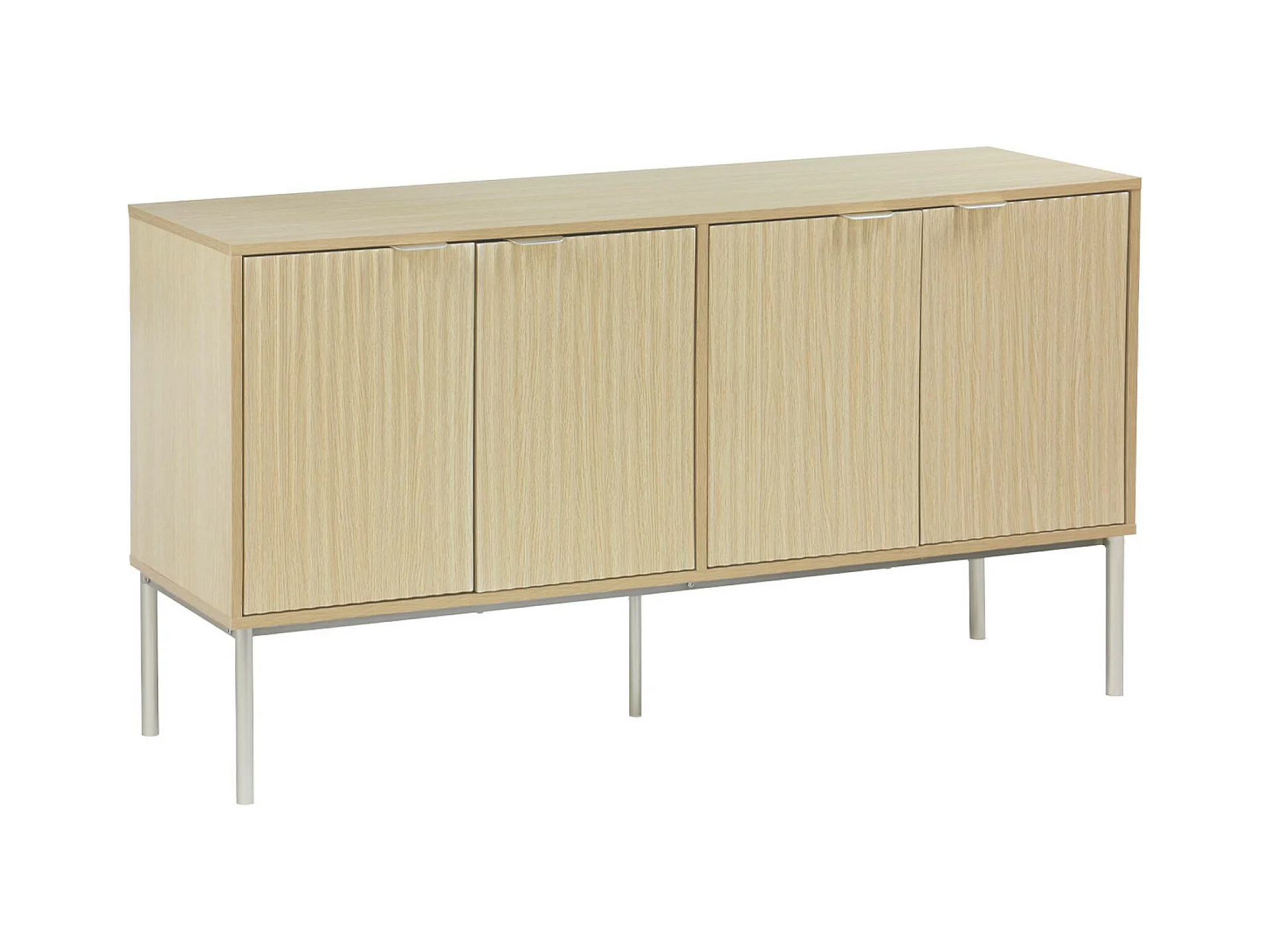 Aparador efecto madera y metal, 4 puertas 140cm natural
