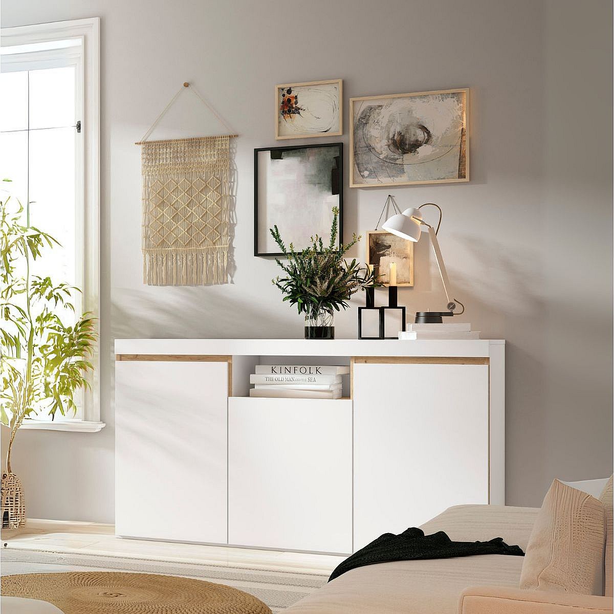 Aparador Elis 3 puertas + compartimento blanco mate/natural 80,5x140,1x39,6 cm