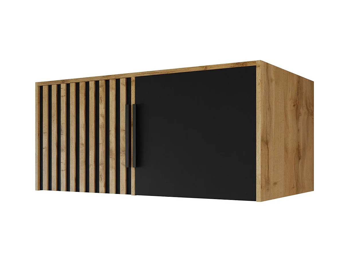 Aparador Enolevo 103, Negro|Roble wotan, 45x100x58cm, Aglomerado laminado