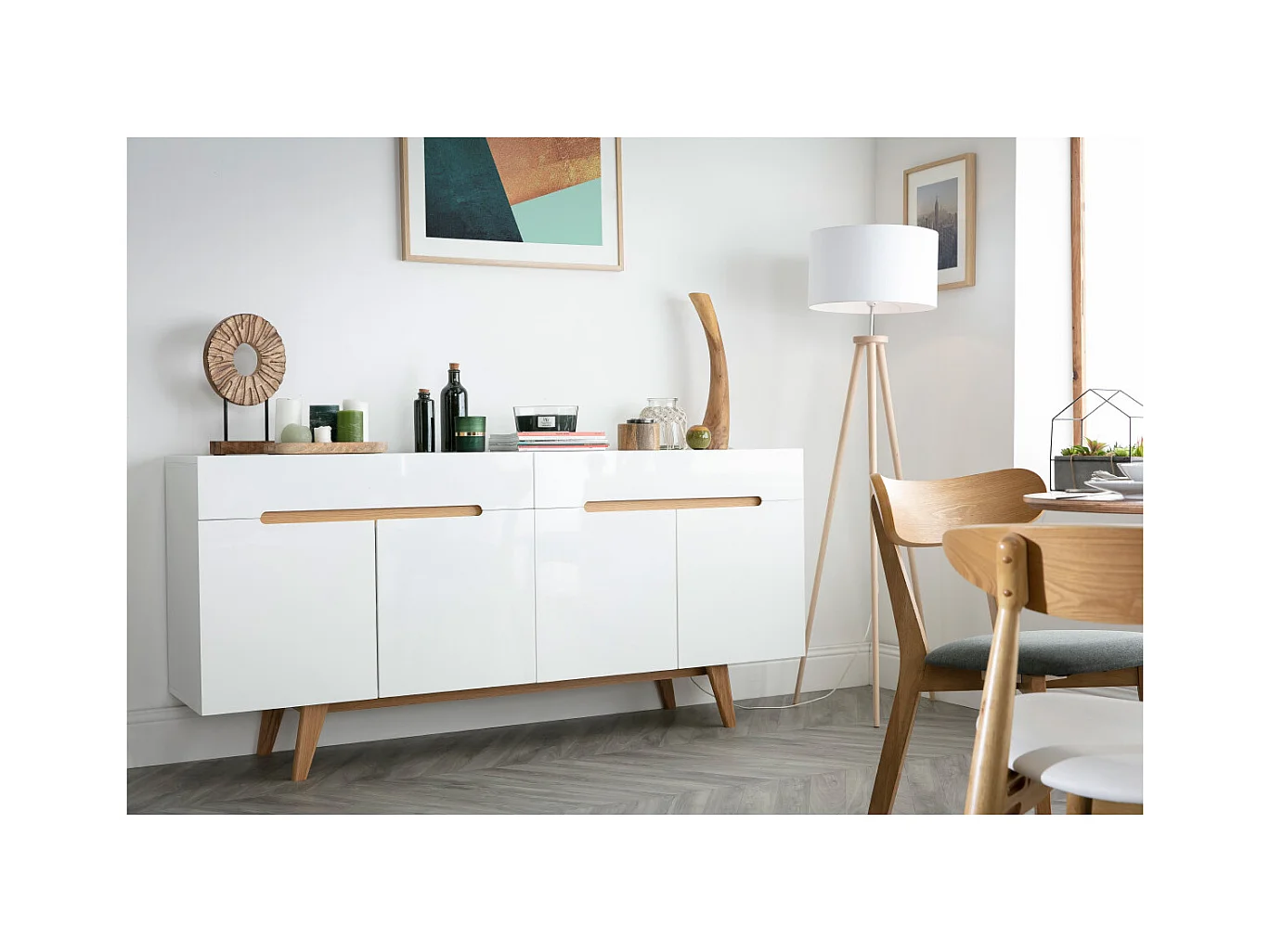 Aparador escandinavo blanco brillante y fresno 180cm MELKA