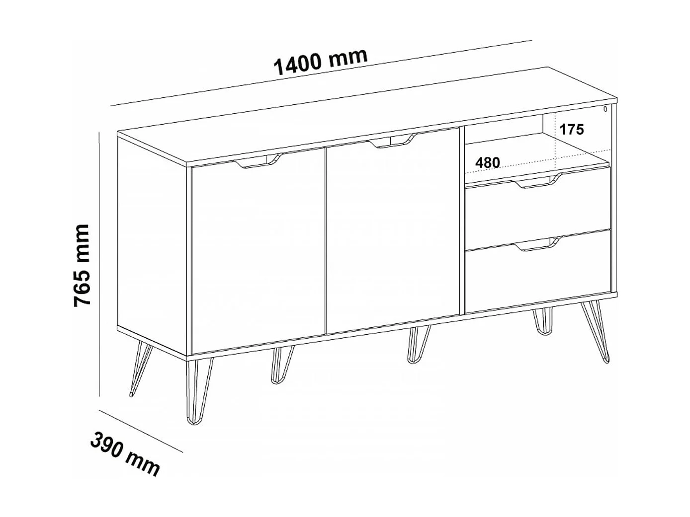 Aparador 2 puertas y 6 espacios - 140 cm BREZNO
