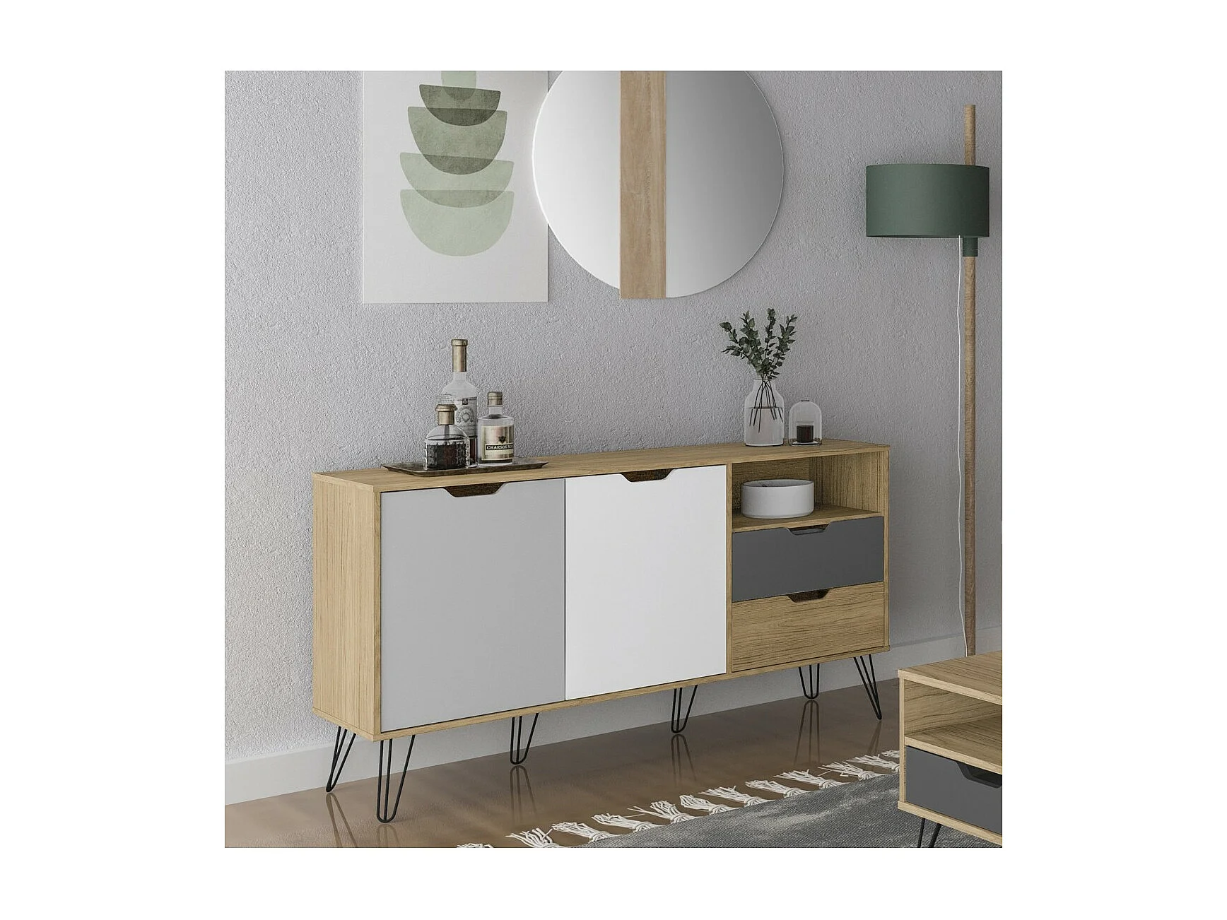 Aparador ESTOCOLMO 2 puertas y 2 cajones en MDF lacado. Colores:blanco, gris claro, oscuro y roble. Med:140x39x76,5H cm