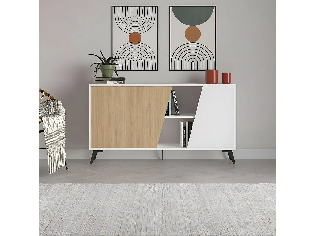 Aparador Fiona 2 puertas + 5 compartimentos roble/blanco 82x150x35,6 cm