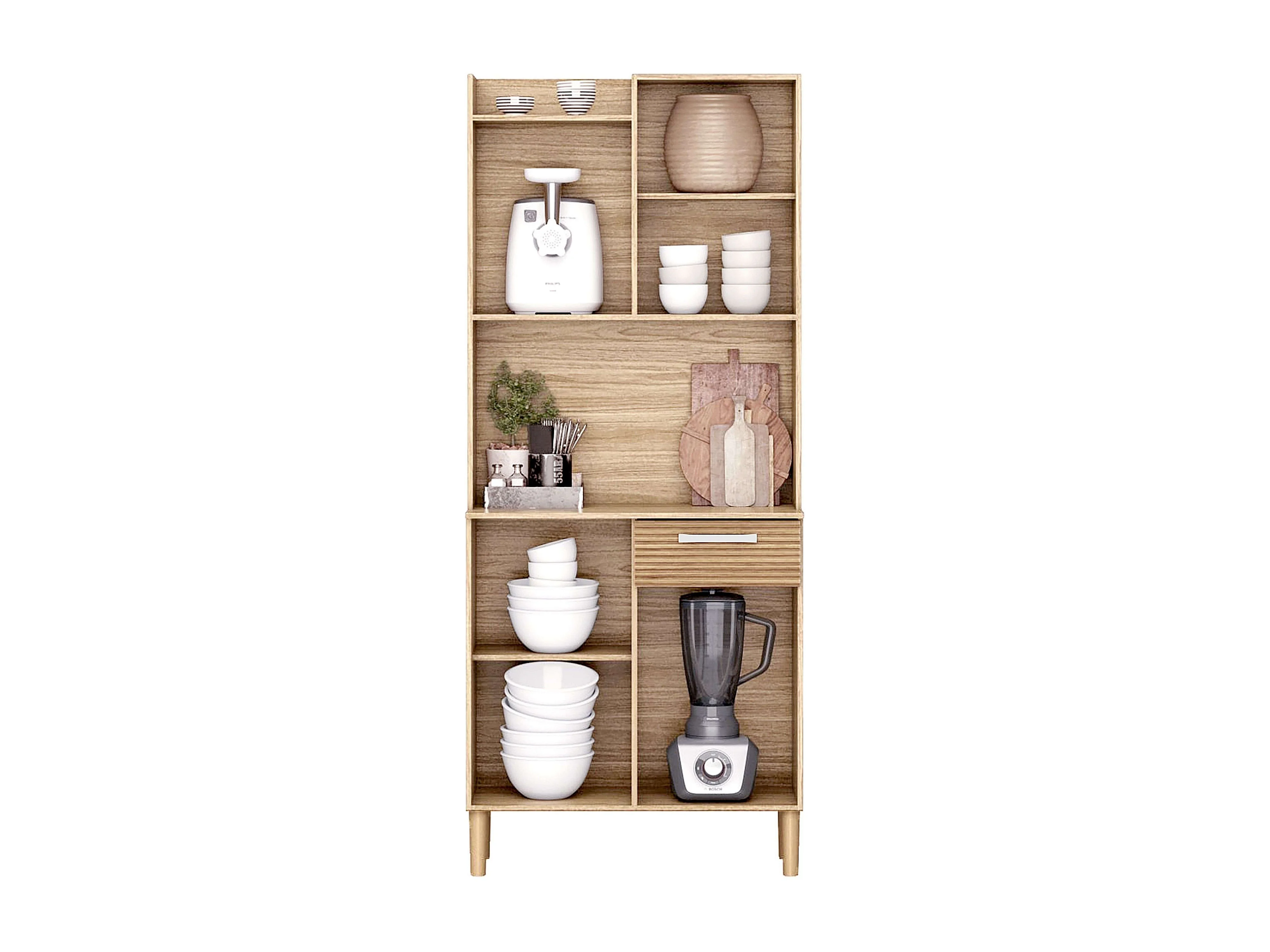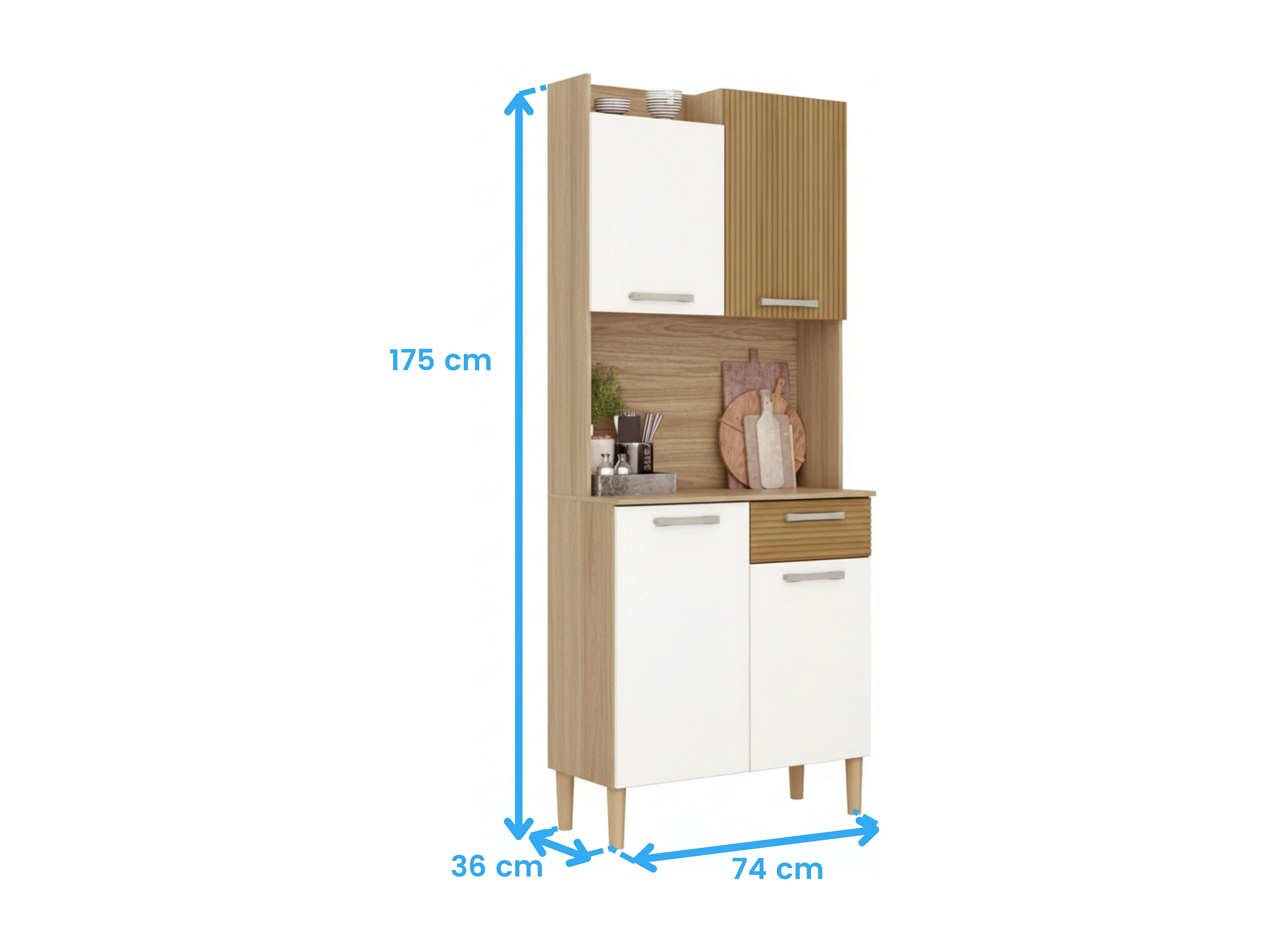 Aparador Gabi 4 puertas 1 cajón melamina blanco y madera claro 175x74x36 cm