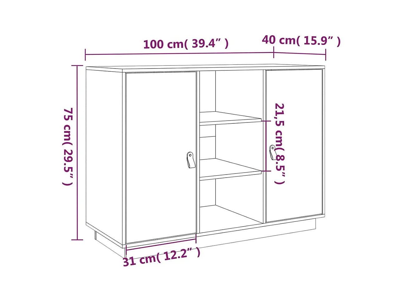 Aparador Gris 100x40x75 cm Madera Maciza de Pino