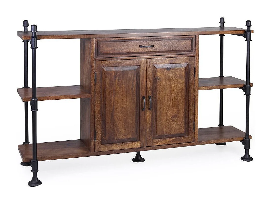 Aparador industrial 1 cajón 2 puertas hierro negro y mango marrón Kouba 160 cm