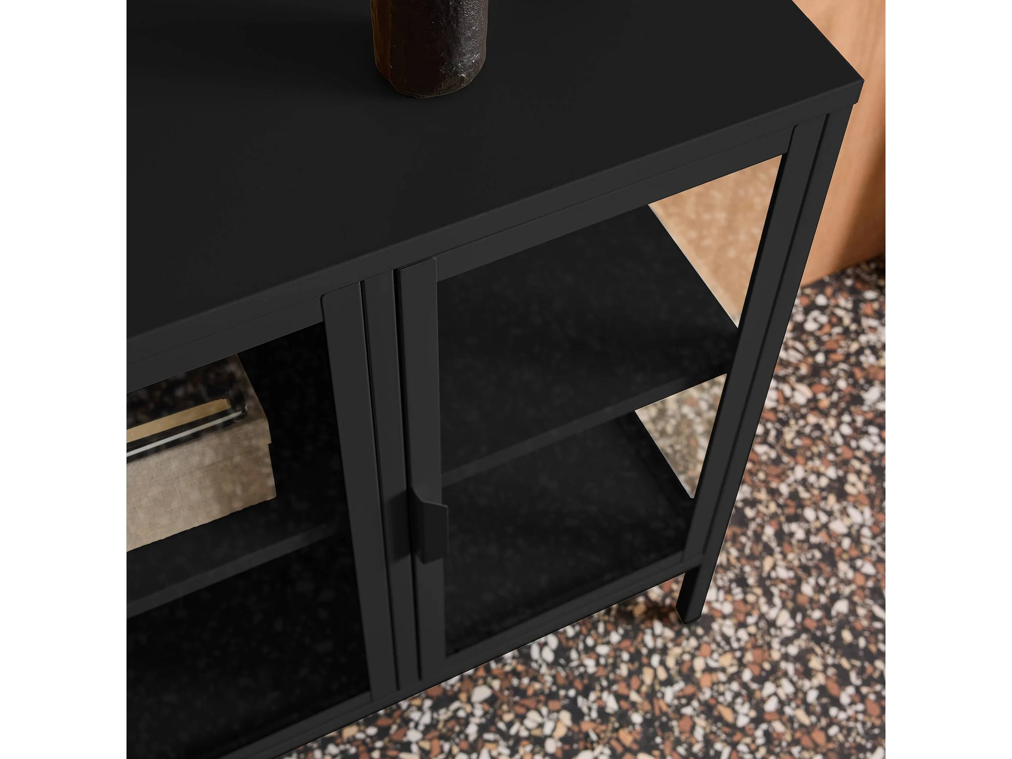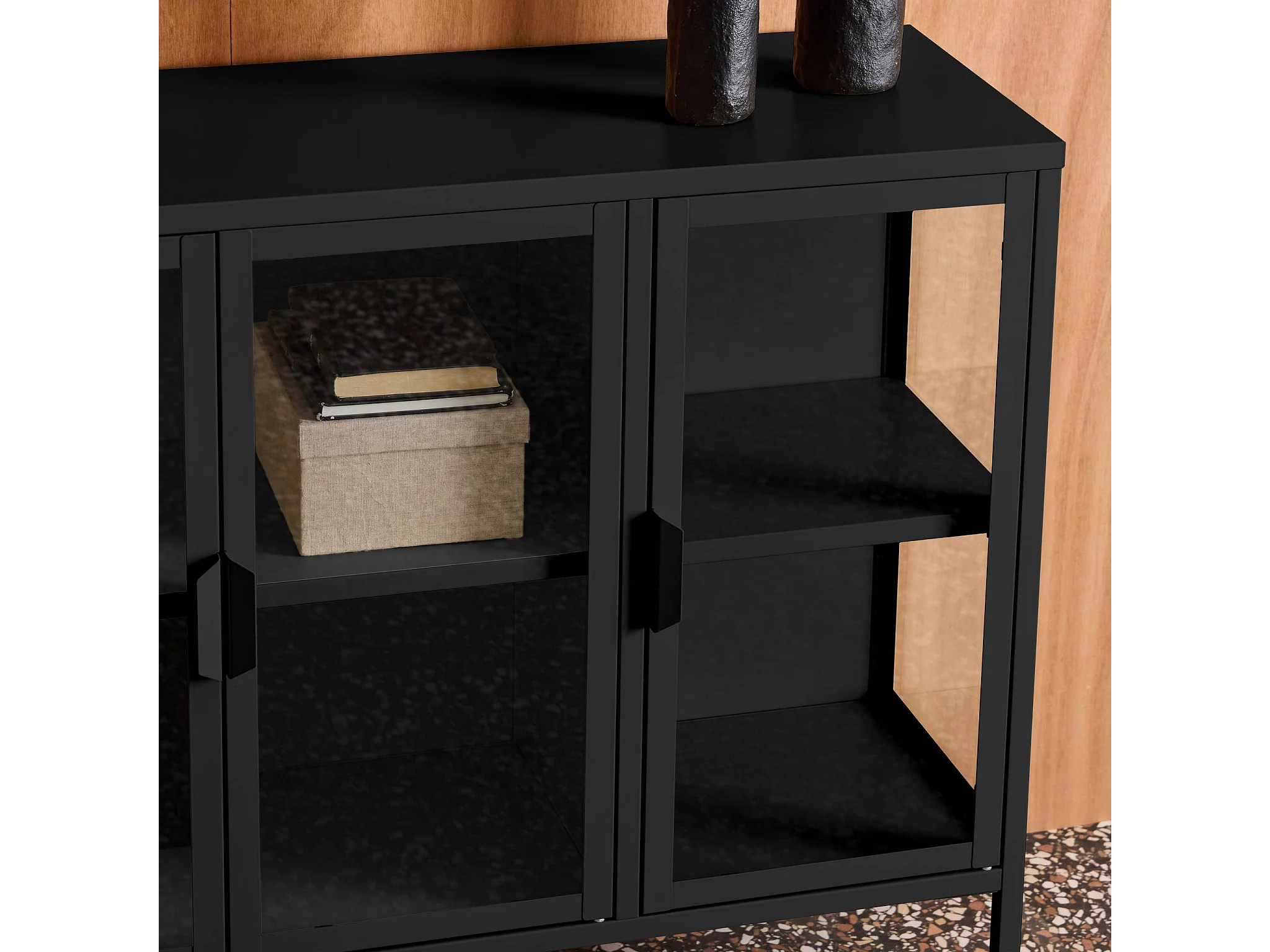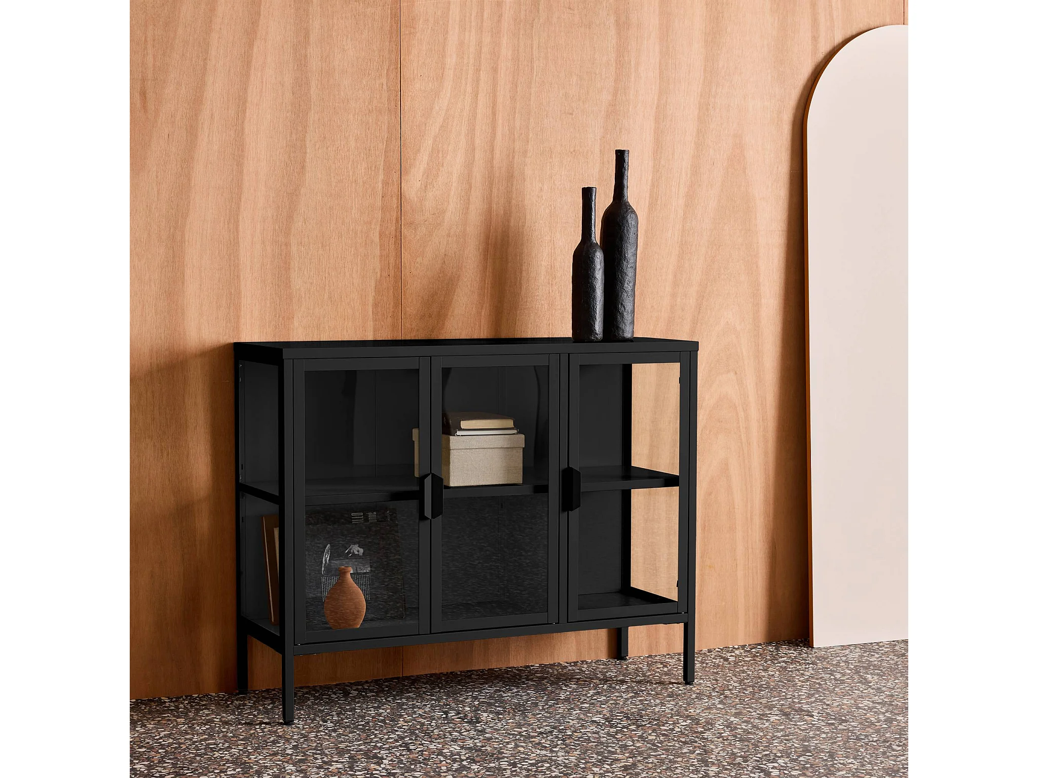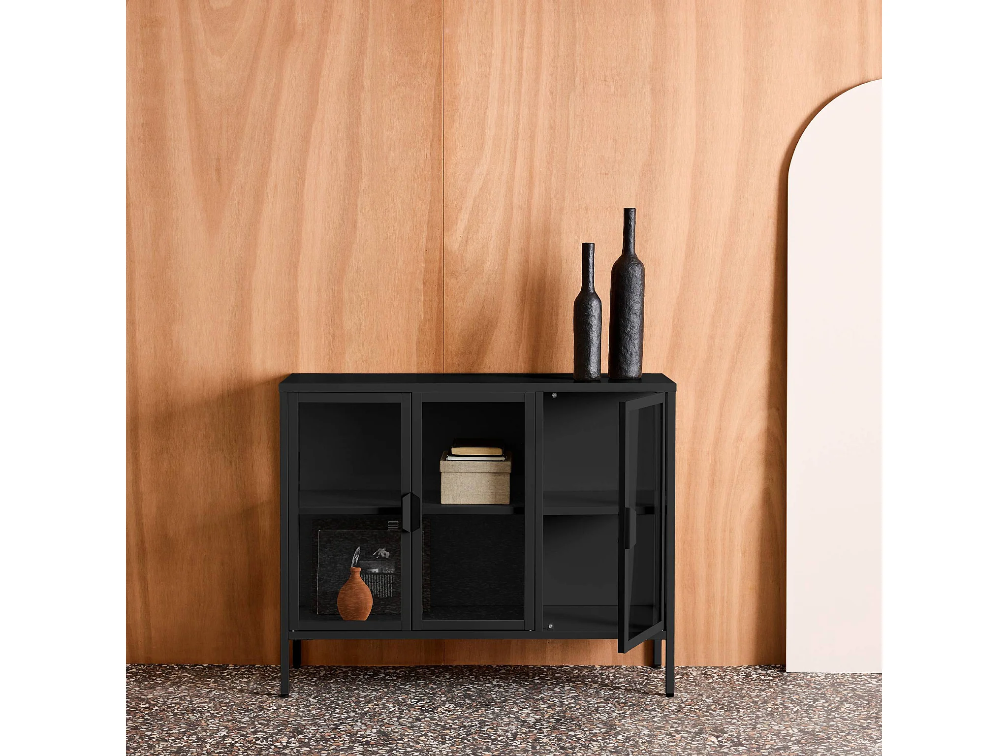 Aparador industrial de metal y vidrio templado 3 puertas, 100cm