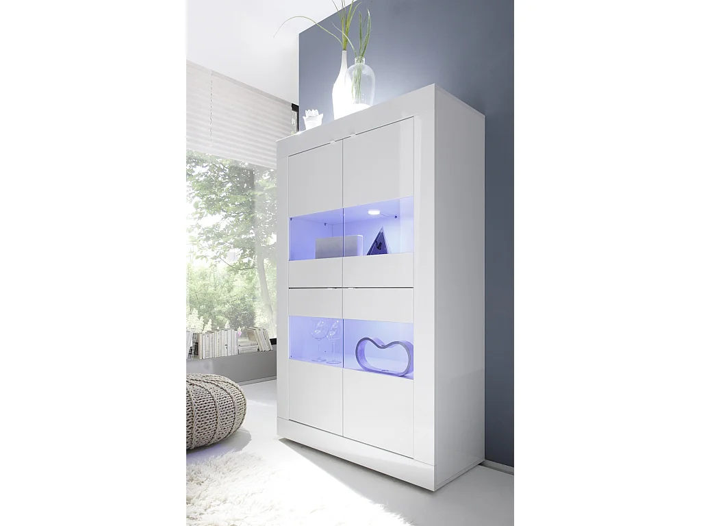 Aparador con 4 puertas en madera laminada blanca 200x43 cm