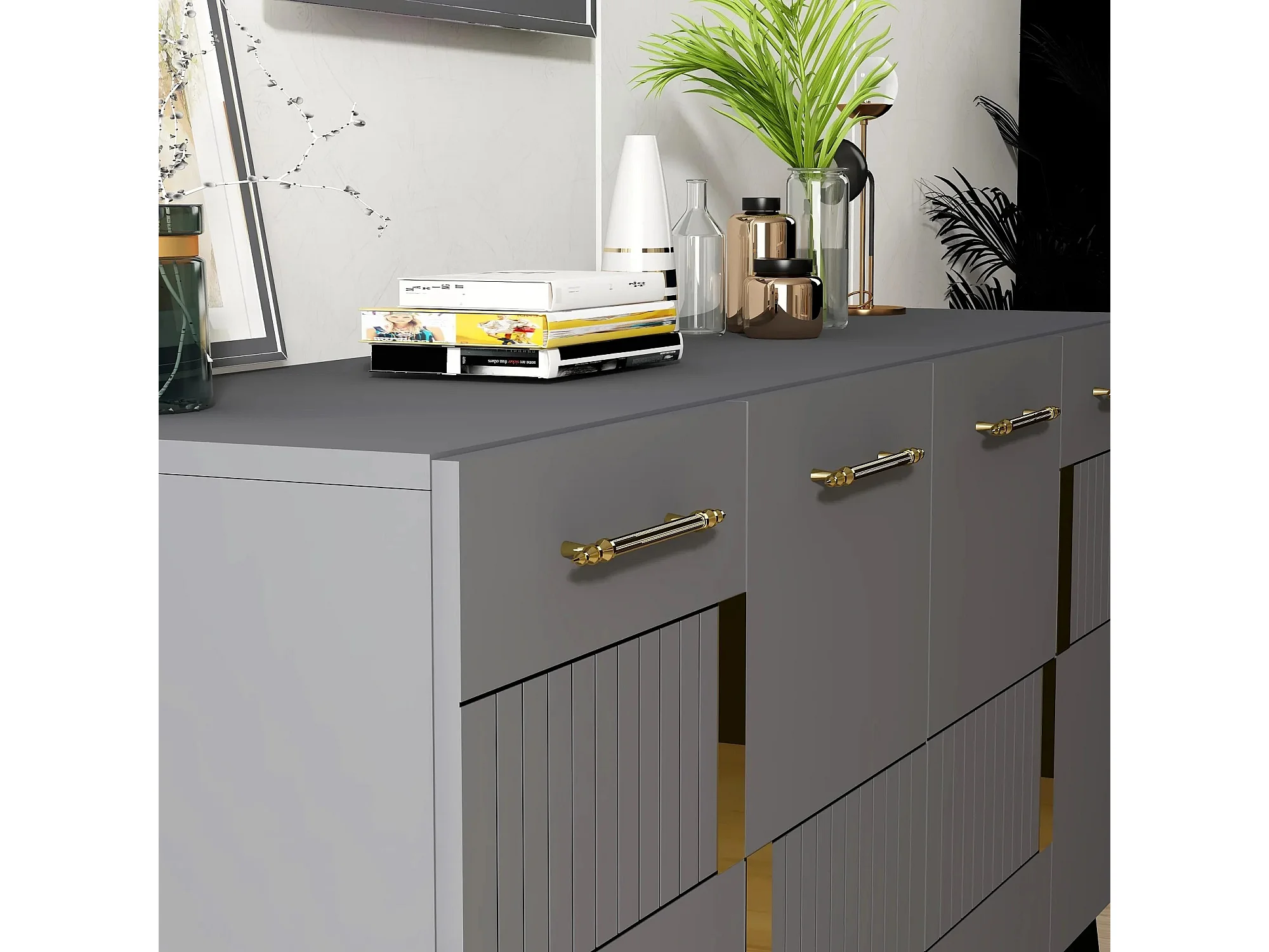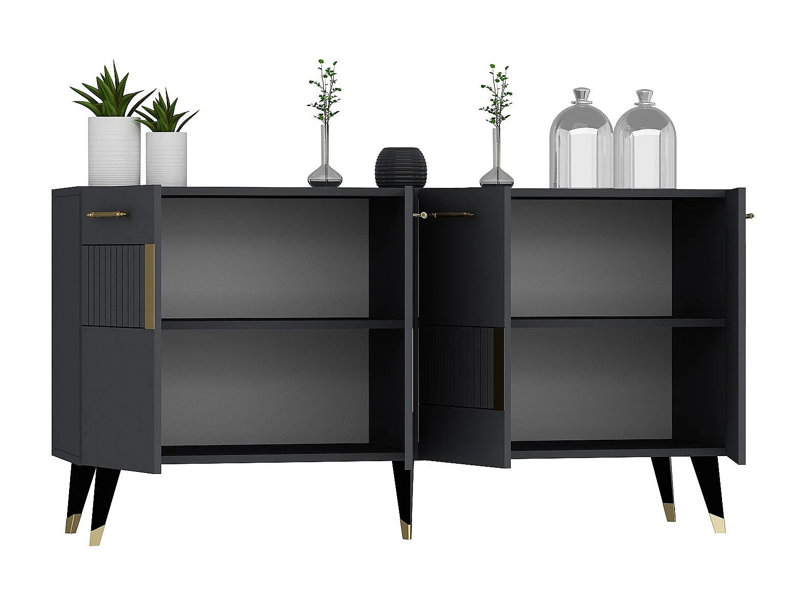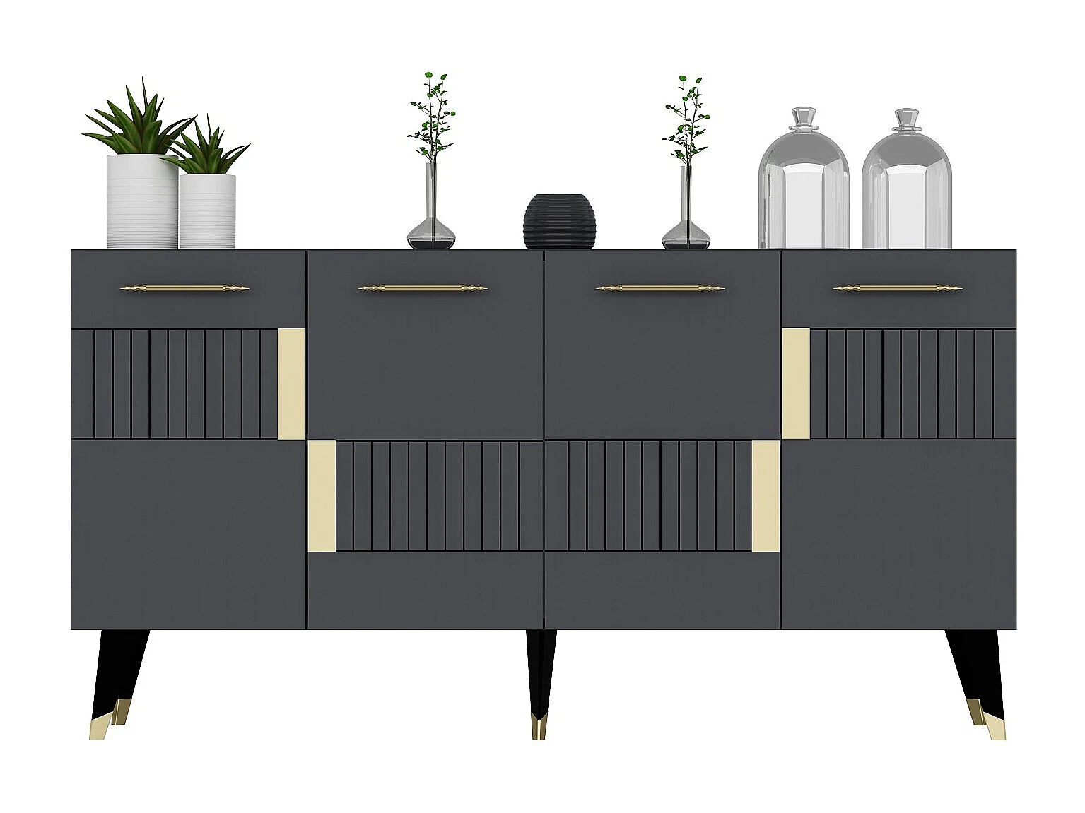Aparador Kailua 1868, Antracita|Negro|Plata, 80x150x40cm, Aglomerado laminado