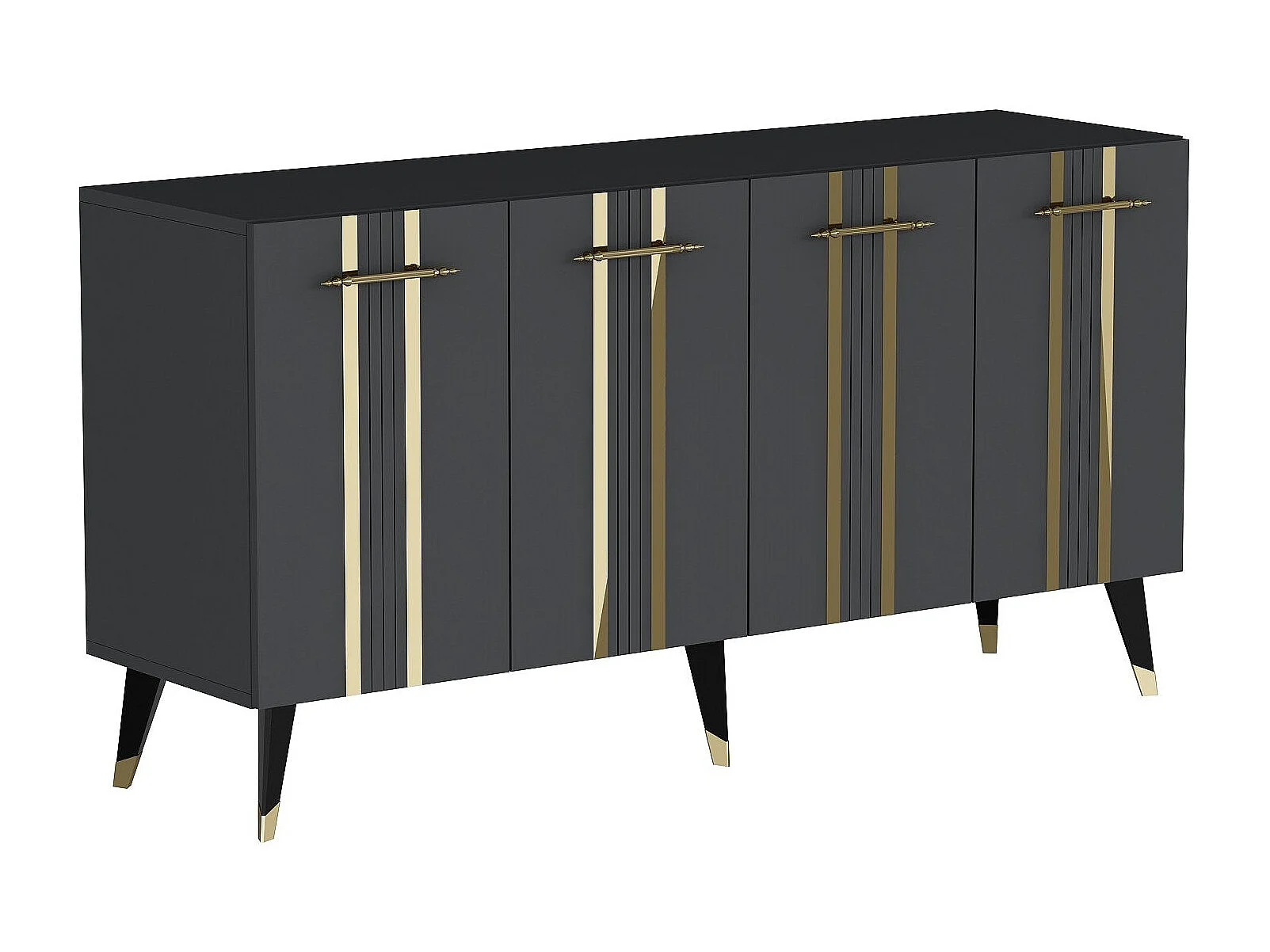 Aparador Kailua 1868, Antracita|Negro|Plata, 80x150x40cm, Aglomerado laminado