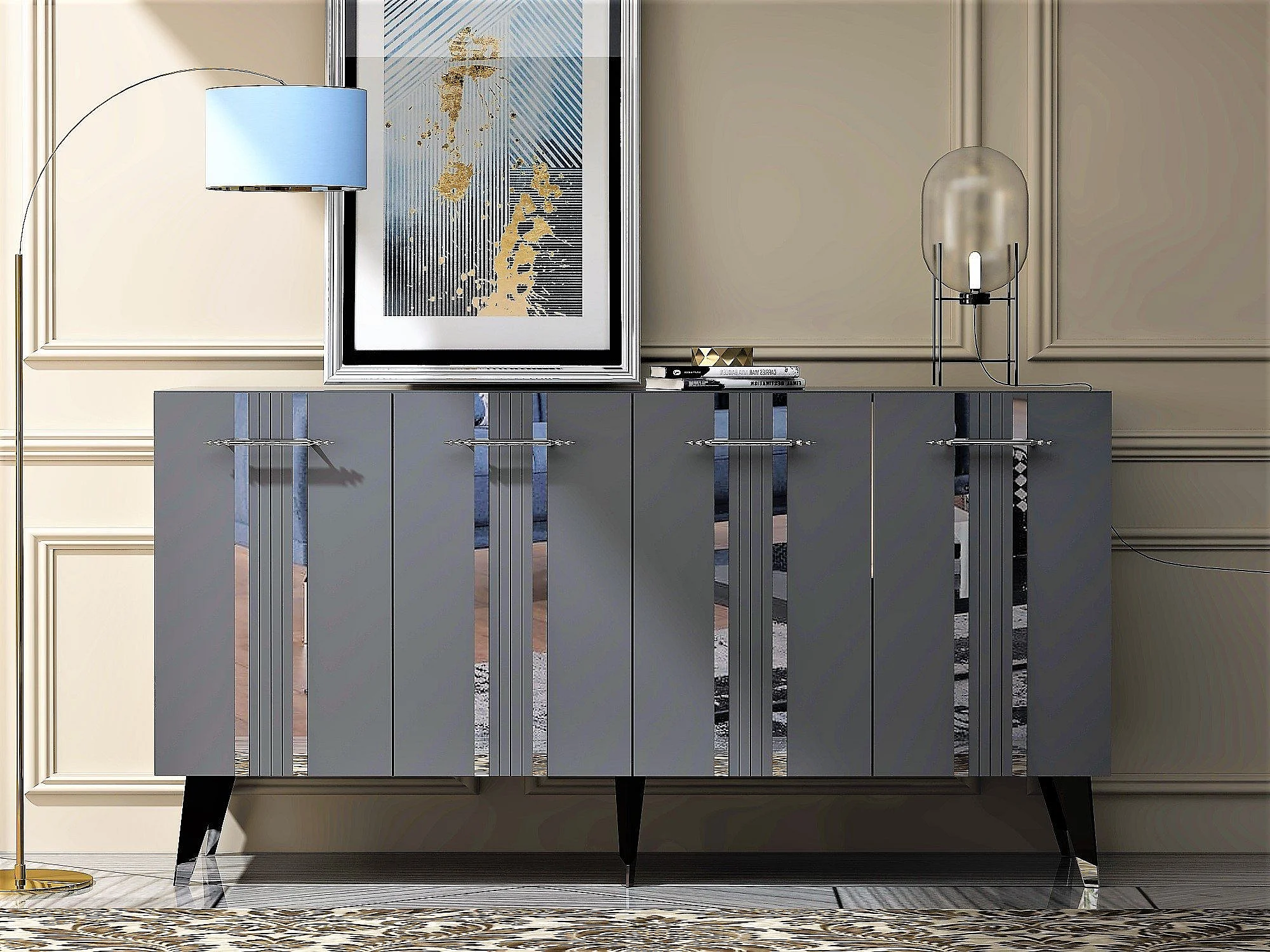 Aparador Luxe Antracita Plata 160x35x80 cm