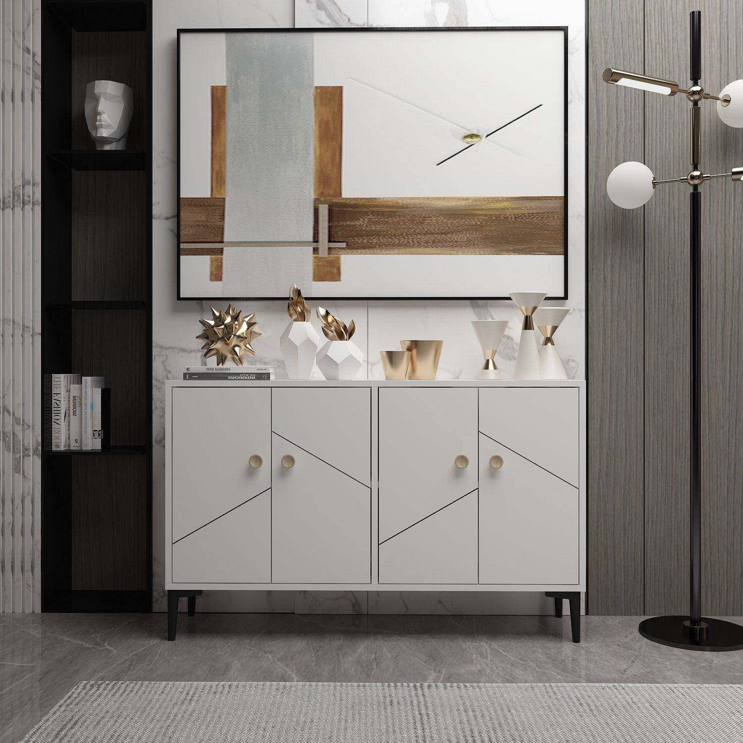 Aparador Moderno 120 x 30 x 80 cm - Aparador Estilo Minimalista con 4 Puertas para Comedor, Salón, Cocina - Blanco