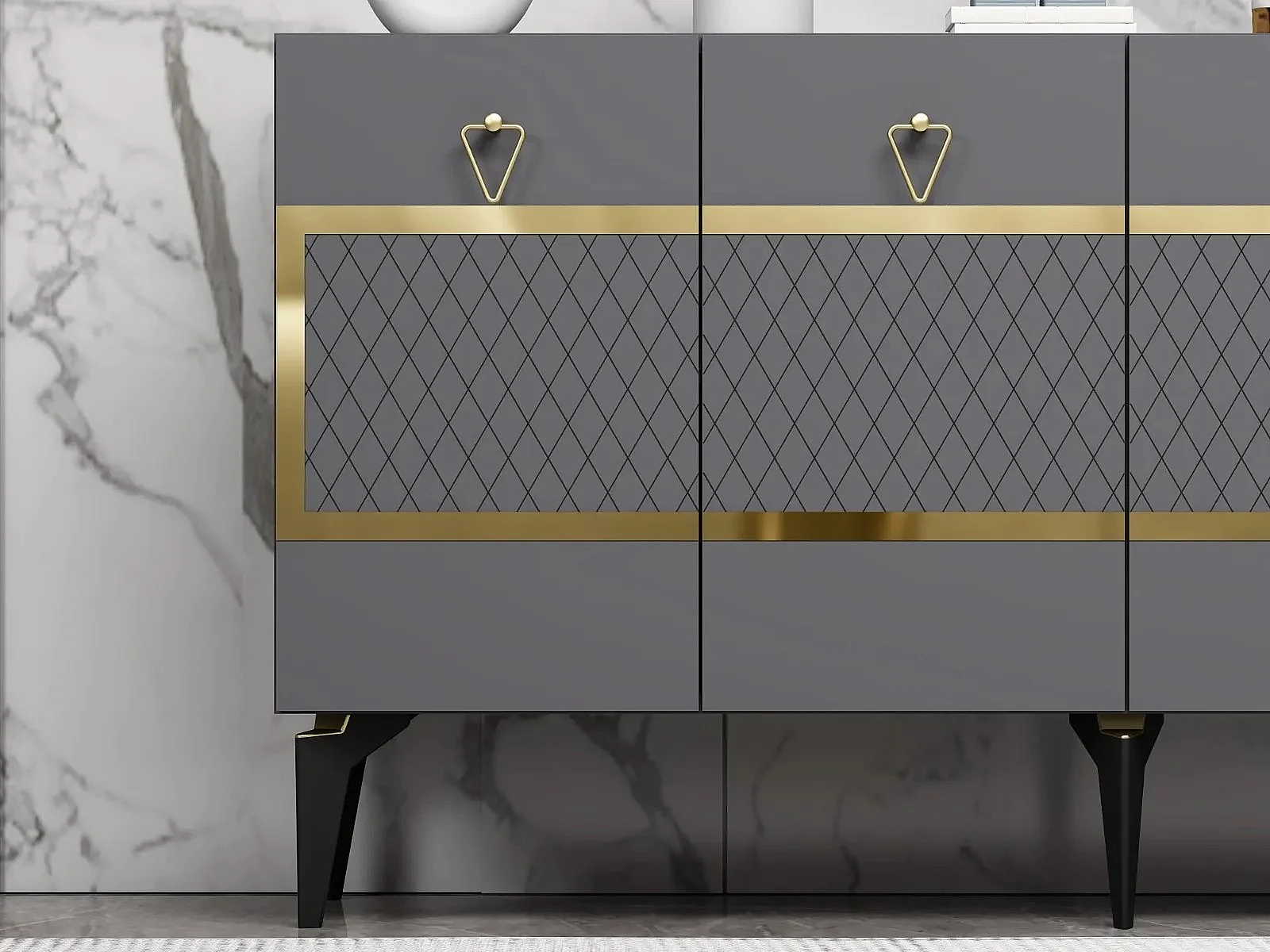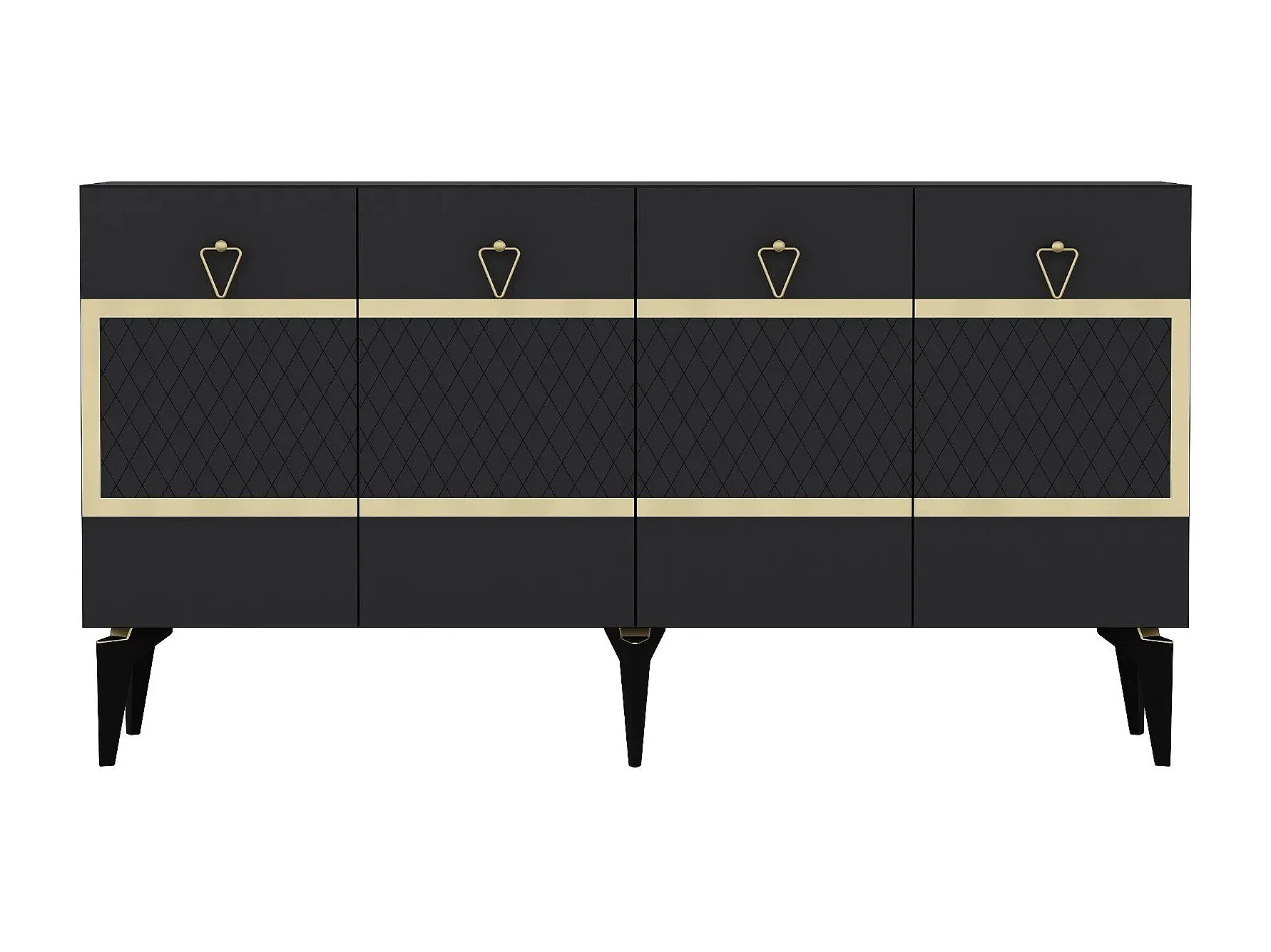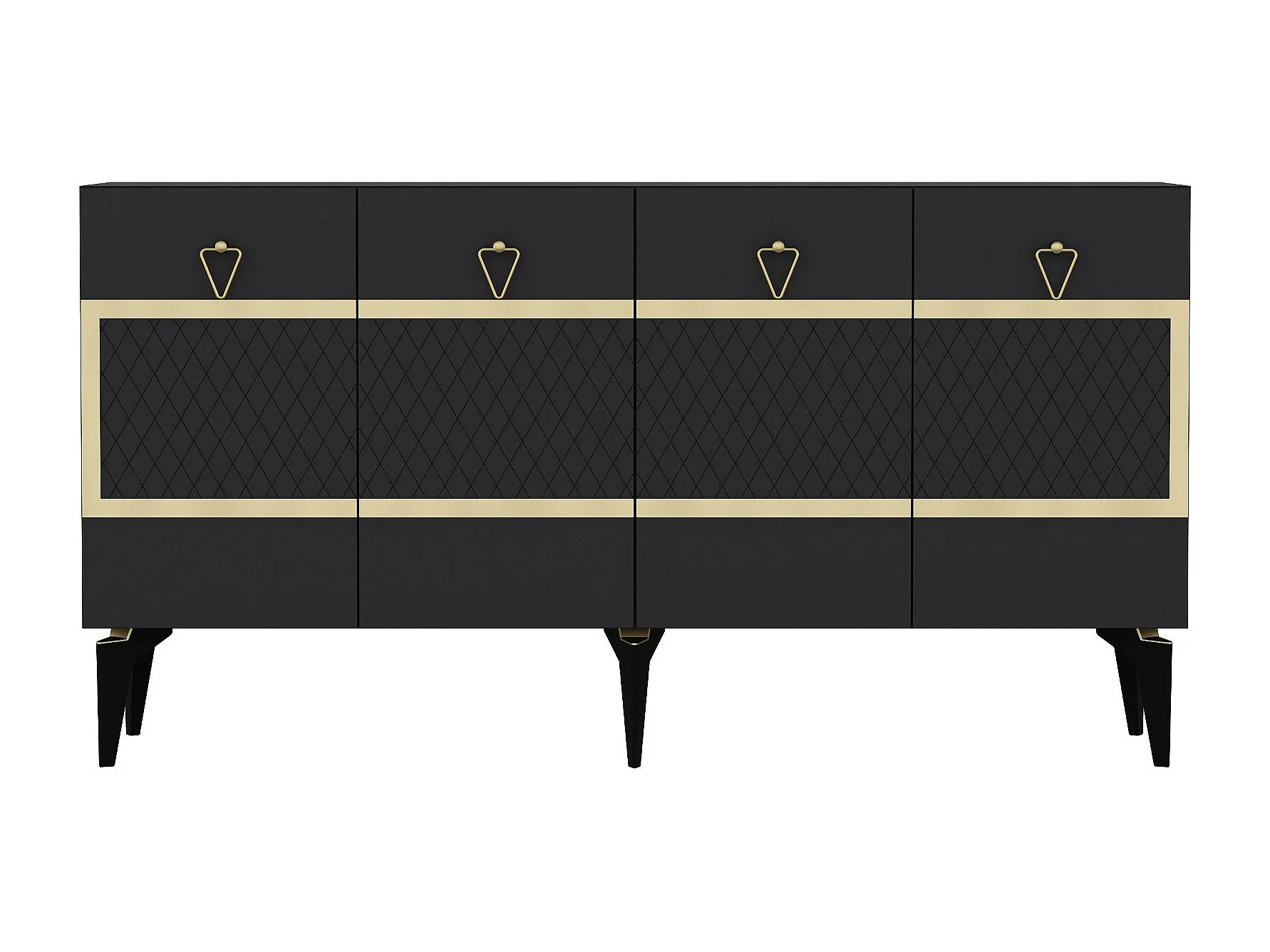 Aparador Kailua 1868, Antracita|Negro|Plata, 80x150x40cm, Aglomerado laminado