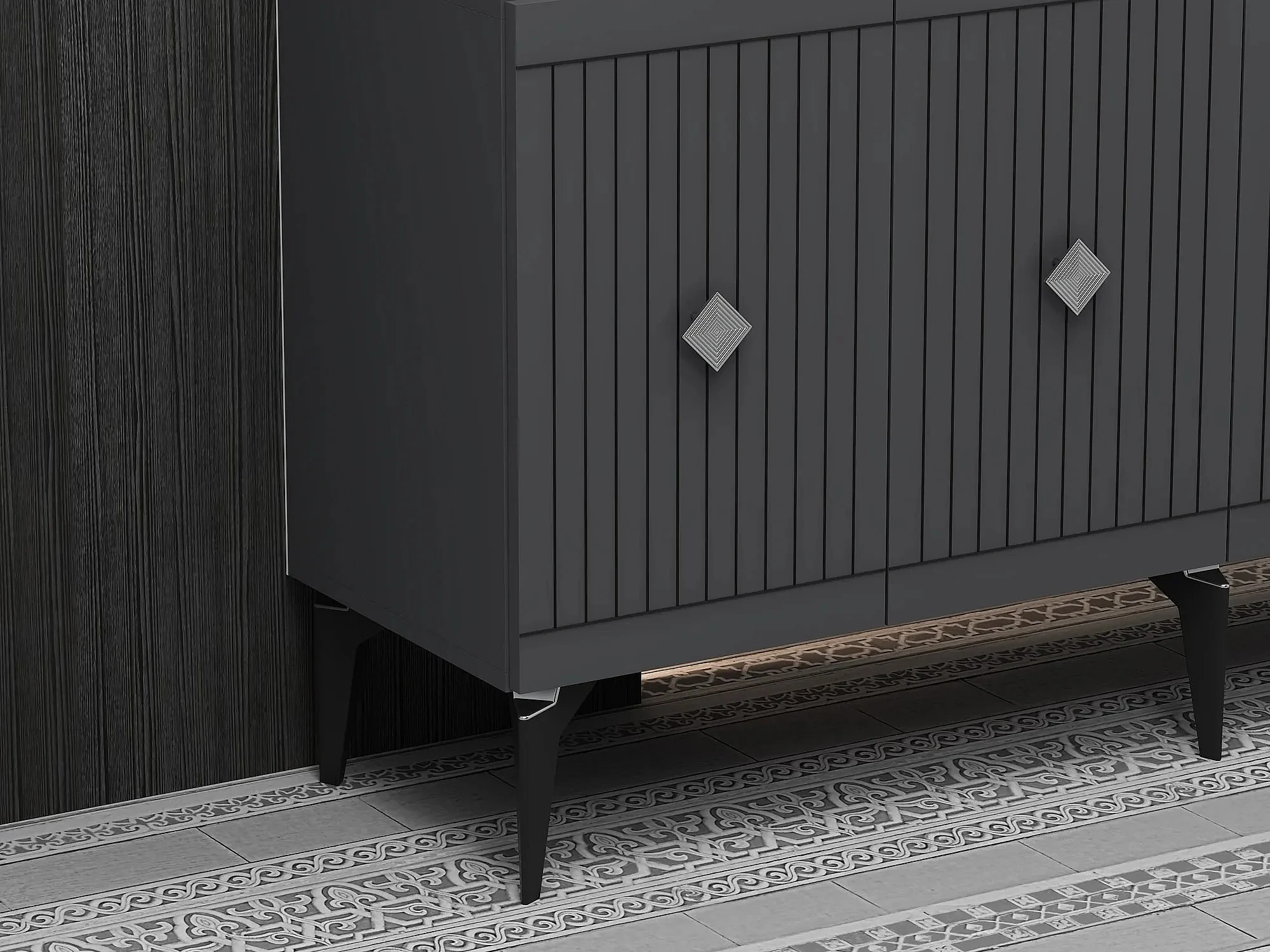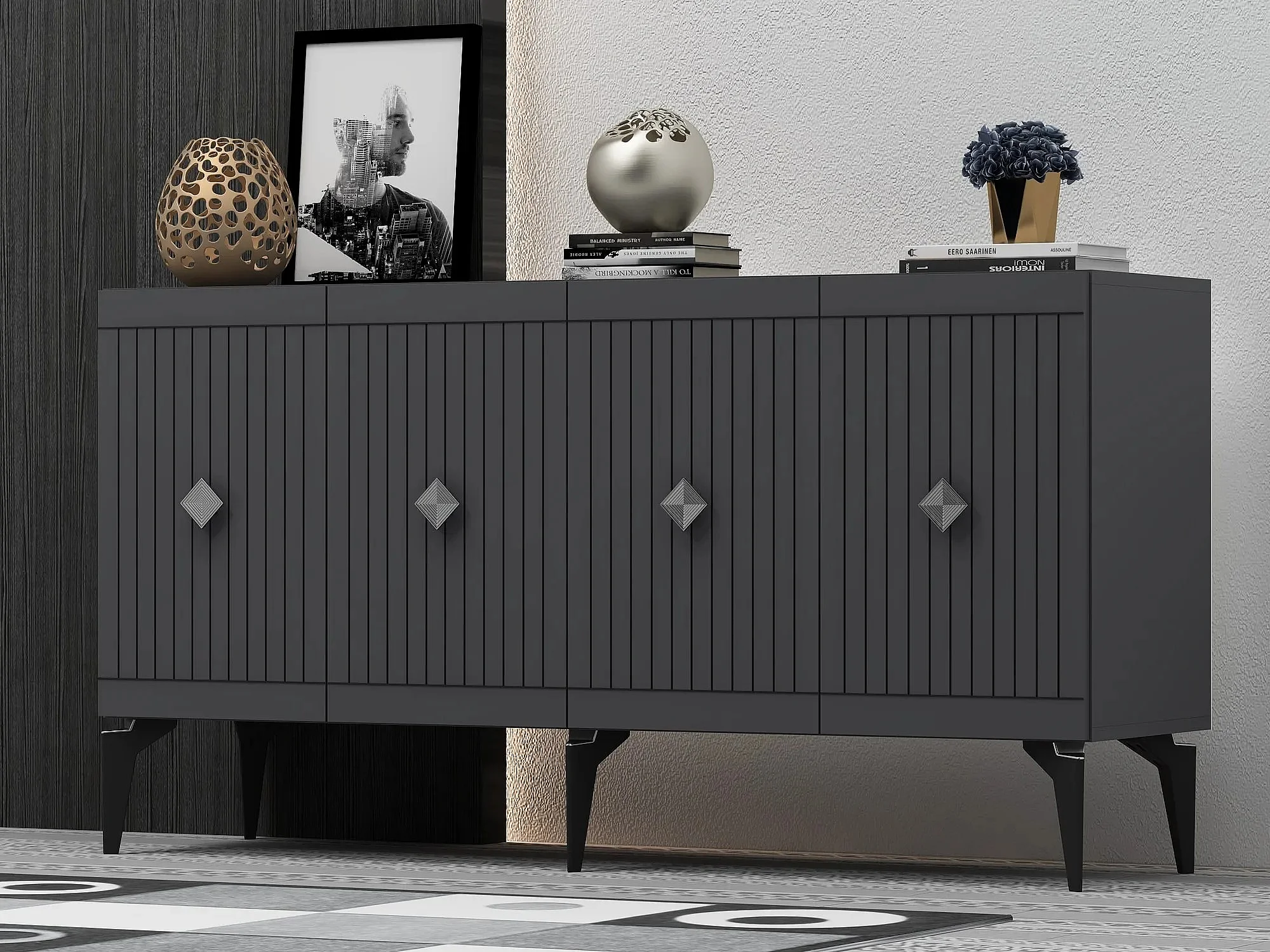Aparador Kailua 1868, Antracita|Negro|Plata, 80x150x40cm, Aglomerado laminado