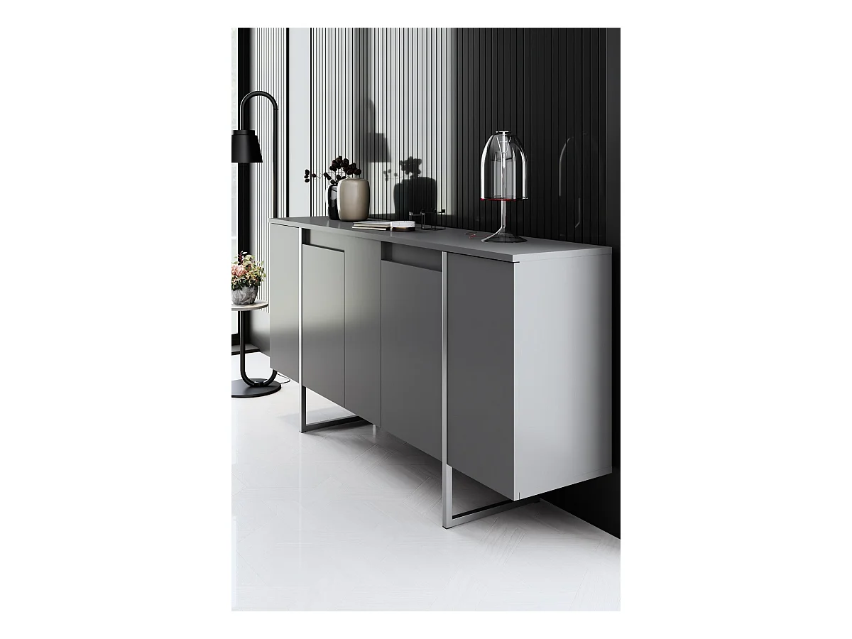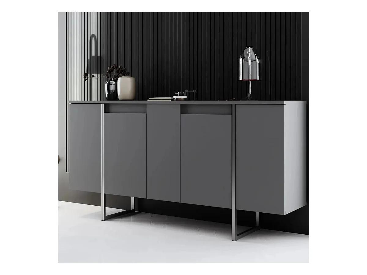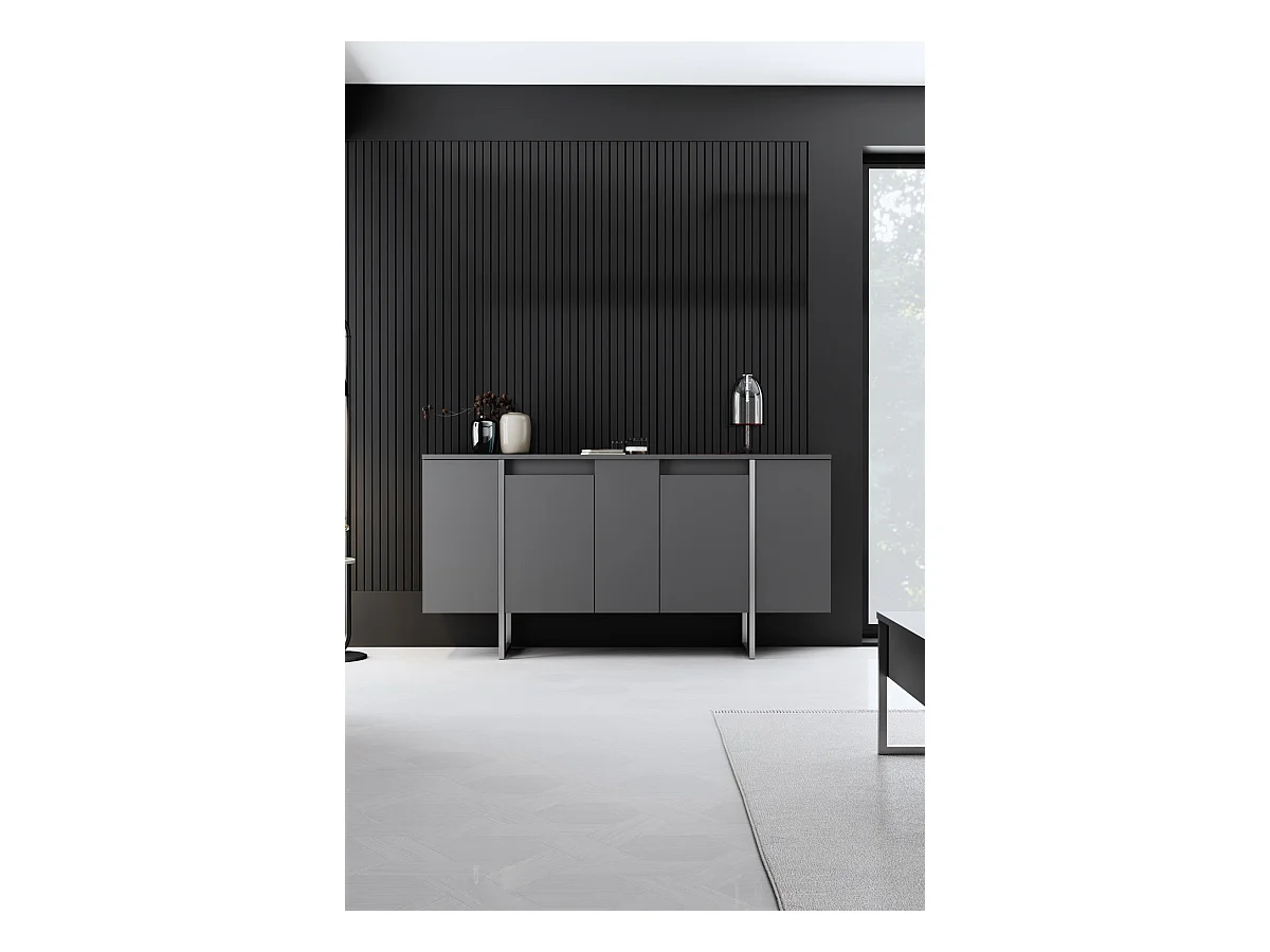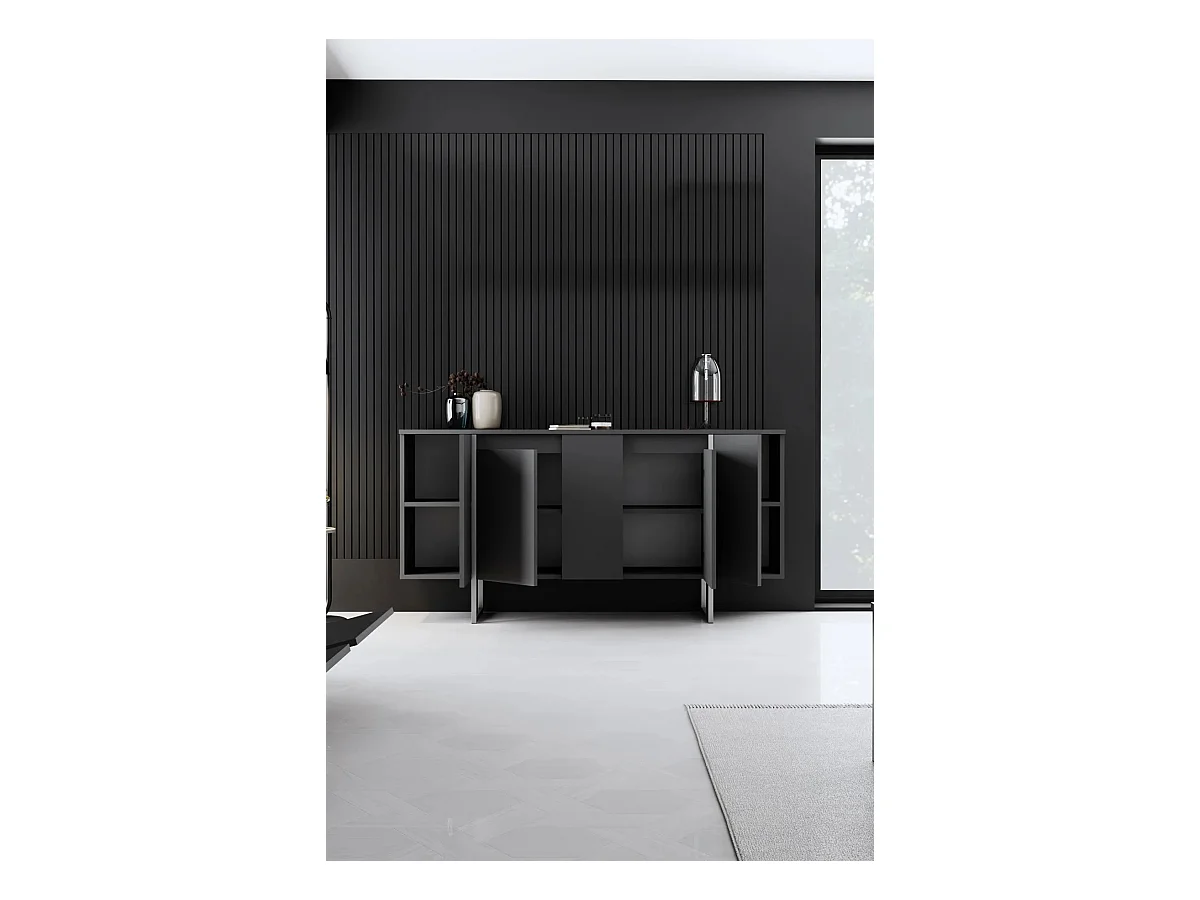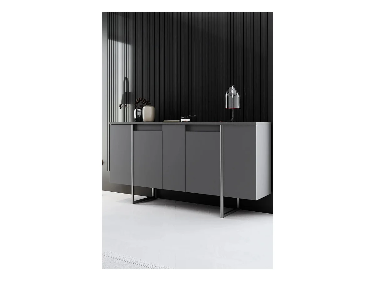 Aparador Kailua 1868, Antracita|Negro|Plata, 80x150x40cm, Aglomerado laminado