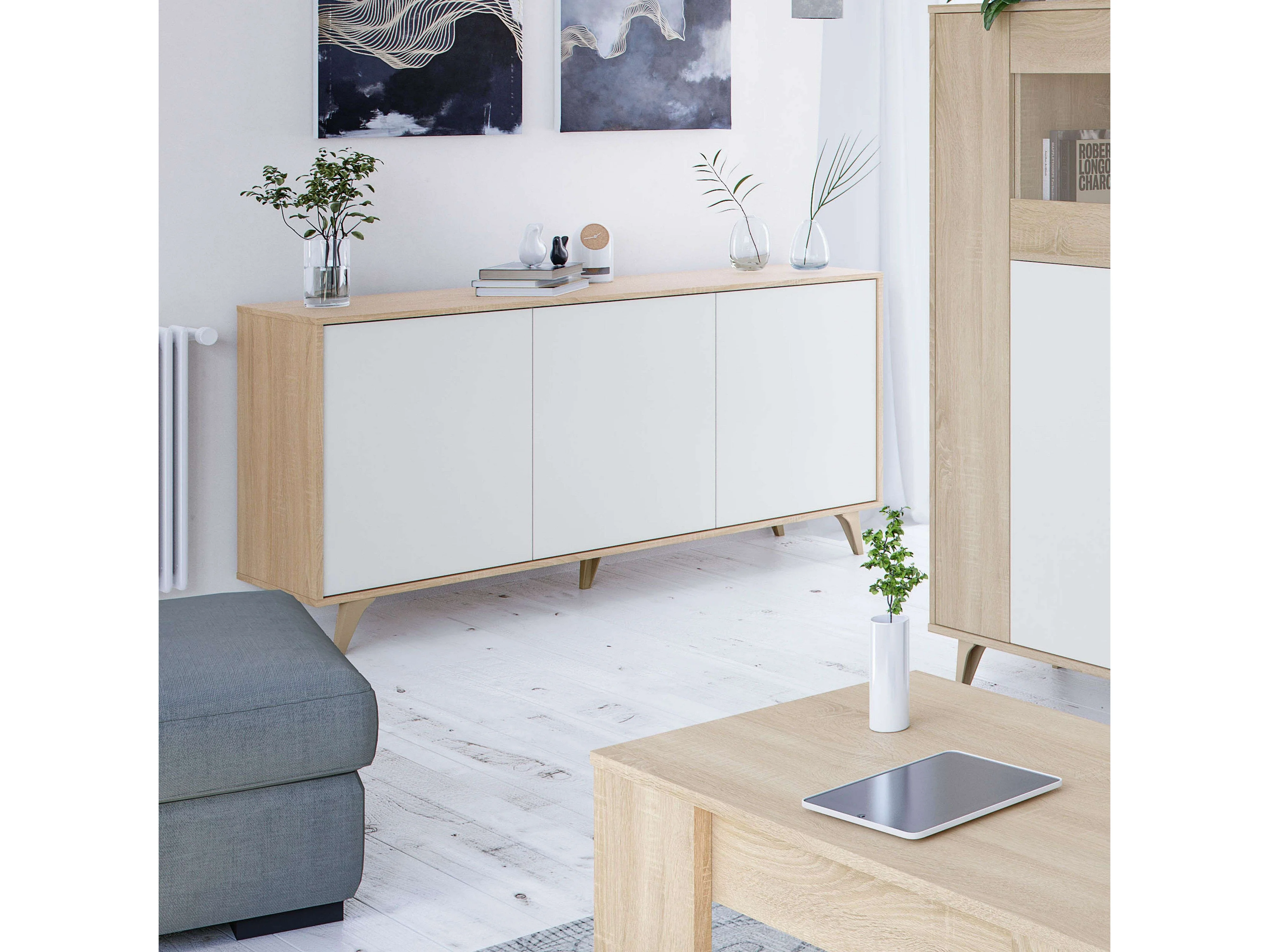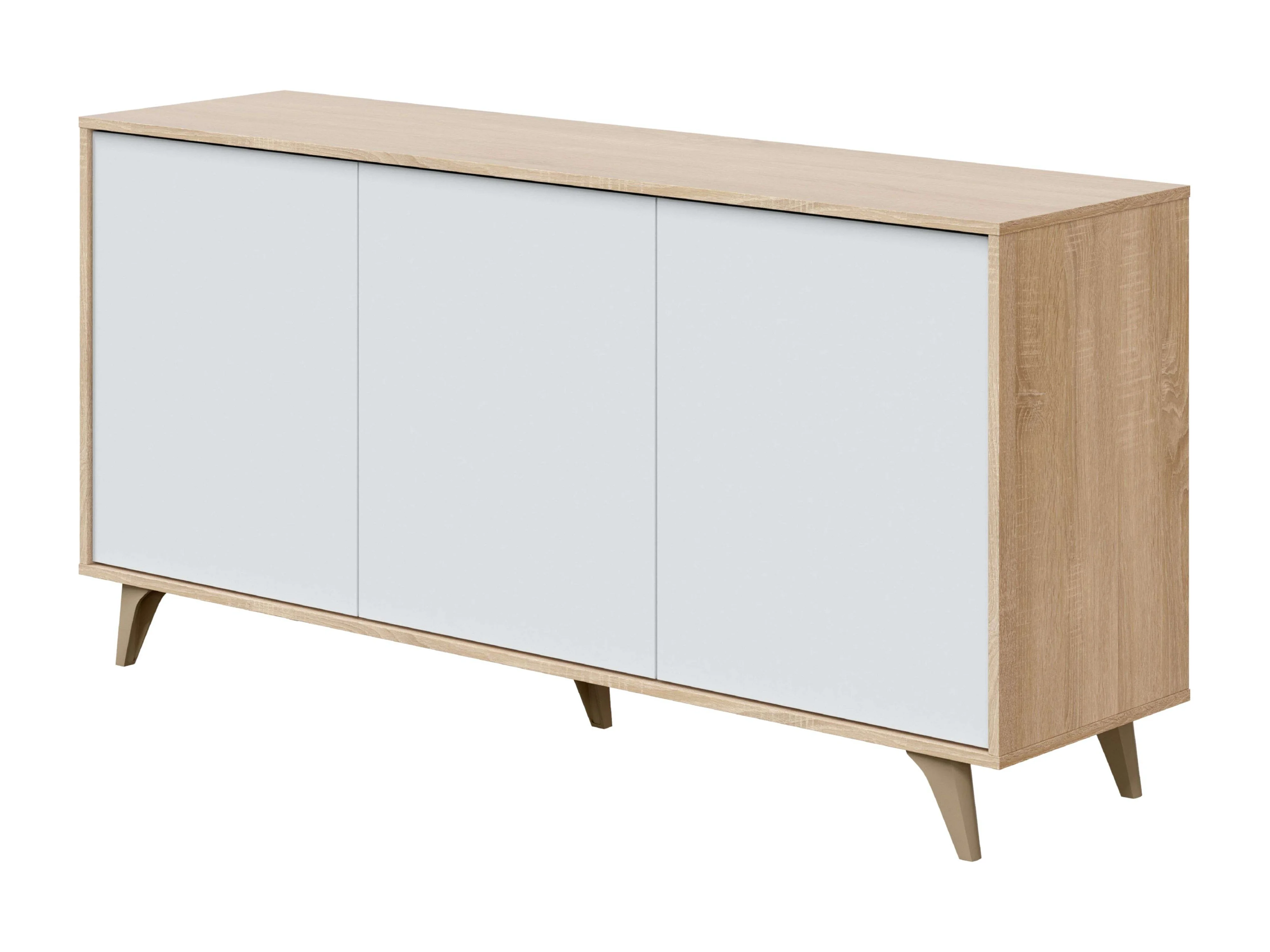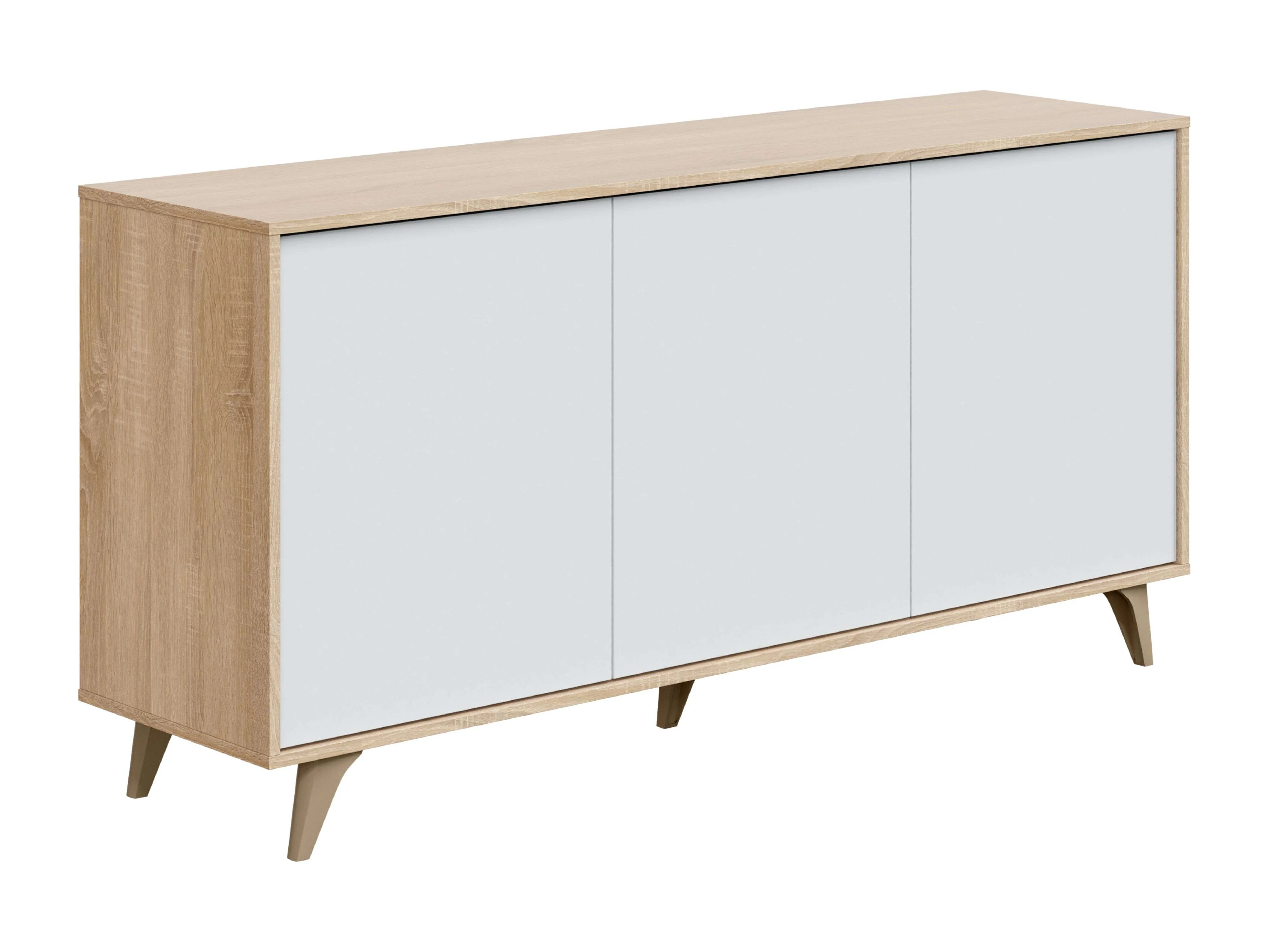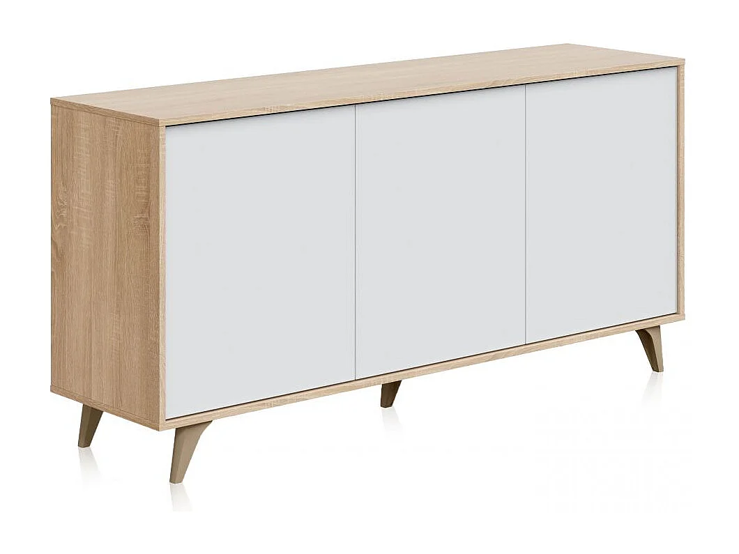 Aparador Kikua 3 puertas roble canadian y blanco artik, 75x154x40 cm