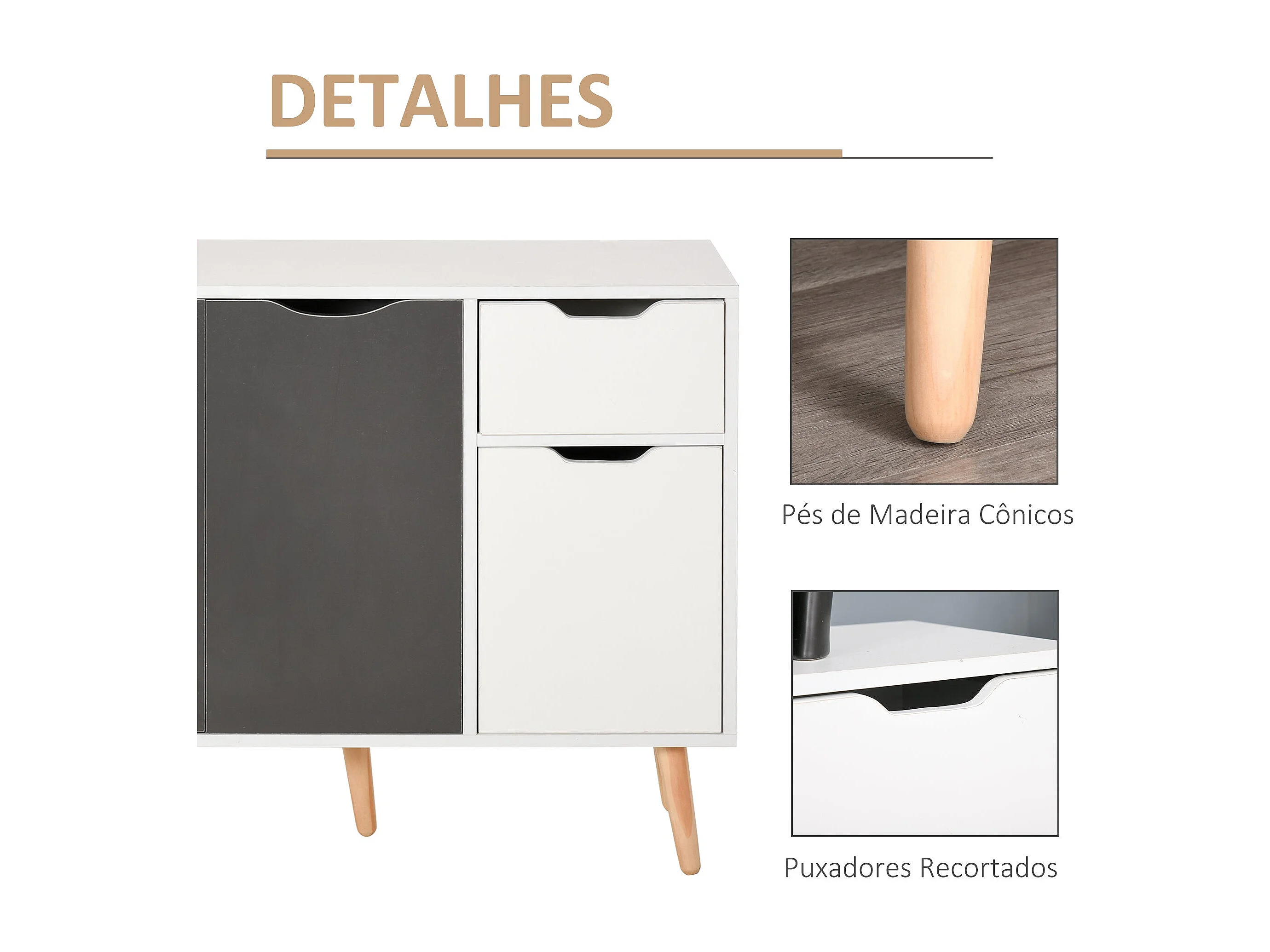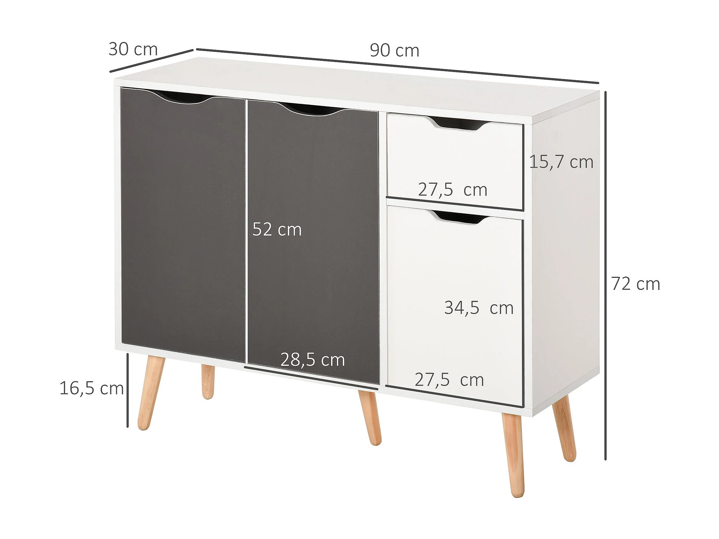 Aparador Kiwi Homcom 3 puertas + cajón blanco/gris 72x90x30 cm