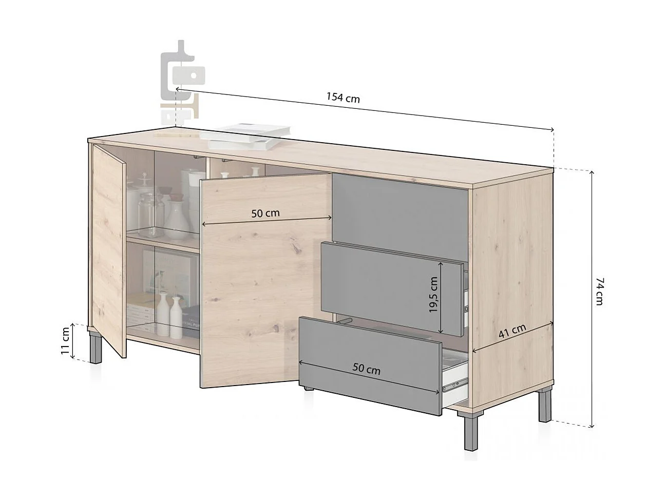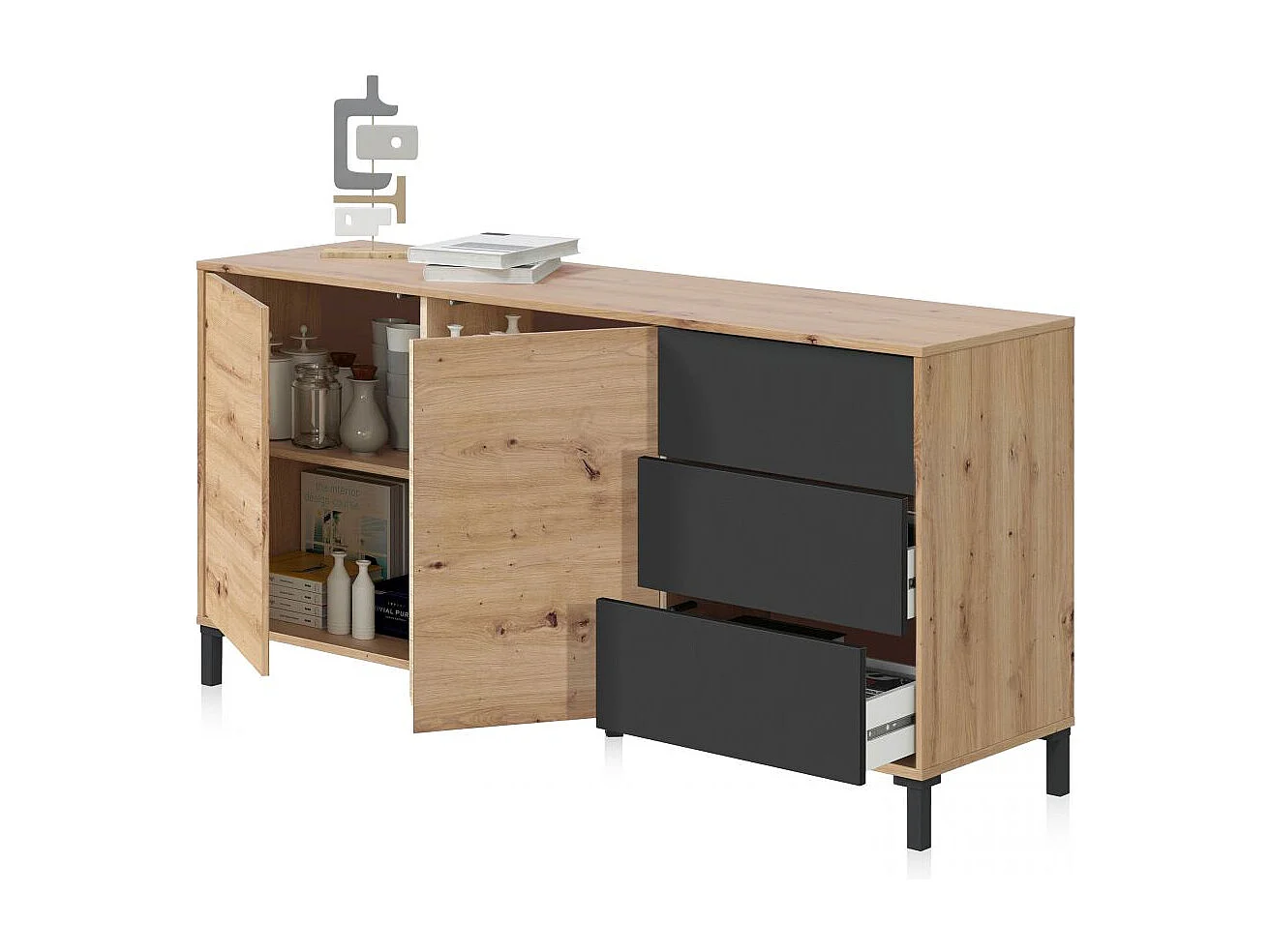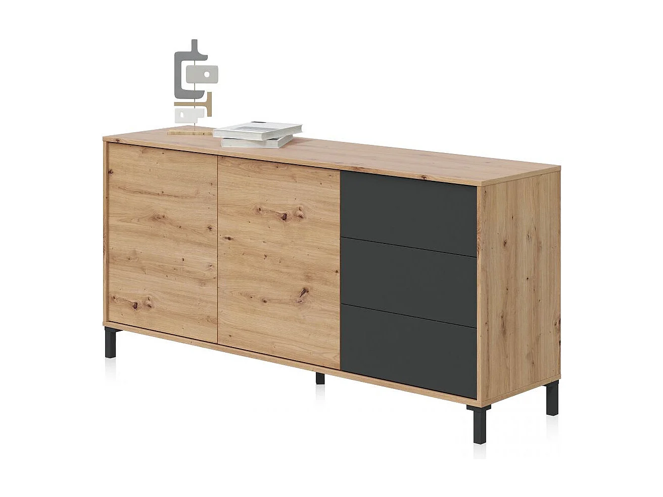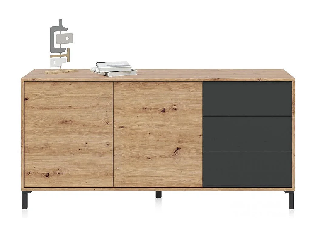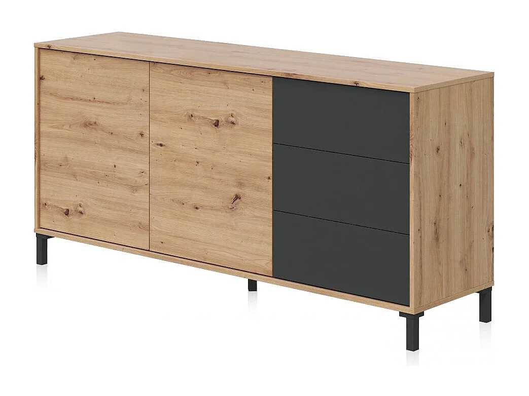 Aparador con gran espacio de almacenamiento en gris antracita y roble nodi 154 cm Lea Gris Antracita - Roble Nodi