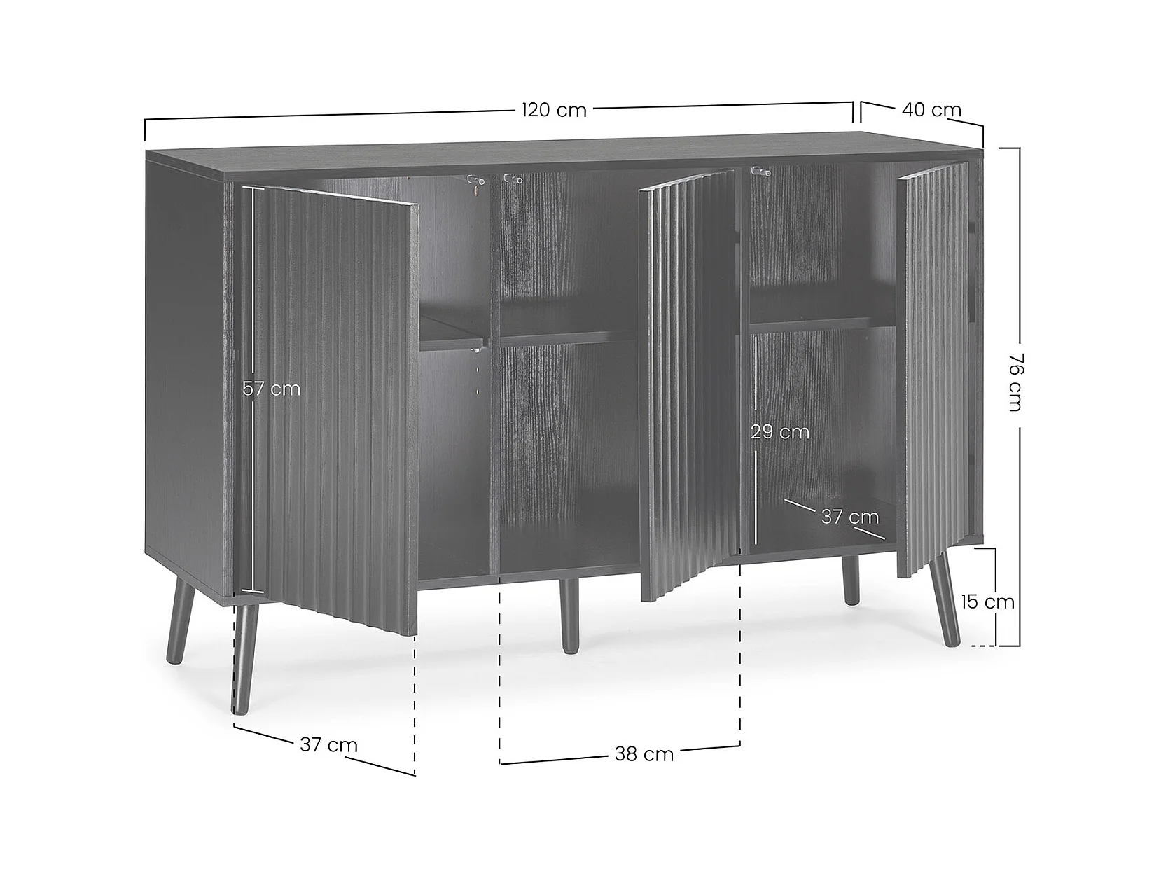 Aparador Kalma 3 puertas color negro/roble, 136 cm Ancho