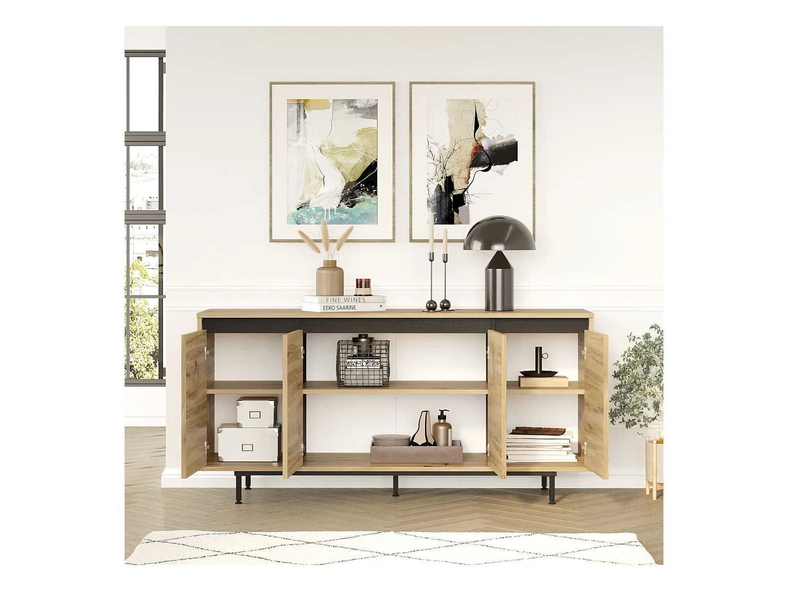 Aparador Luvio Con 4 Puertas - Patas De Metal 160 Cm Negro