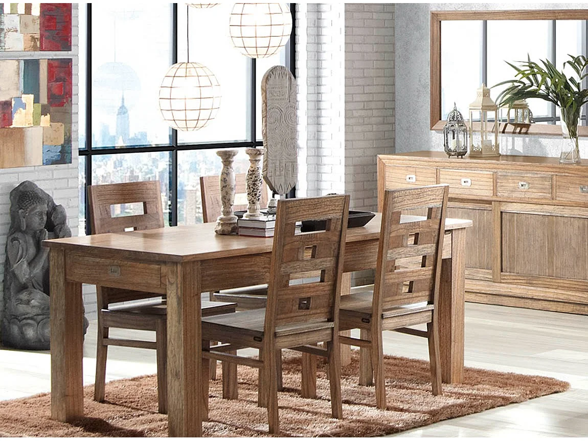 Aparador Mindy madera maciza natural 2 puertas correderas 4 cajones Mazari 200 cm