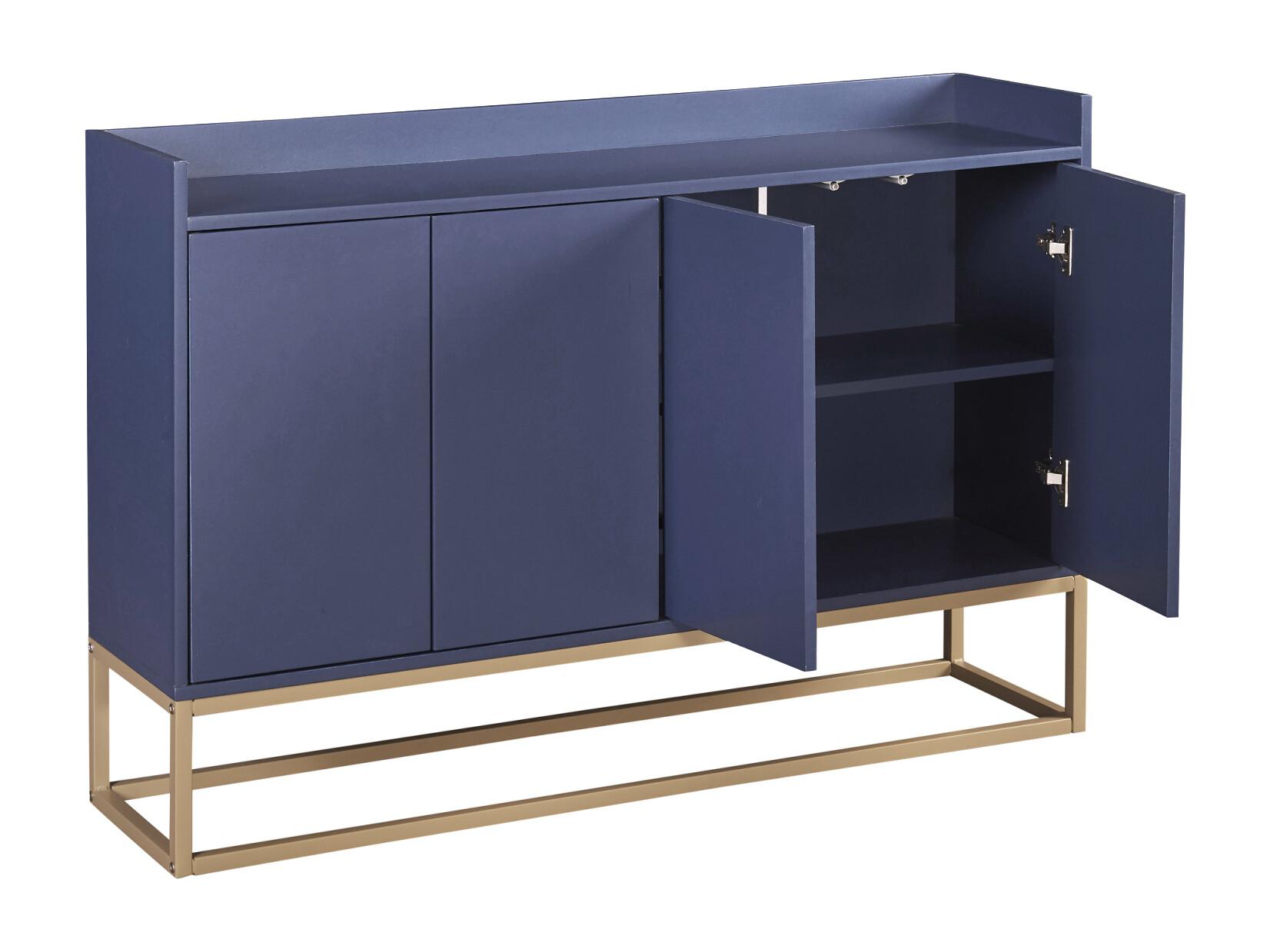 Aparador moderno 120x30 cm, cómoda con puertas, mueble de almacenaje, aparador sin tiradores, color azul