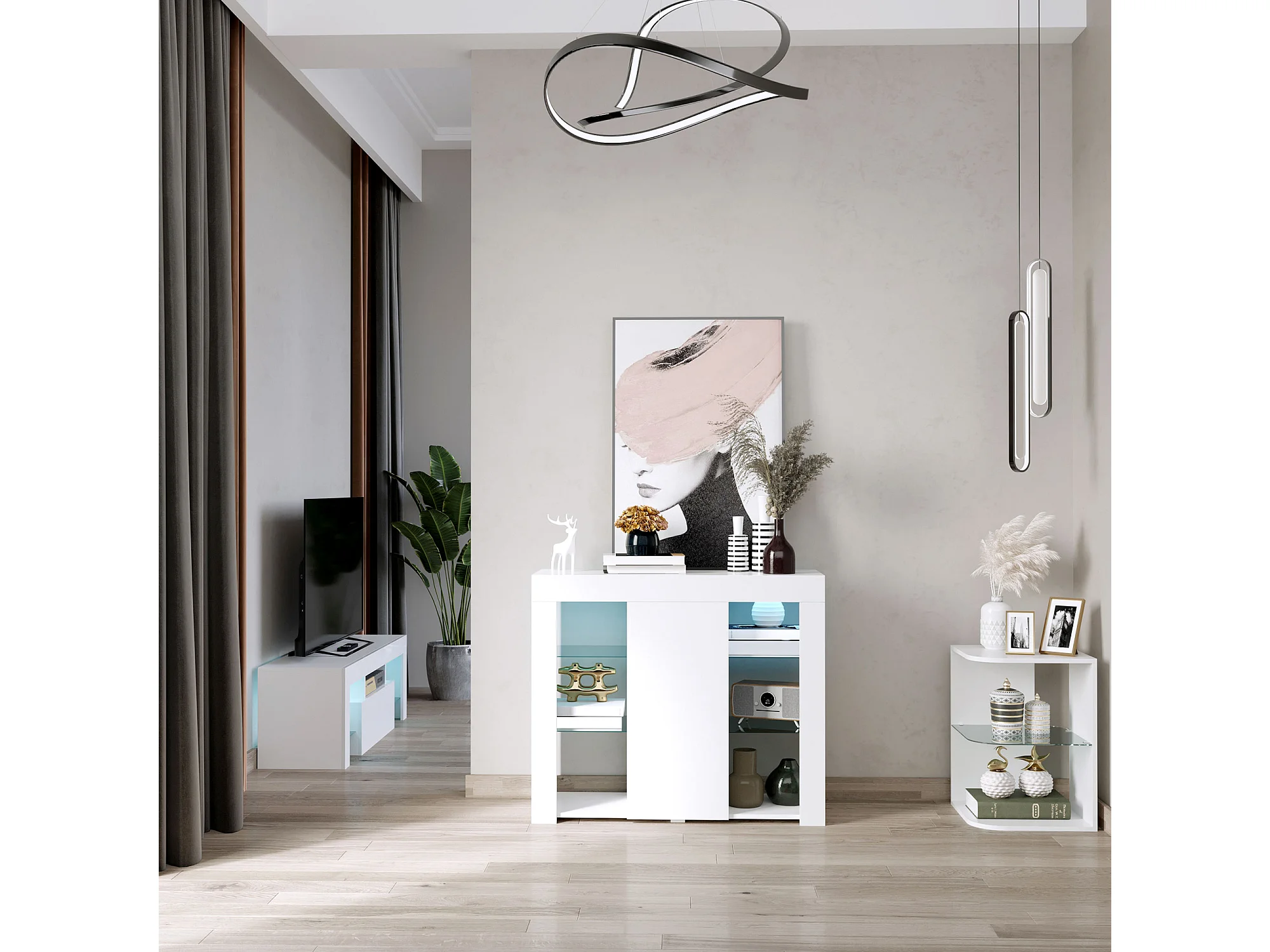 Vitrina 2 puertas con LED Darrel Blanco lacado y Madera