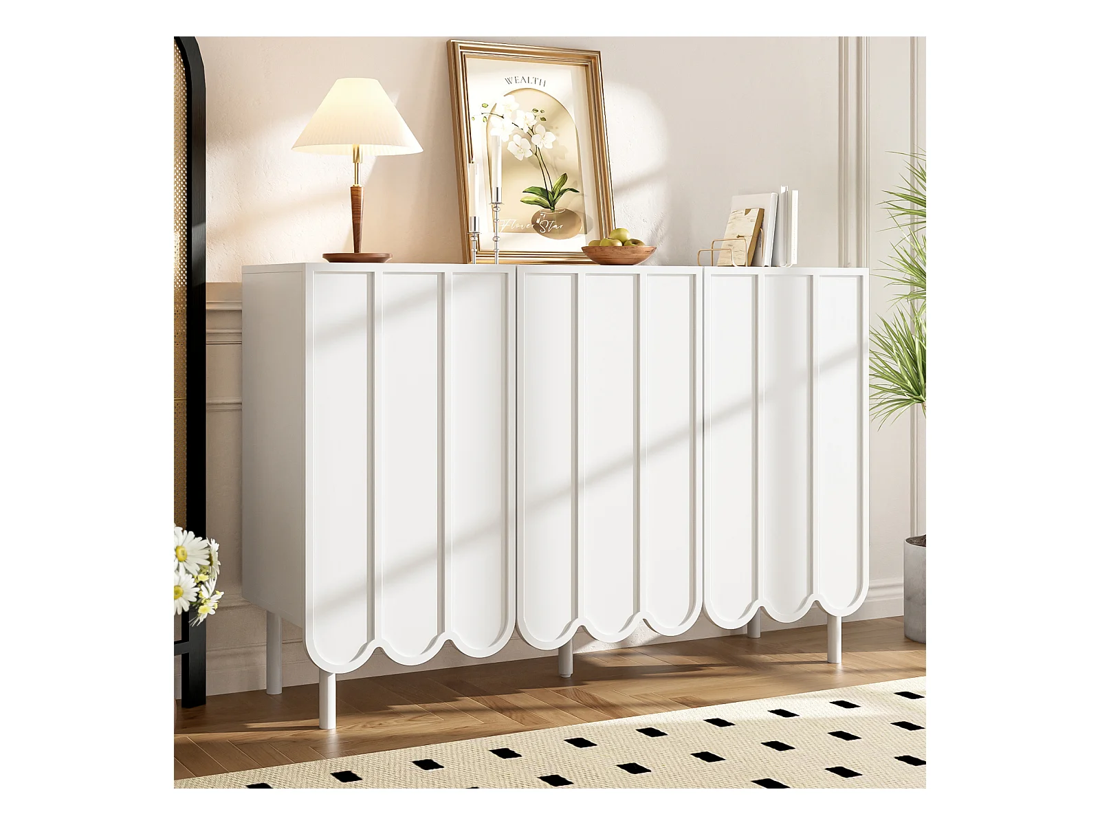 Aparador moderno de madera con puertas onduladas (120 x 35 x 80 cm) para salón, recibidor y comedor, color blanco.