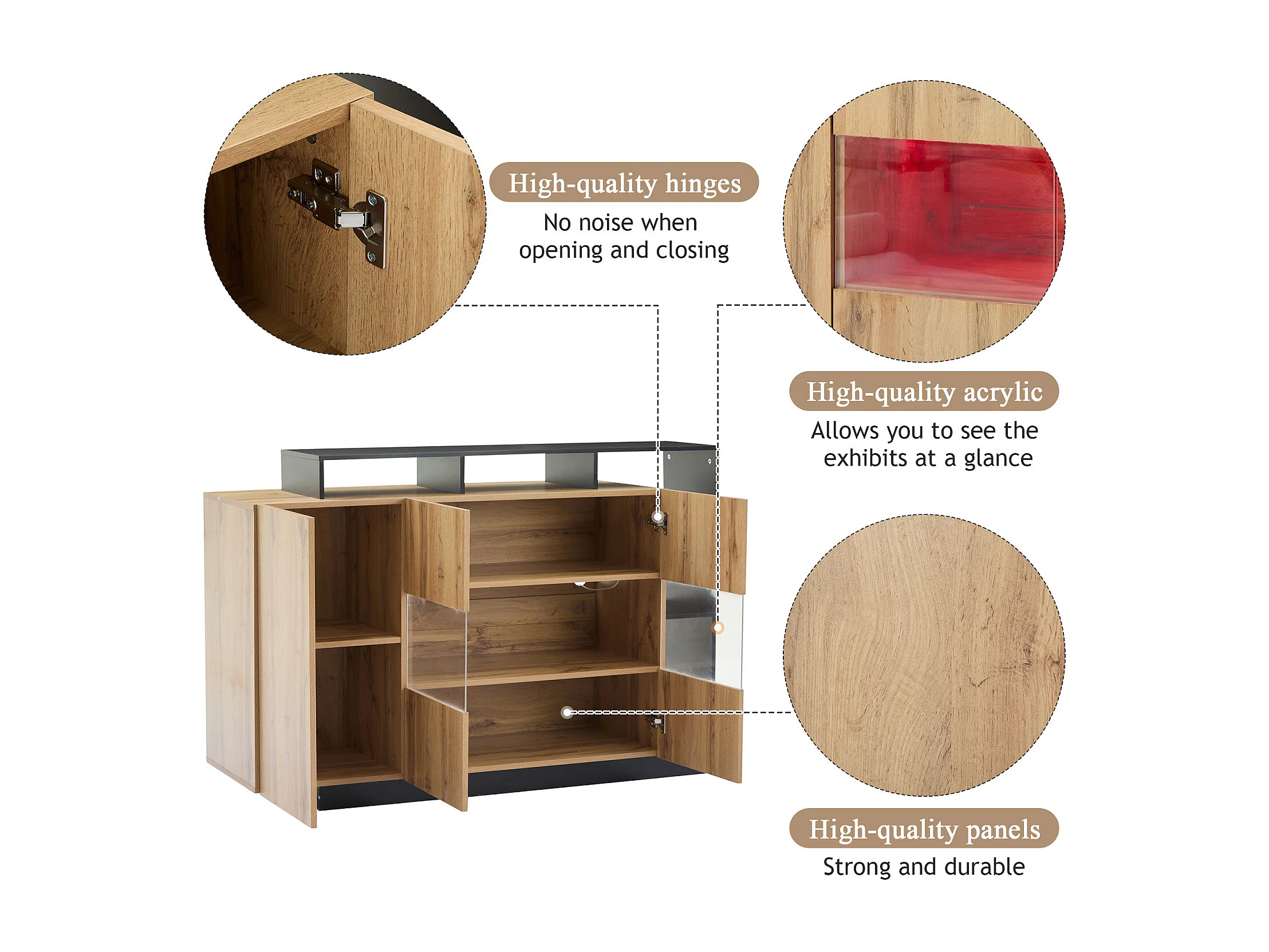 Aparador moderno de MDF color madera y vidrio, mueble de comedor para salón, con LED, 139 x 44 x 83 cm